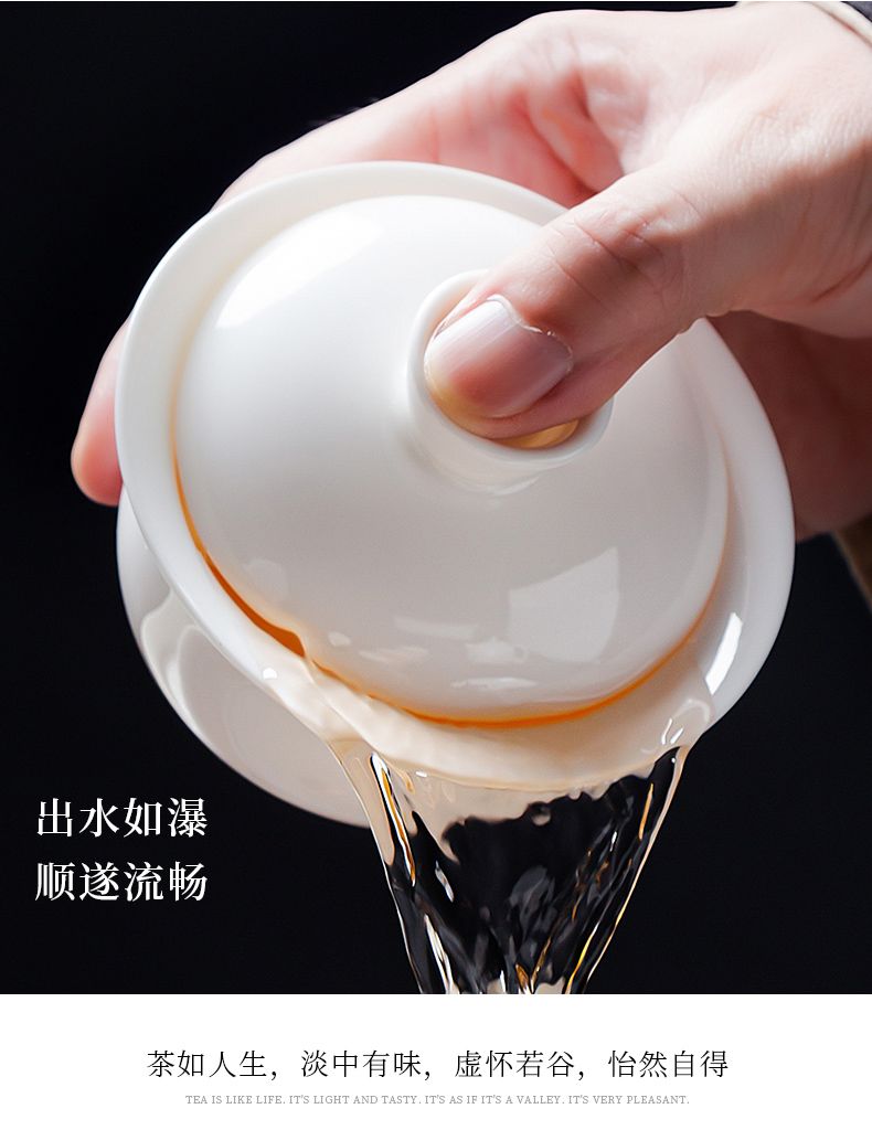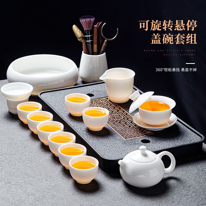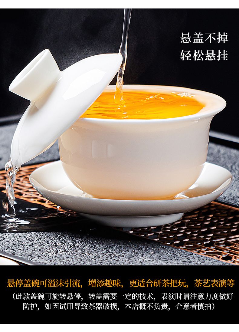 悬停盖碗茶具套装家用轻奢高档羊脂玉白瓷整套泡茶壶茶杯2024新款