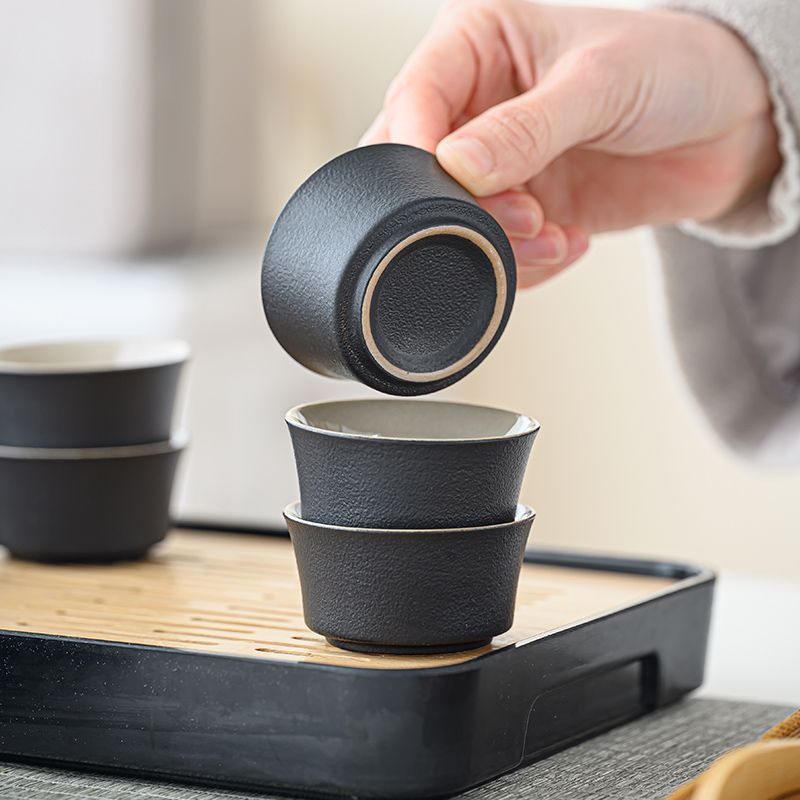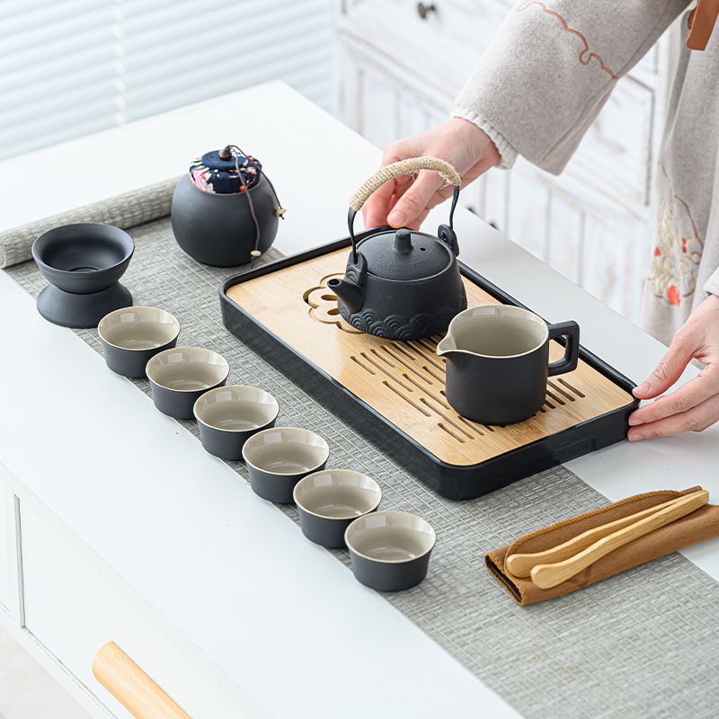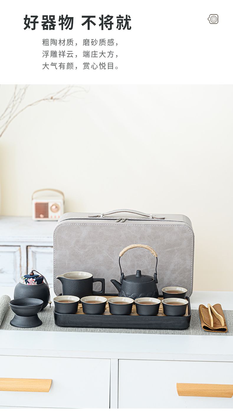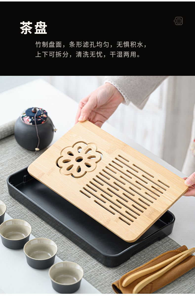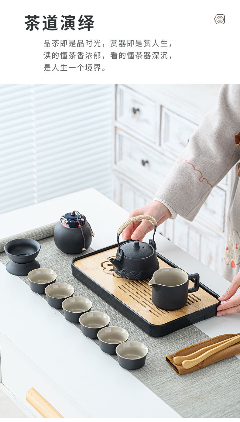 功夫黑陶茶具套装茶盘家用便携式茶壶陶瓷茶杯户外旅行泡茶送礼