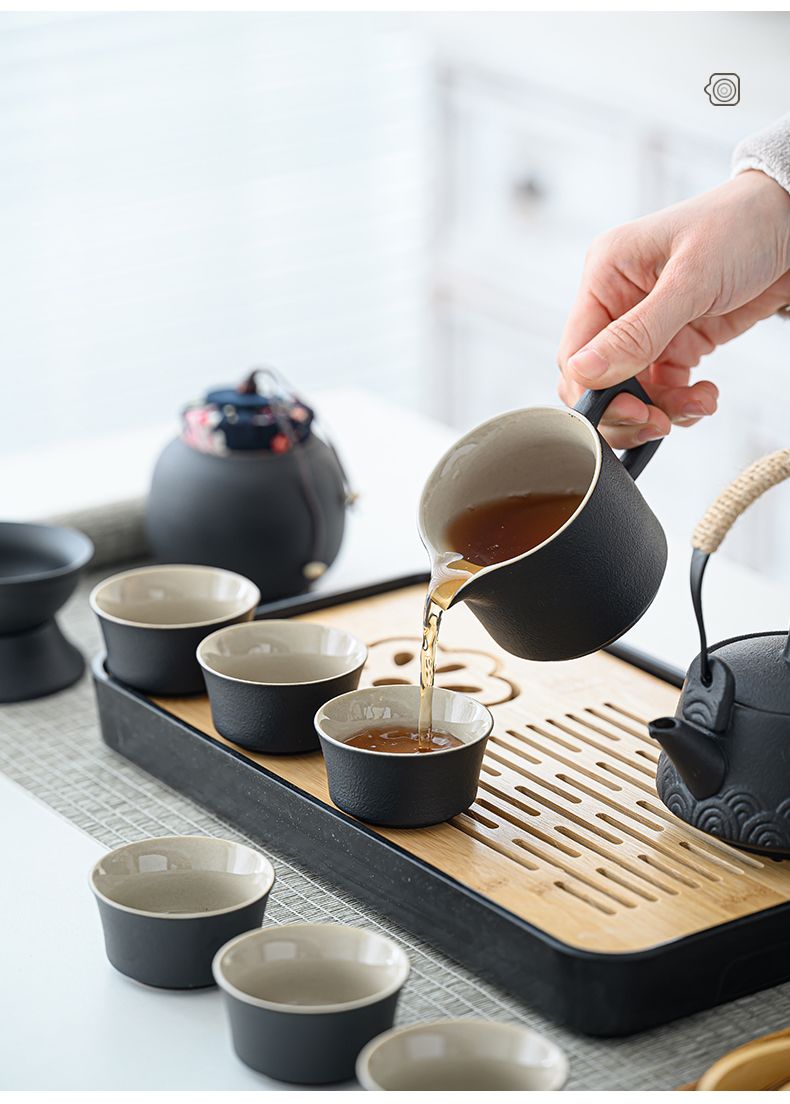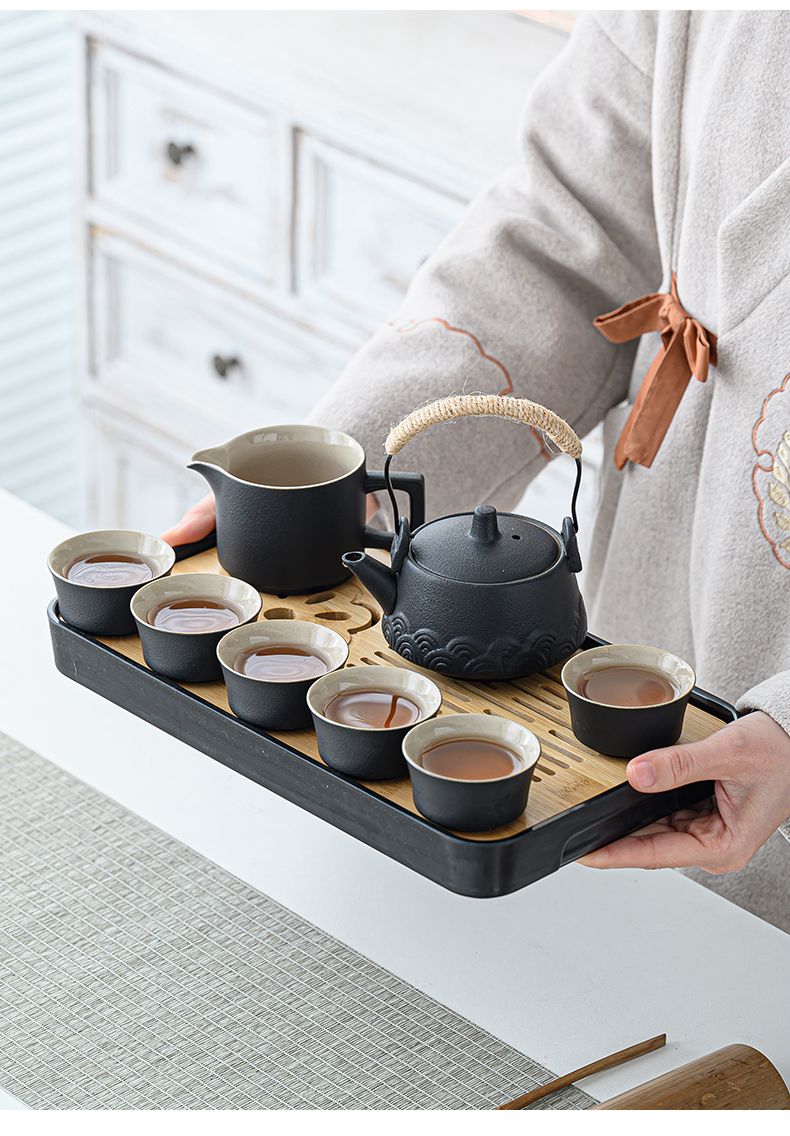 | black/texture loop-handled teapot +6 cups + fair mug + tea tray/no bag(黑色/纹路提梁壶+6杯+公杯+茶盘/无包) | USD $10.7 | 99999 piece available |