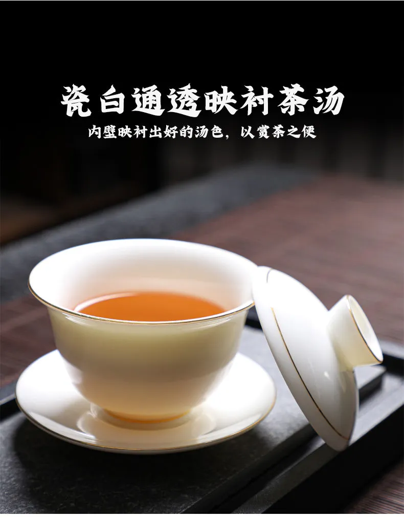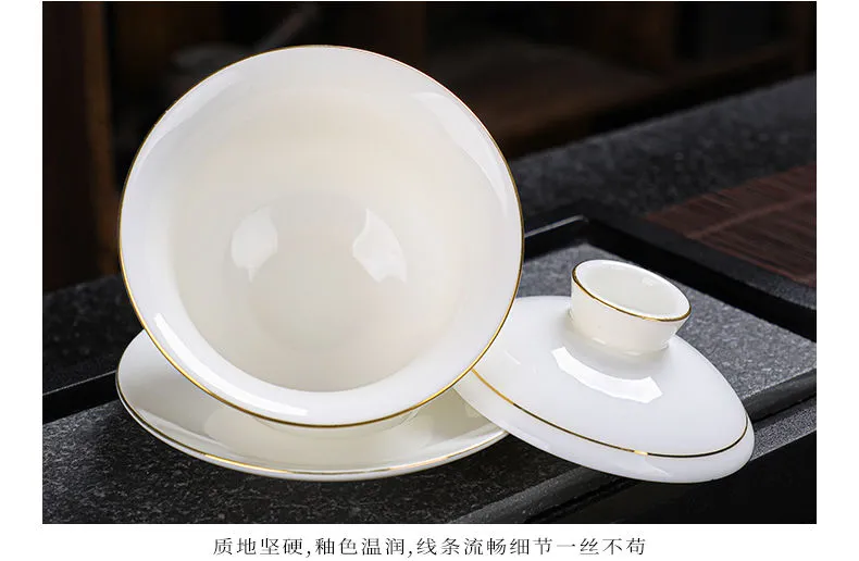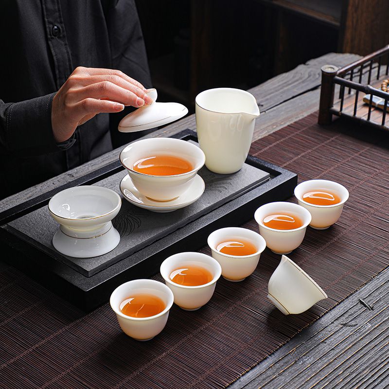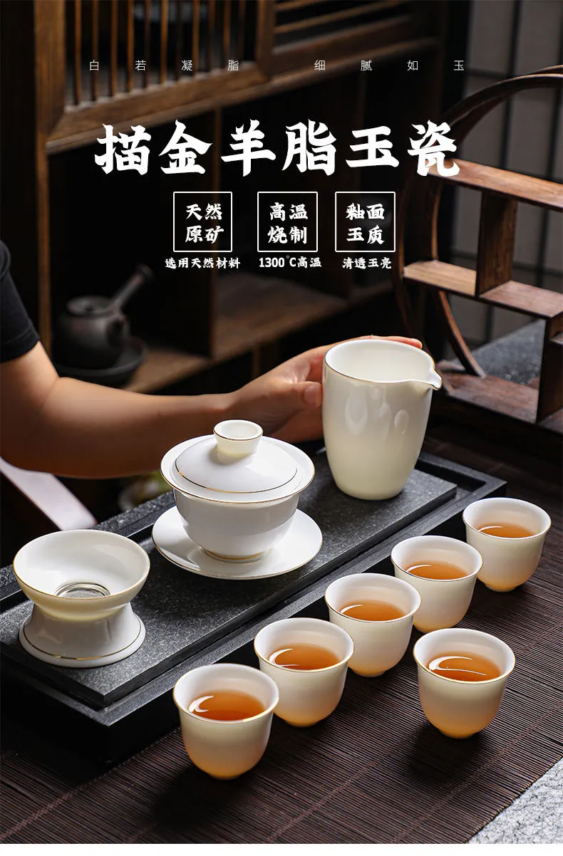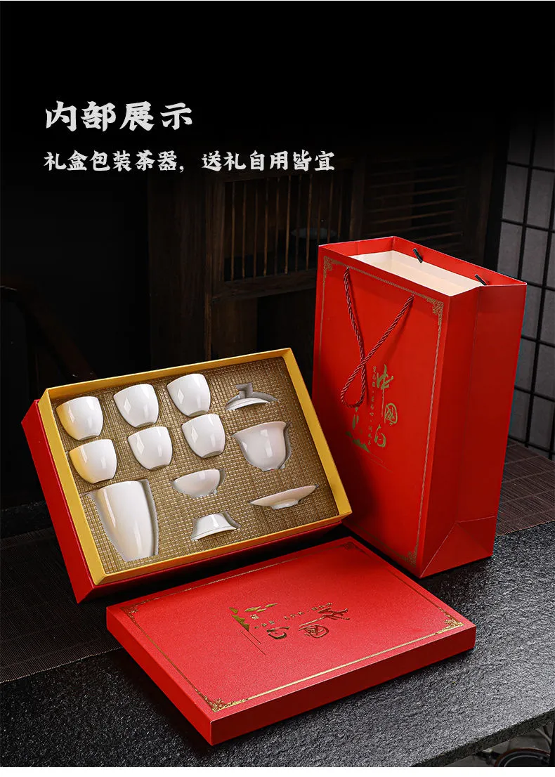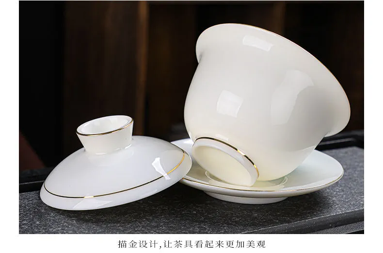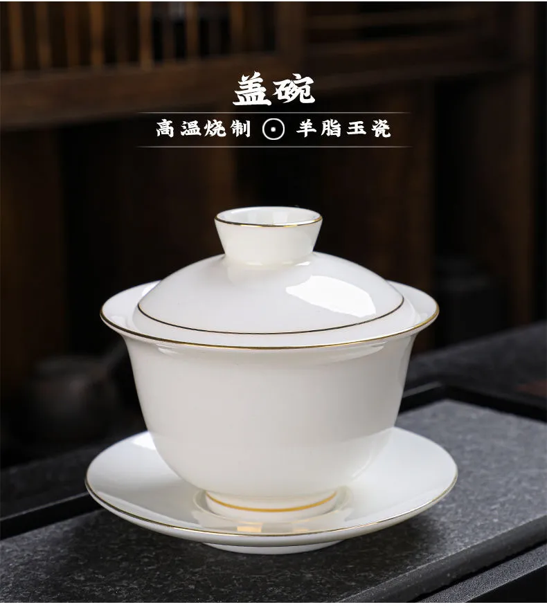 羊脂玉功夫茶具套装家用客厅全套泡茶办公室会客德化白瓷盖碗定制