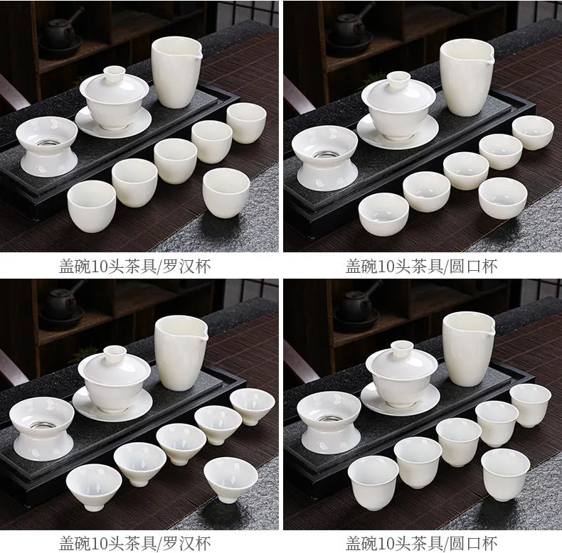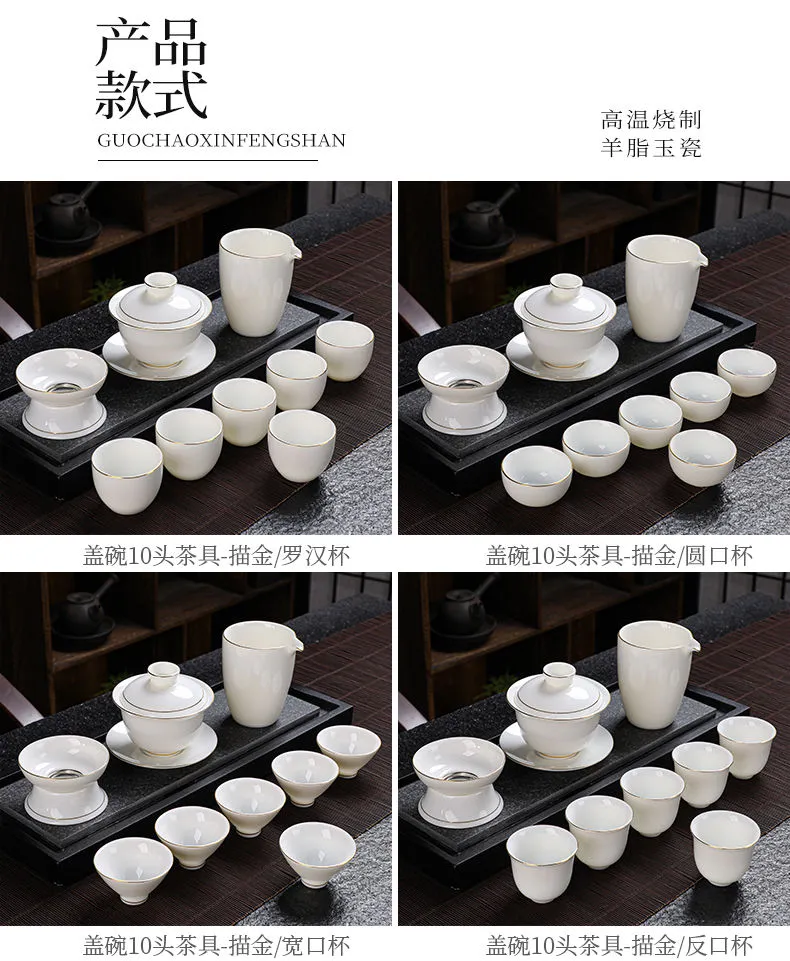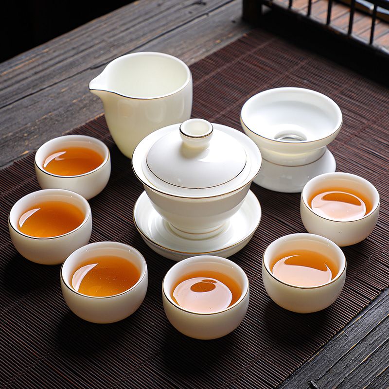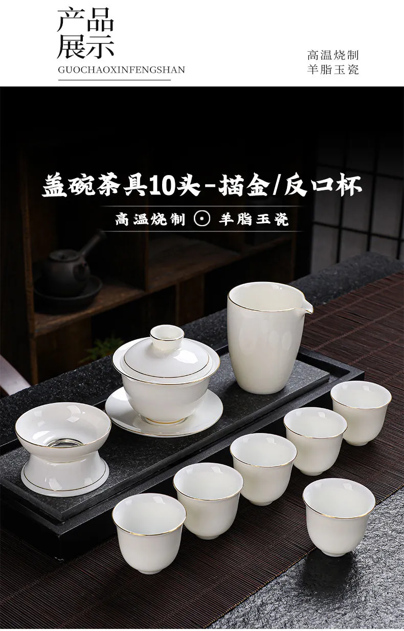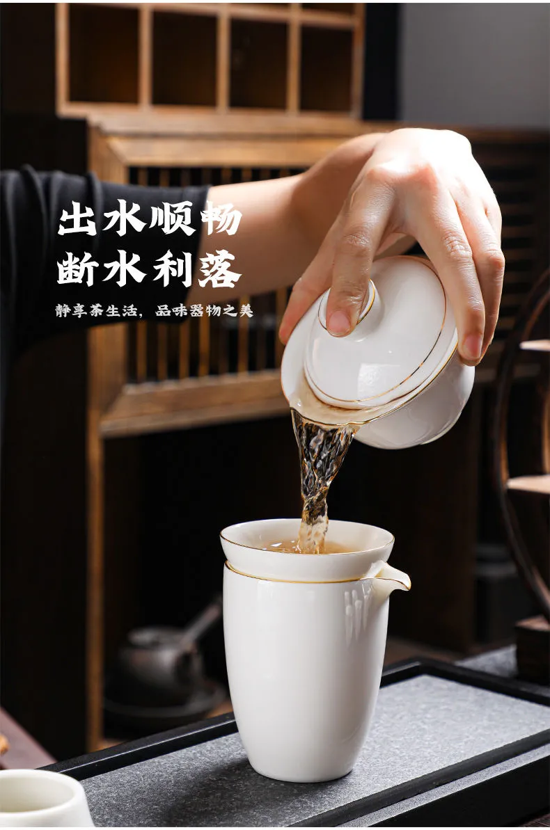 羊脂玉功夫茶具套装家用客厅全套泡茶办公室会客德化白瓷盖碗定制