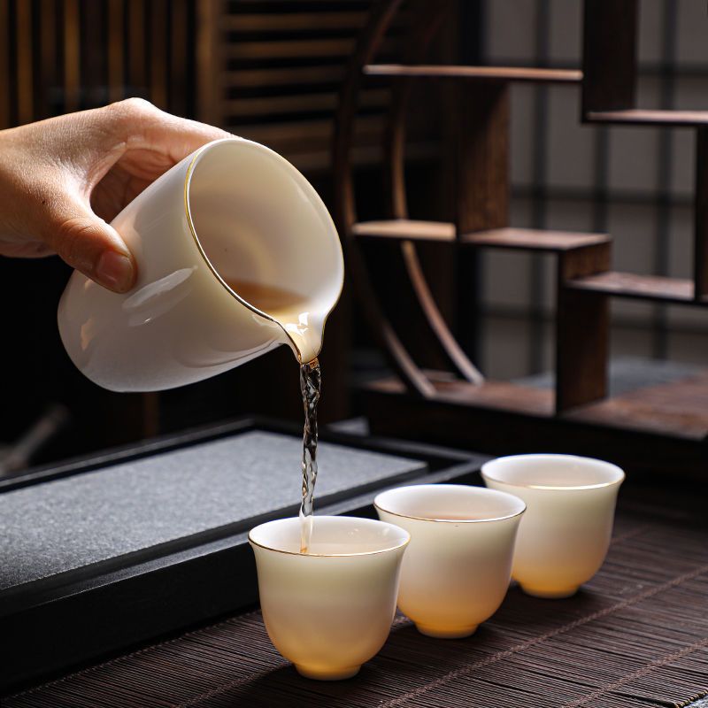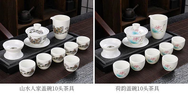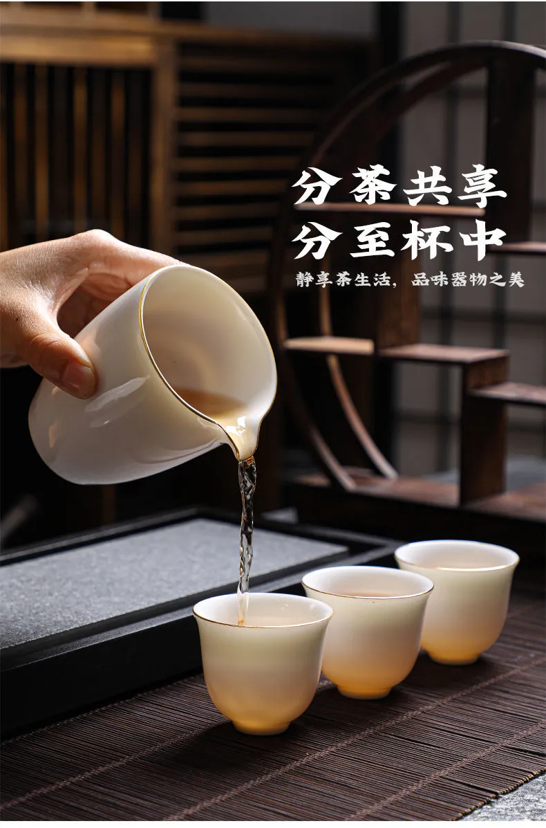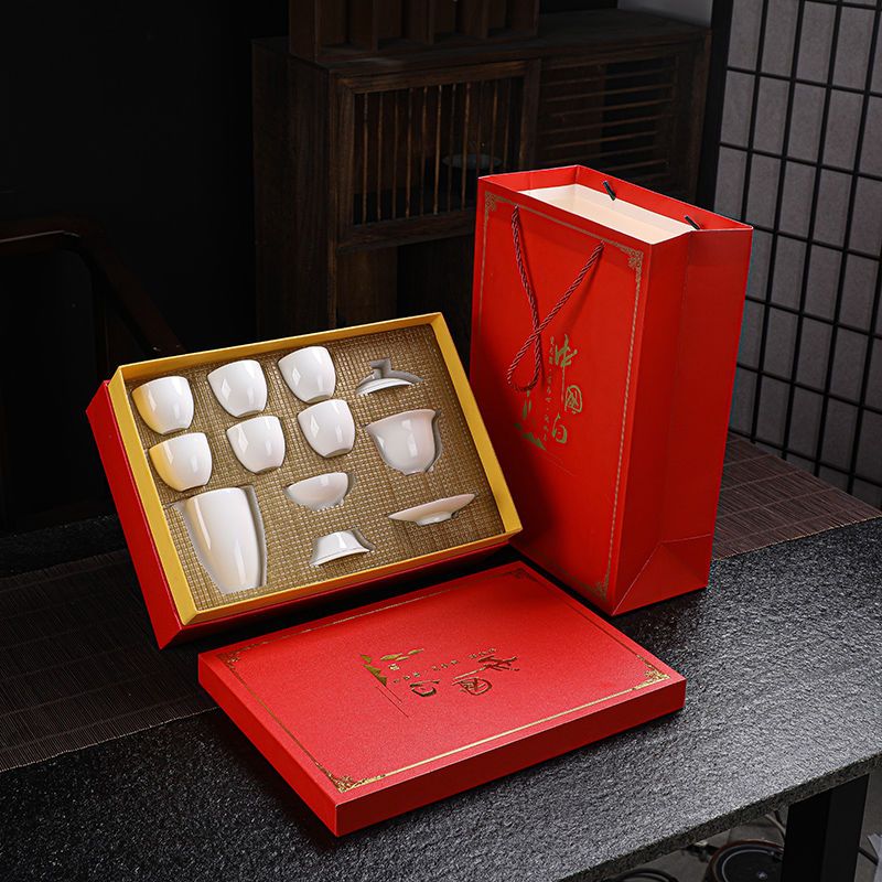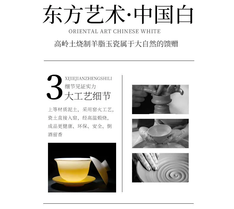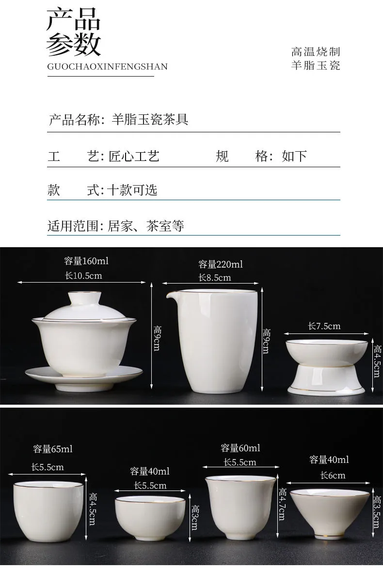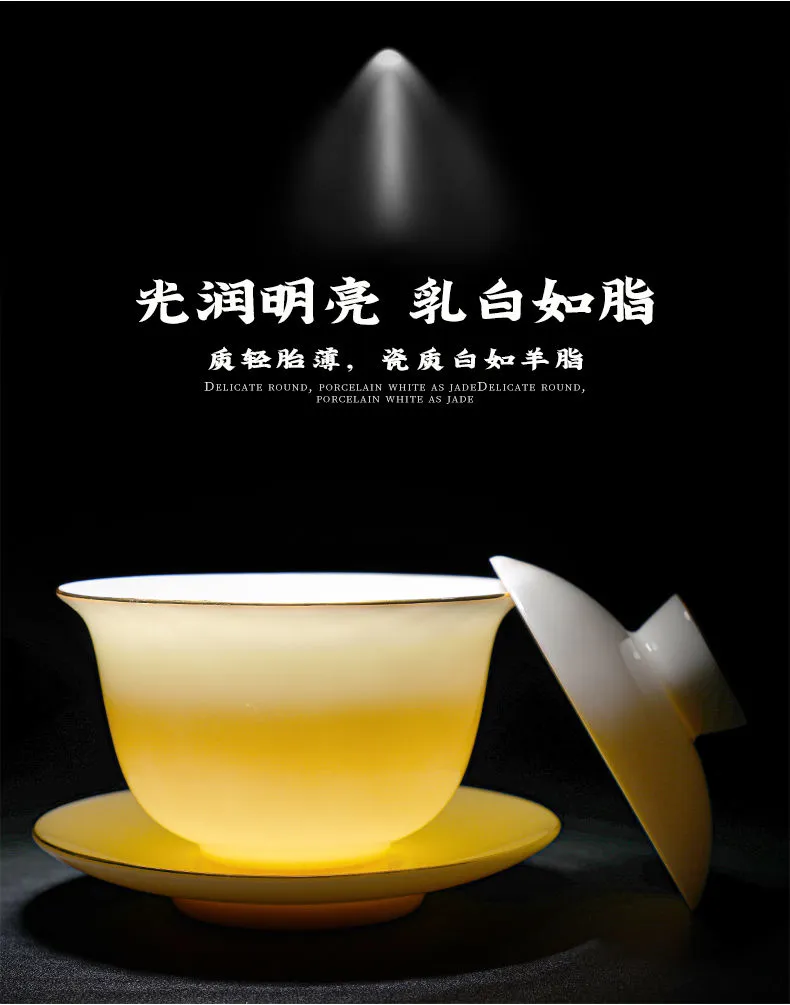 羊脂玉功夫茶具套装家用客厅全套泡茶办公室会客德化白瓷盖碗定制
