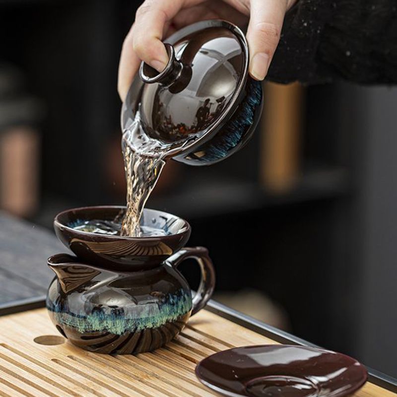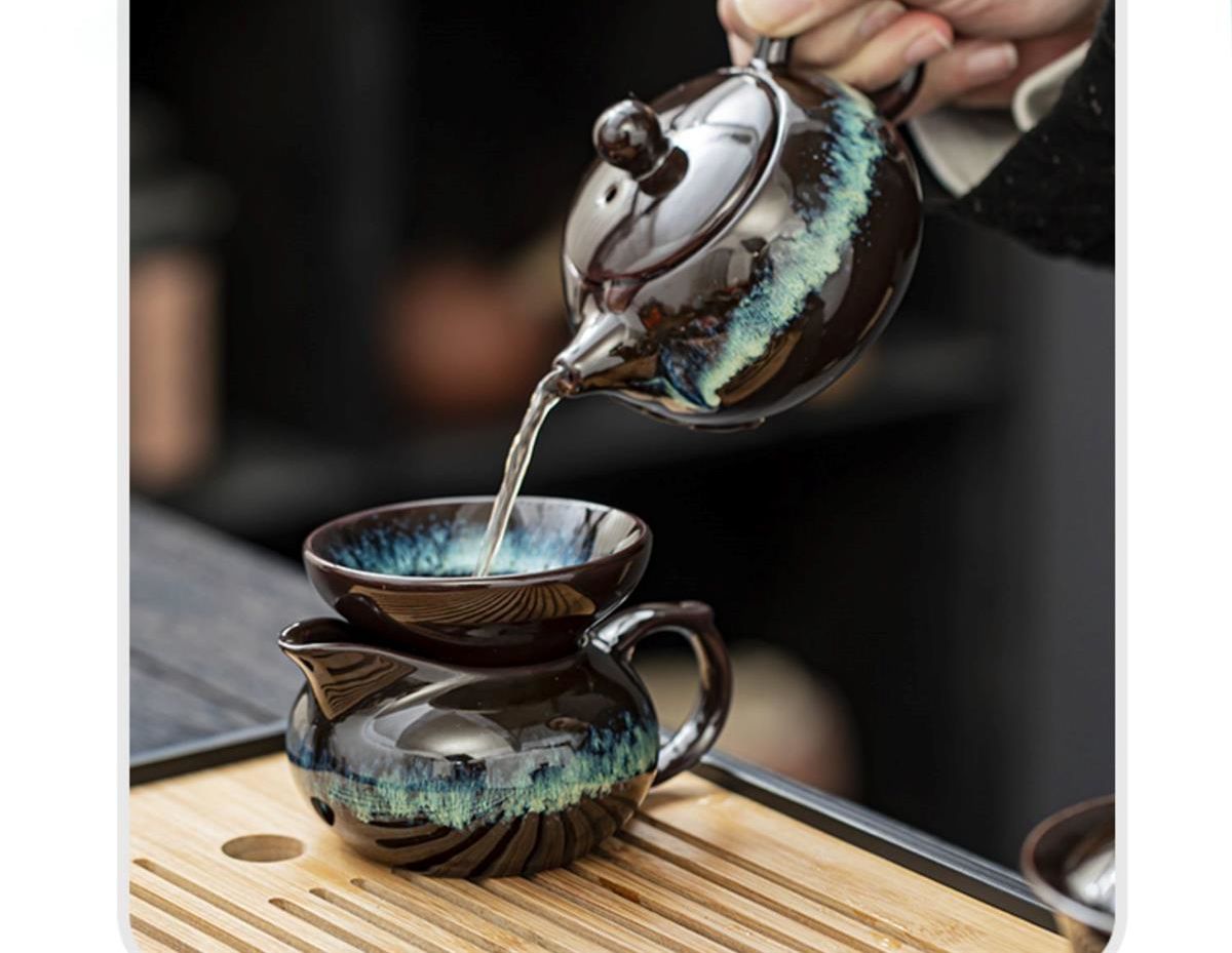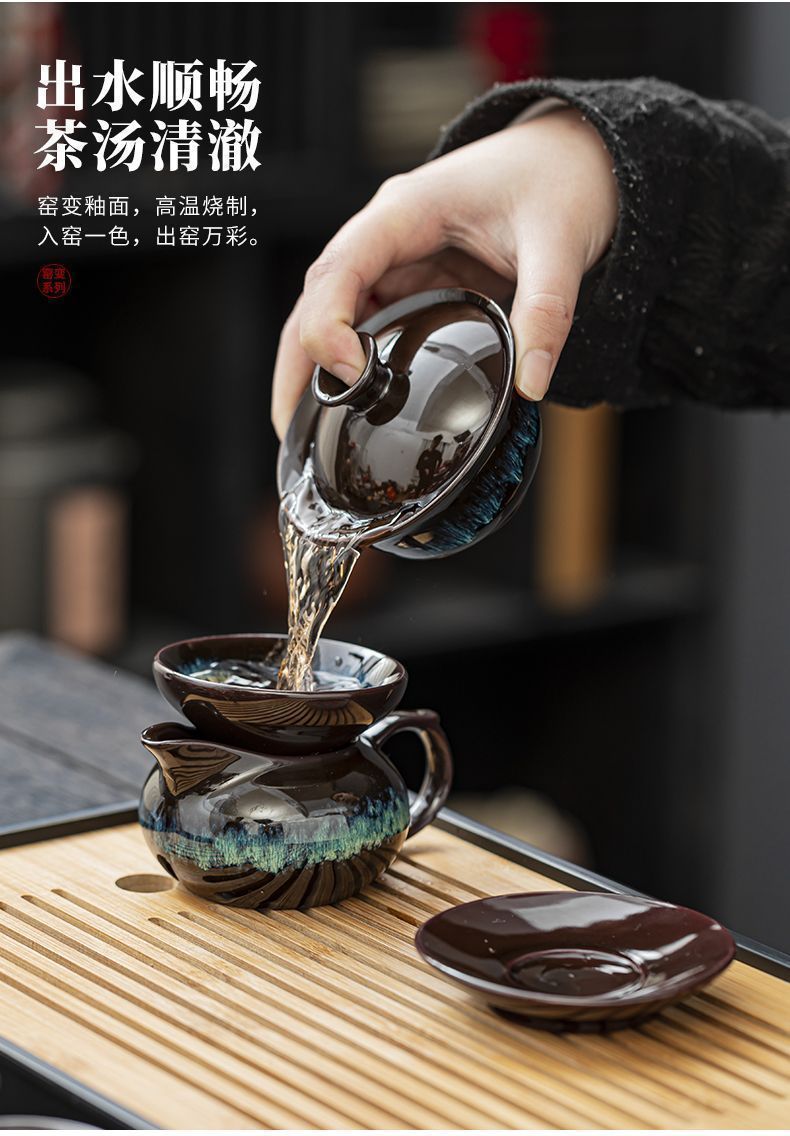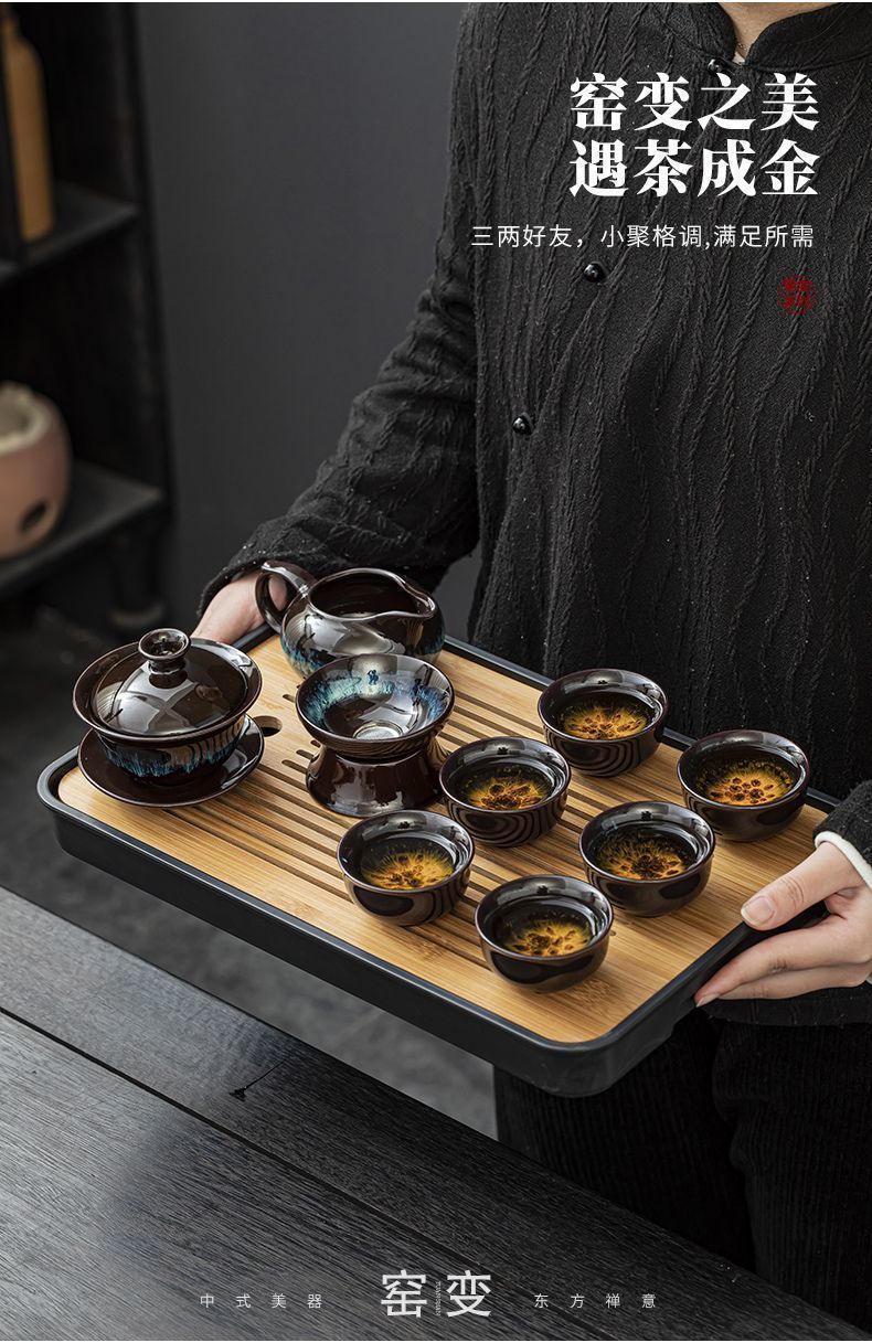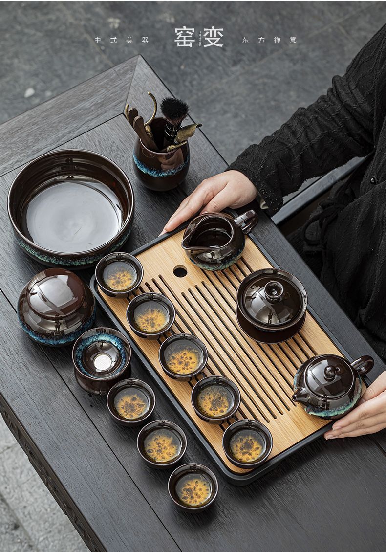 整套家用窑变自动功夫茶具套装带茶盘懒人石磨防烫泡茶神器茶道