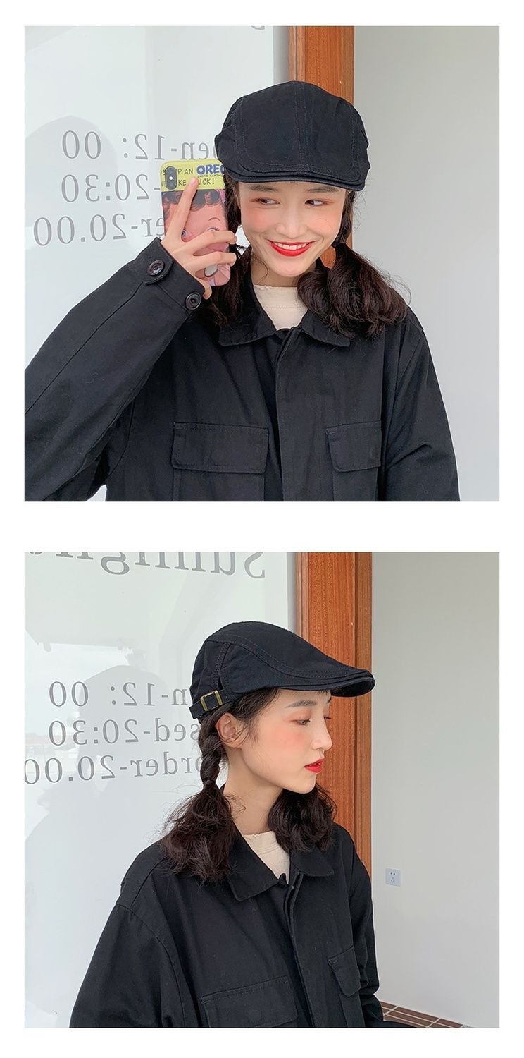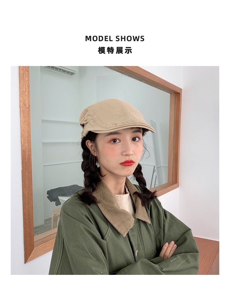 小众英伦复古显瘦前进帽加宽加深帽檐贝雷帽艺鸭舌帽女画家帽港风