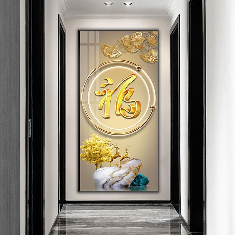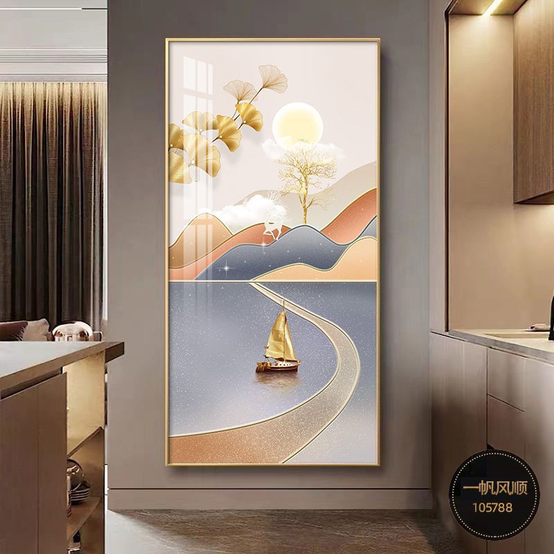 入户玄关装饰画现代简约轻奢客厅走廊贴画过道壁画挂画竖版墙壁