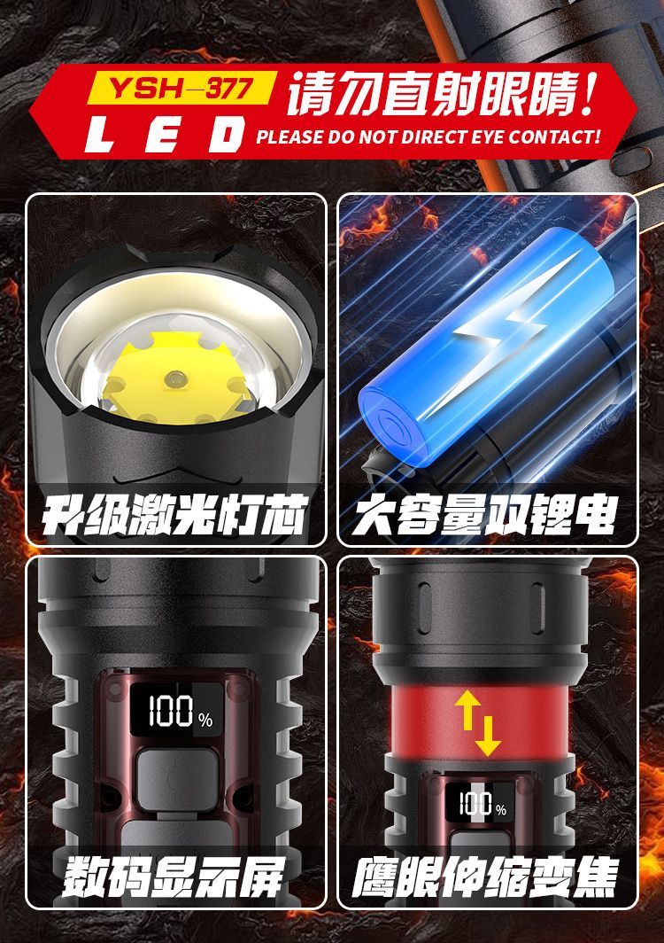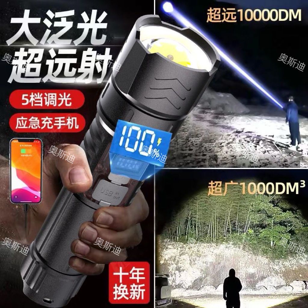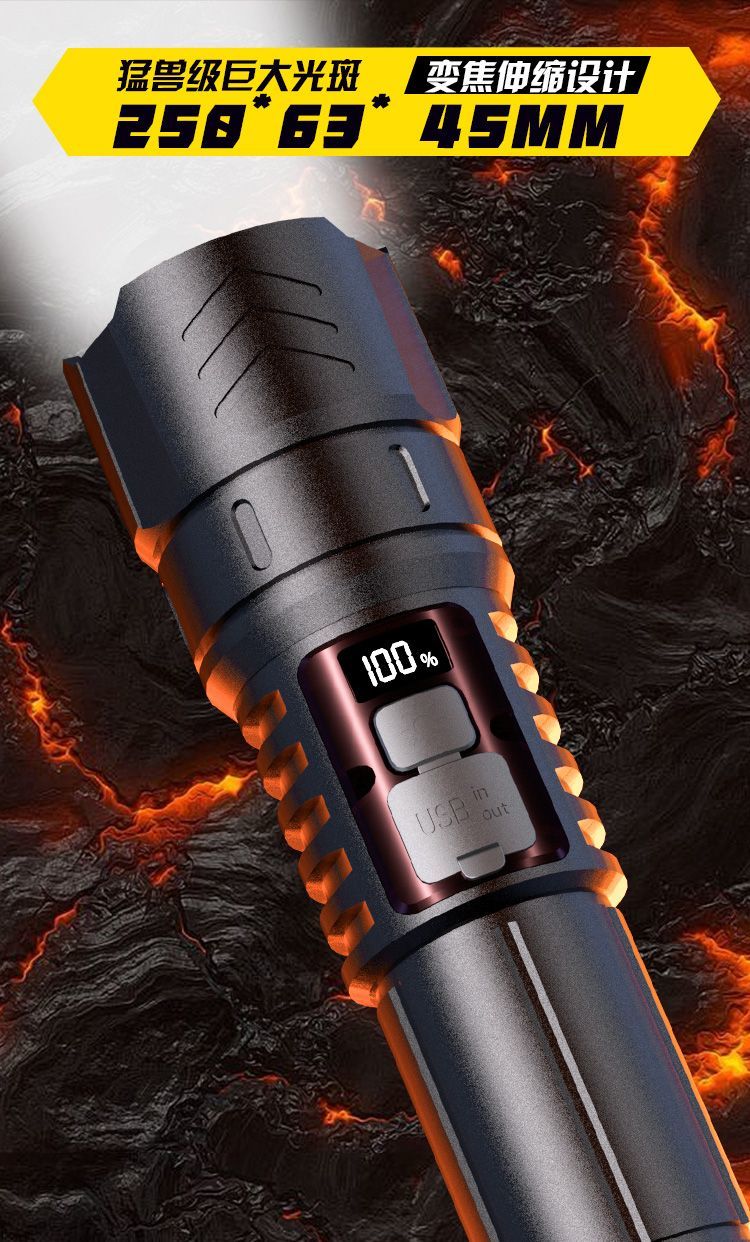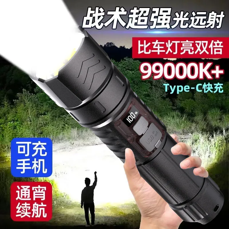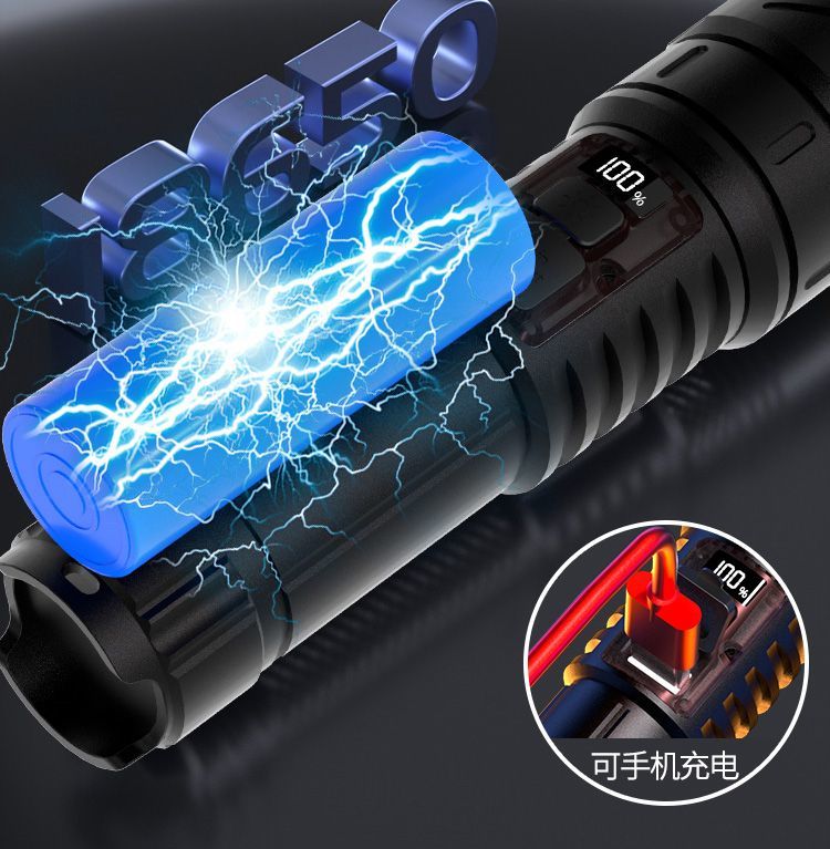 强光手电筒超长待机可充手机电耐用便携大功率变焦远射聚光led