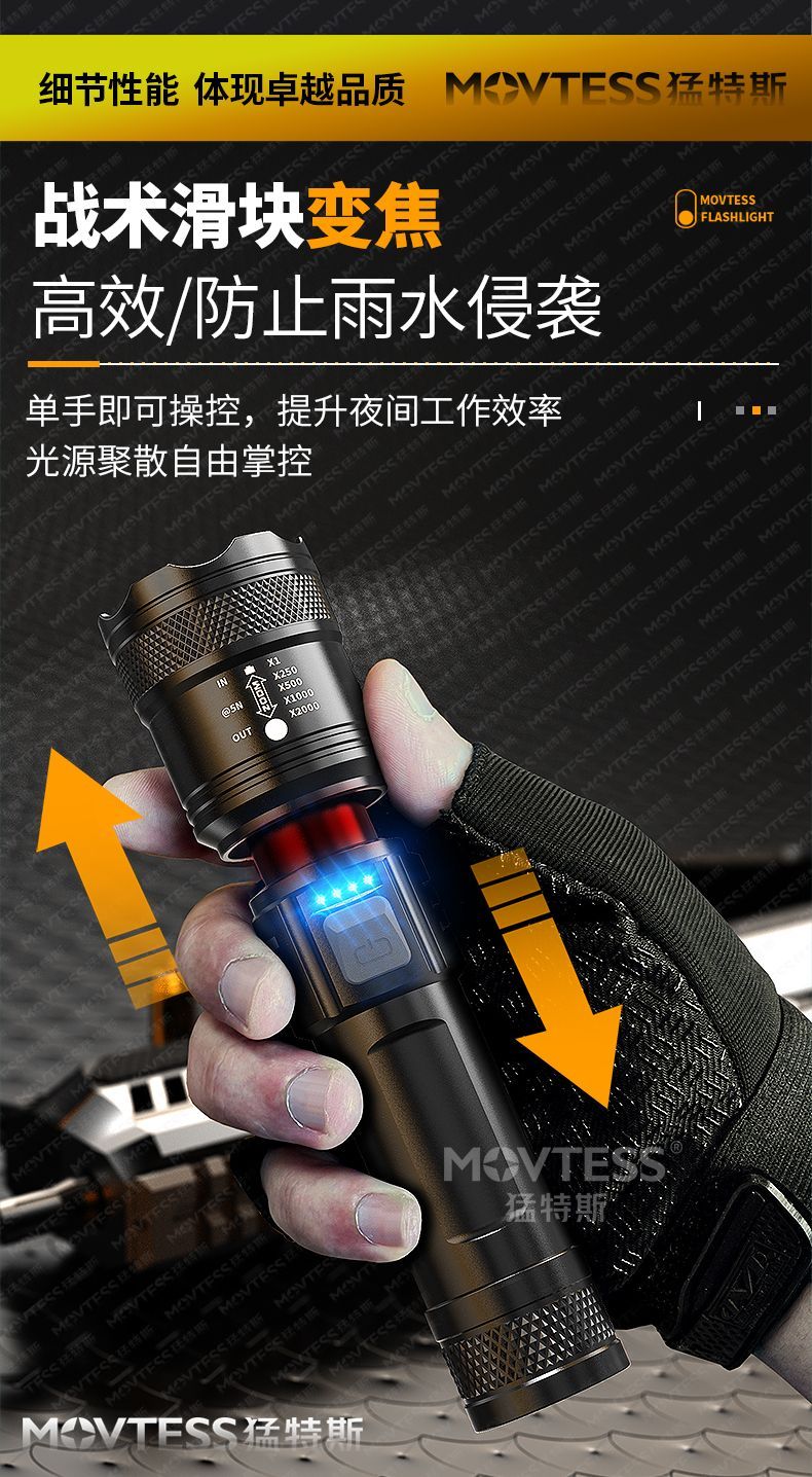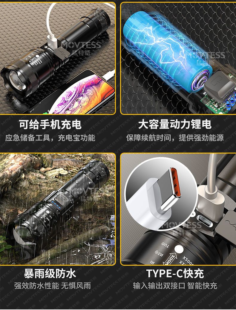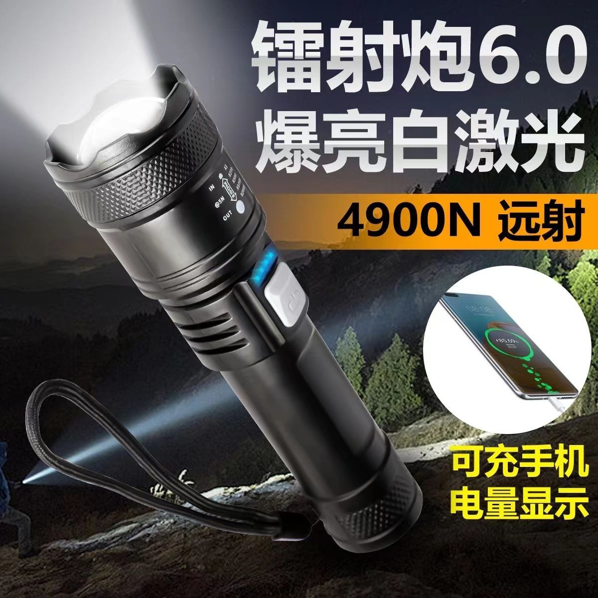特种兵LED强光手电筒可充电超亮远射激光炮巡逻宿舍户外高级照明