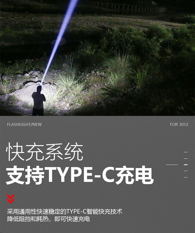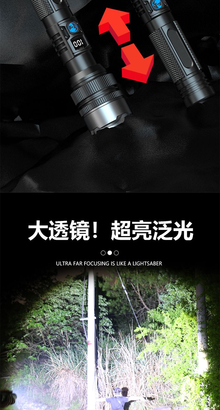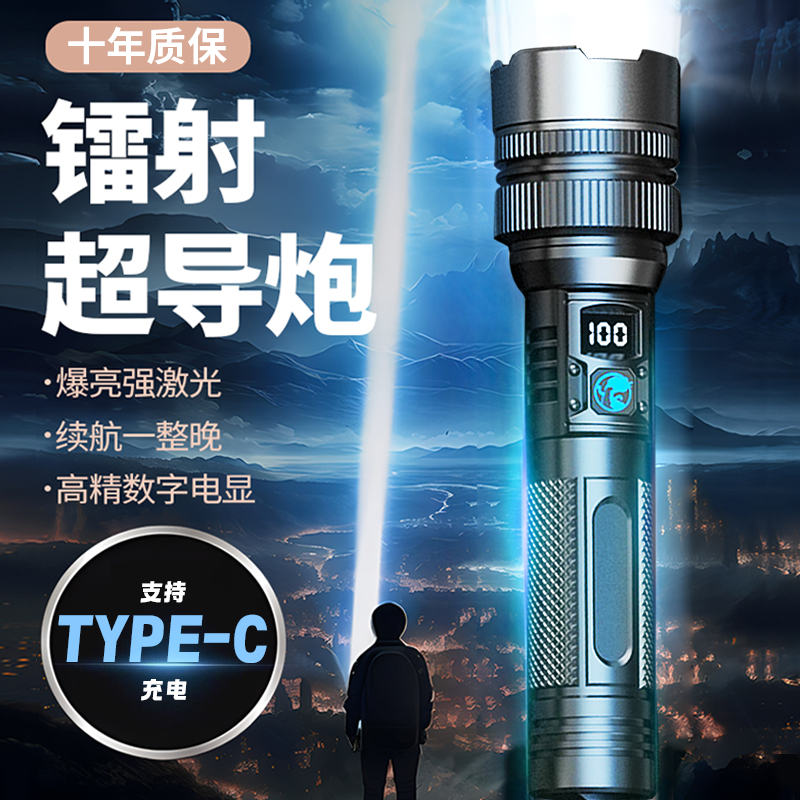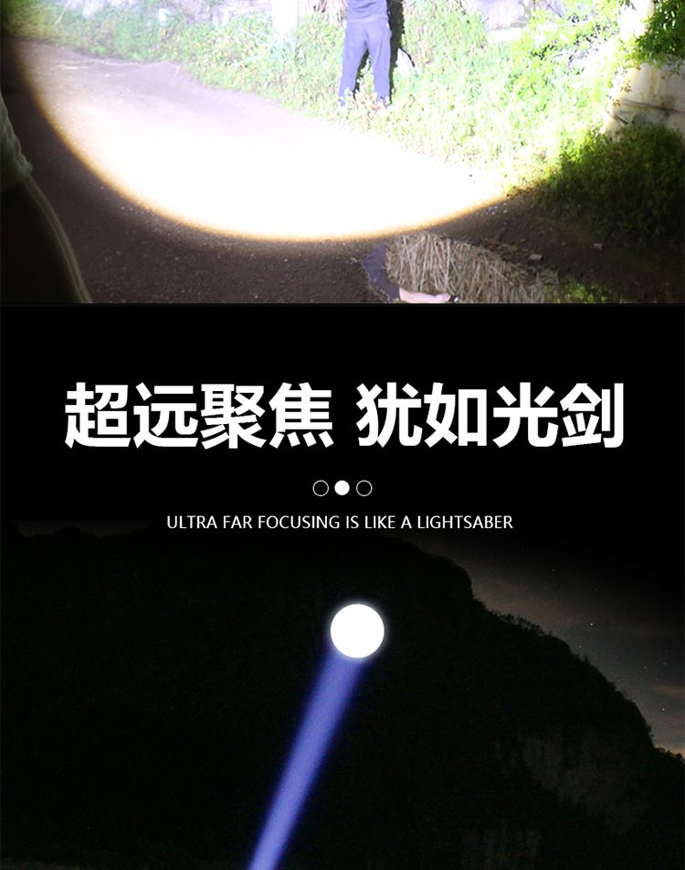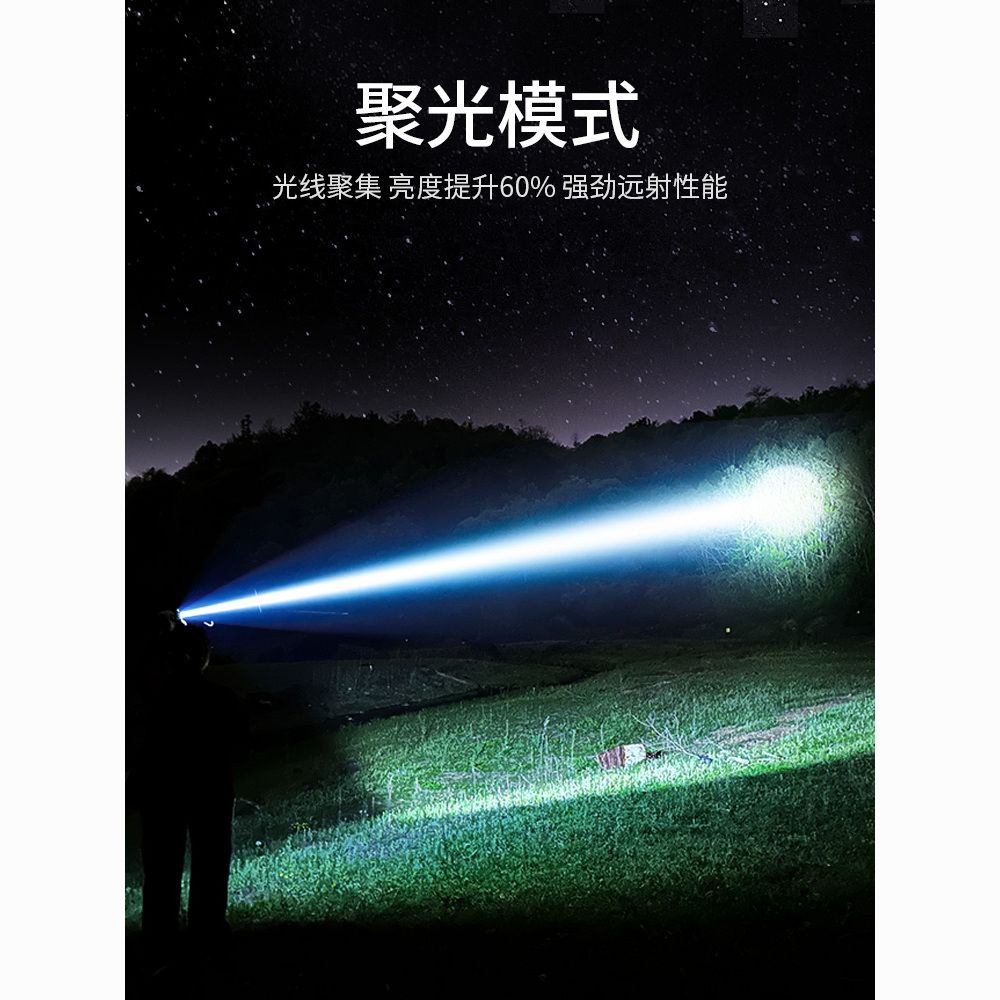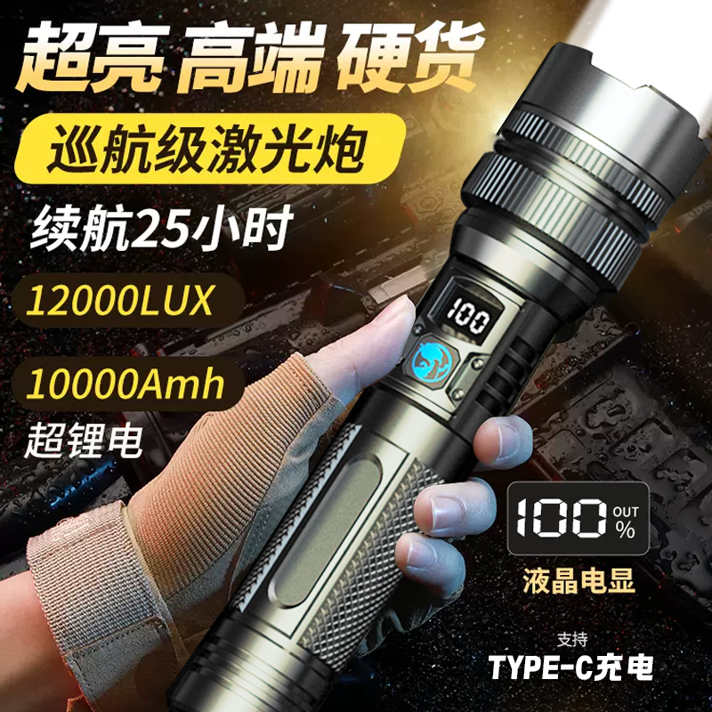 手电筒强光可充电超亮巡夜登山超长续航大功率超亮黑科技远射战神