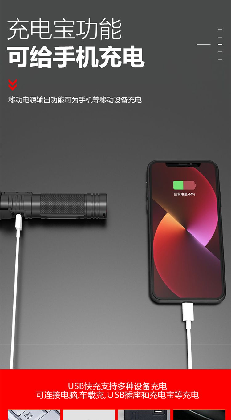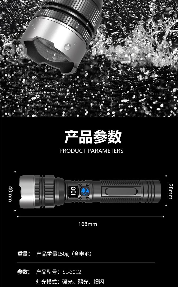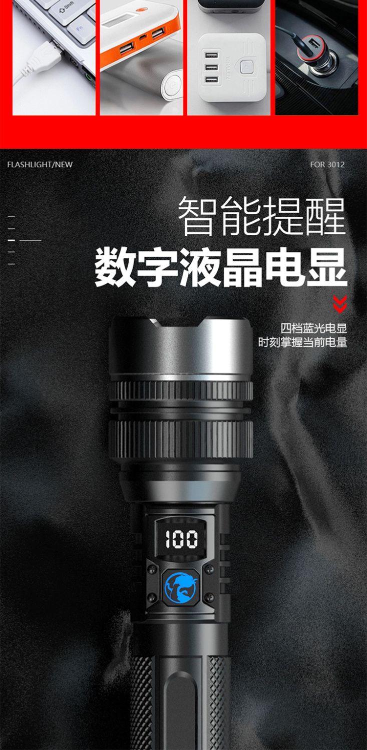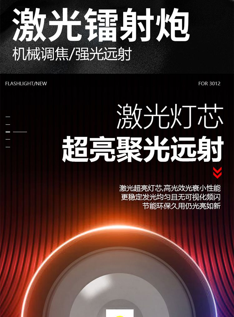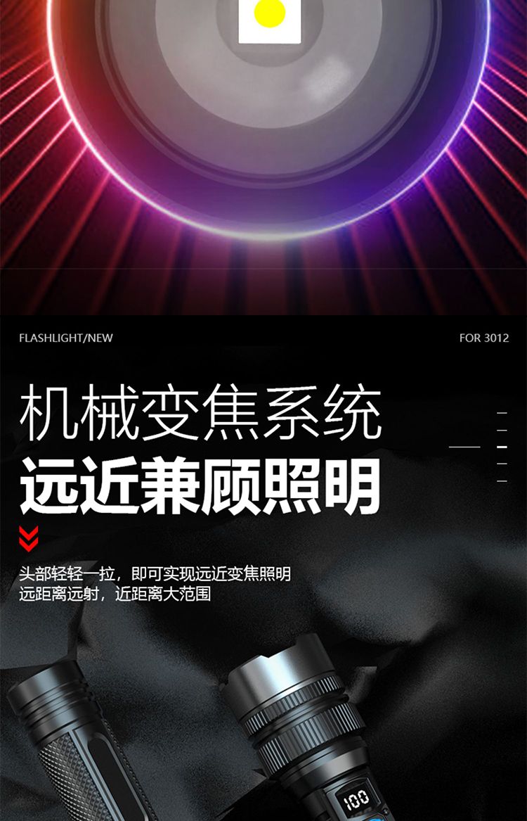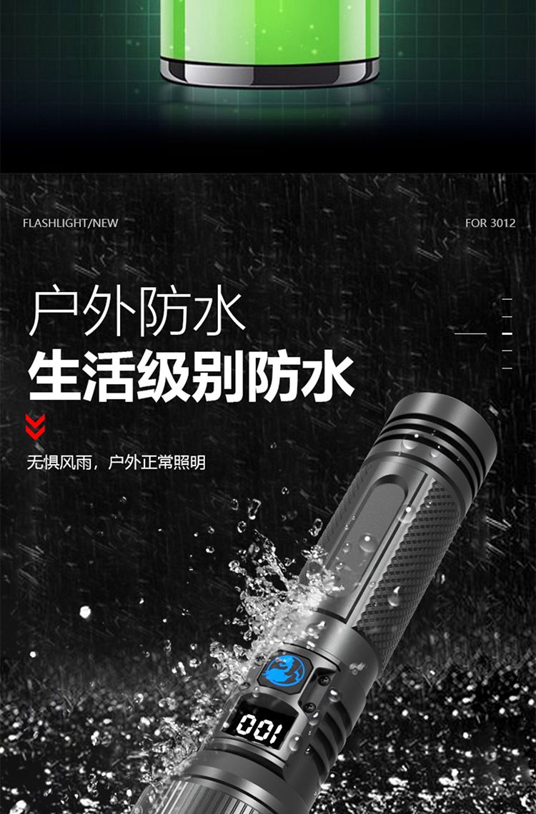 手电筒强光可充电超亮巡夜登山超长续航大功率超亮黑科技远射战神