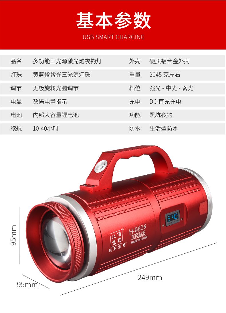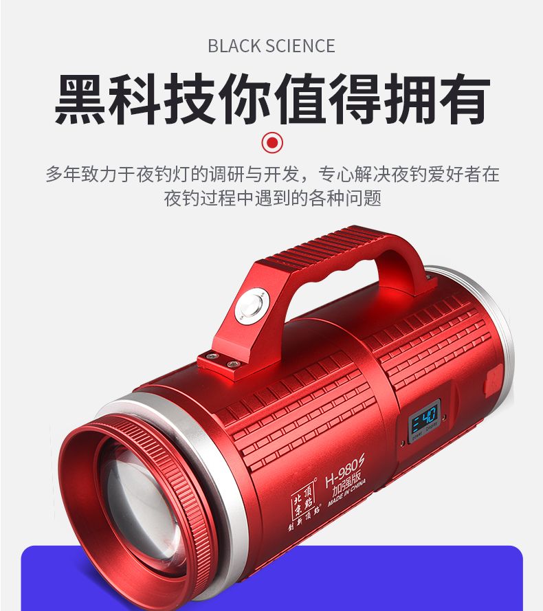 北京顶点H980S钓鱼灯夜钓灯激光炮超亮疝气灯强光大功率野钓黑坑