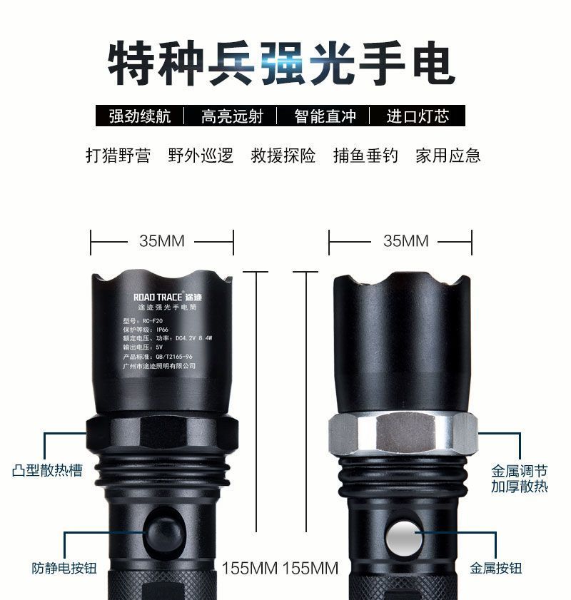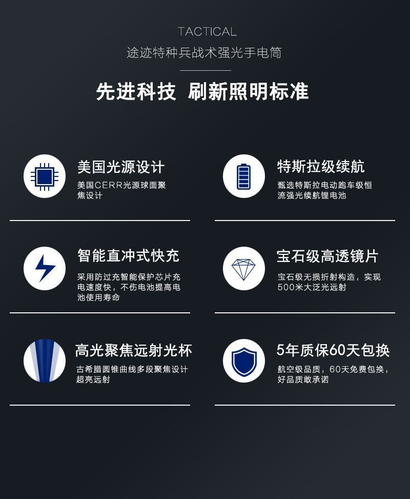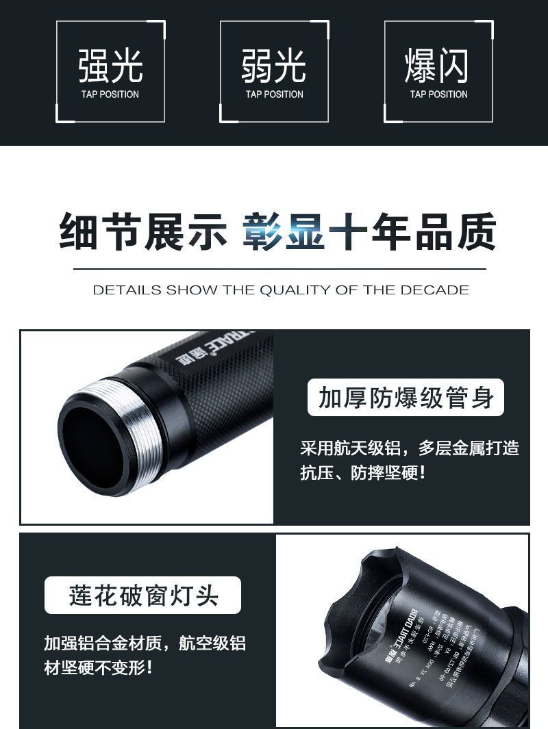 特种兵手电筒强光可充电远射5000超亮防水户外家用防身氙气LED灯