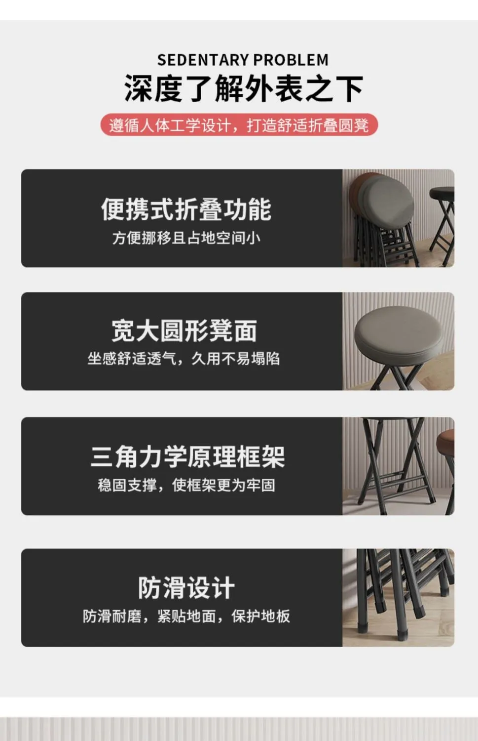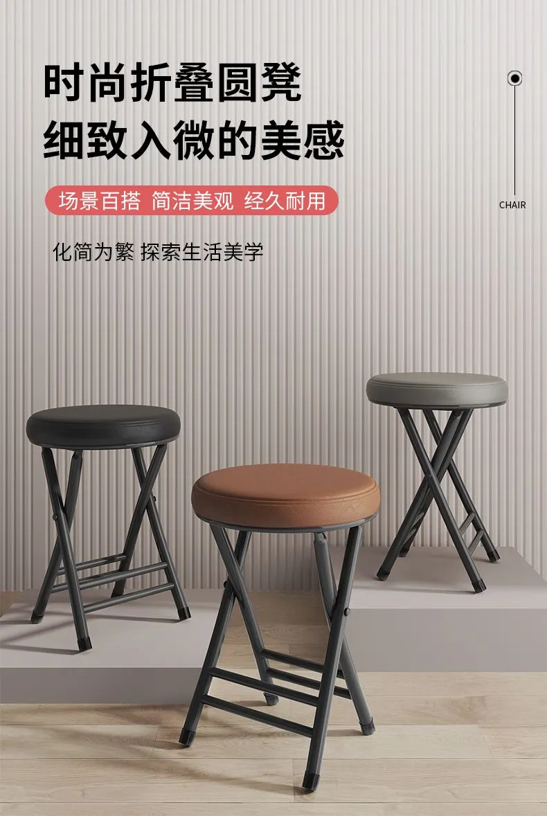折叠凳子家用圆凳时尚加厚北欧客厅圆形大人夜市摆摊便携式小椅子
