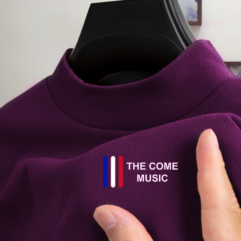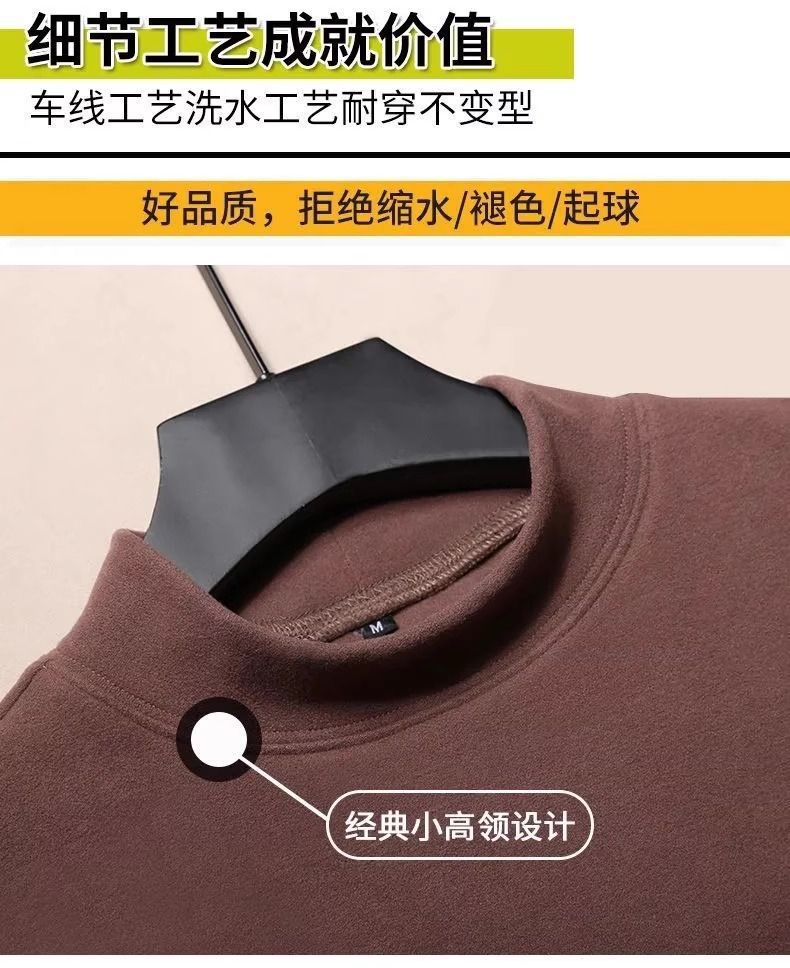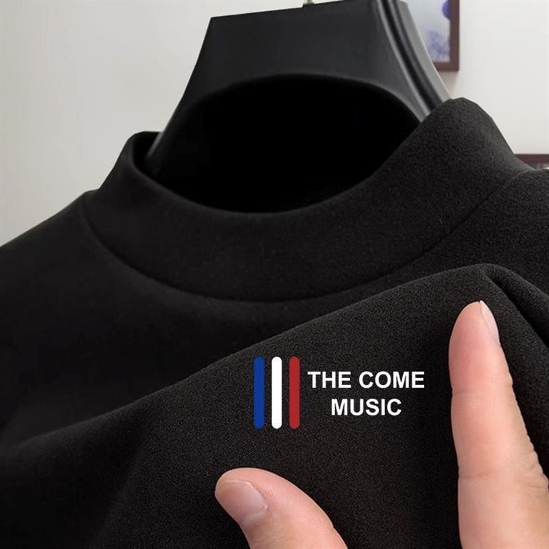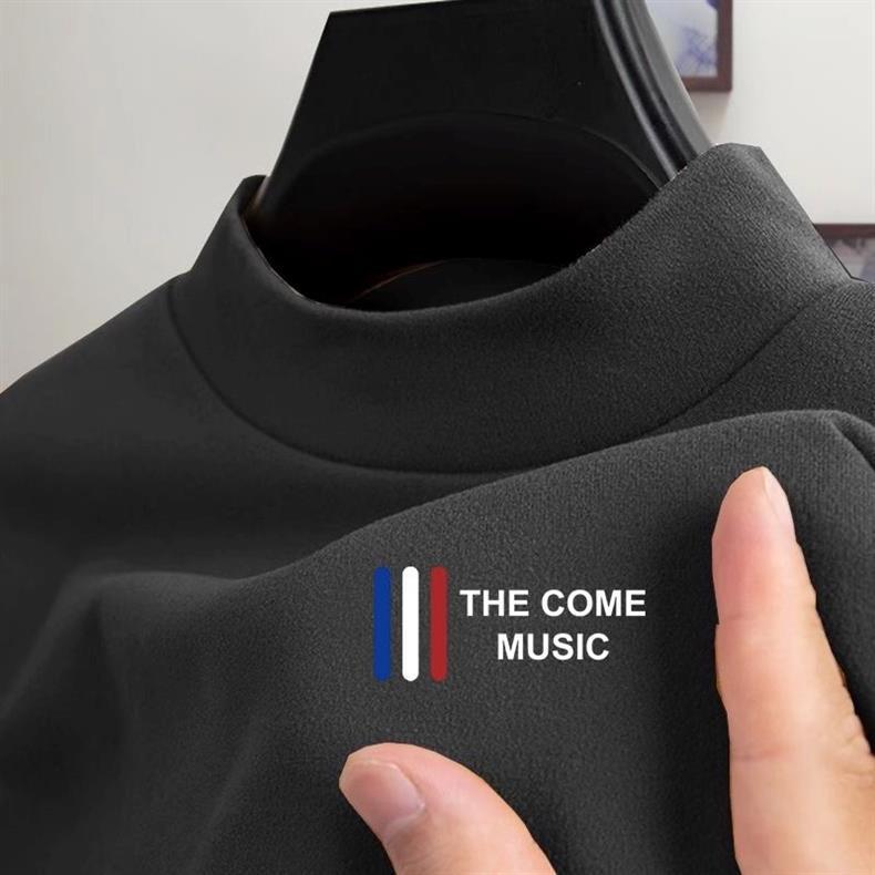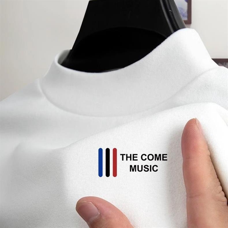 秋冬德绒长袖T恤高街保暖舒适内搭衣服男士防寒半高领印花打底衫