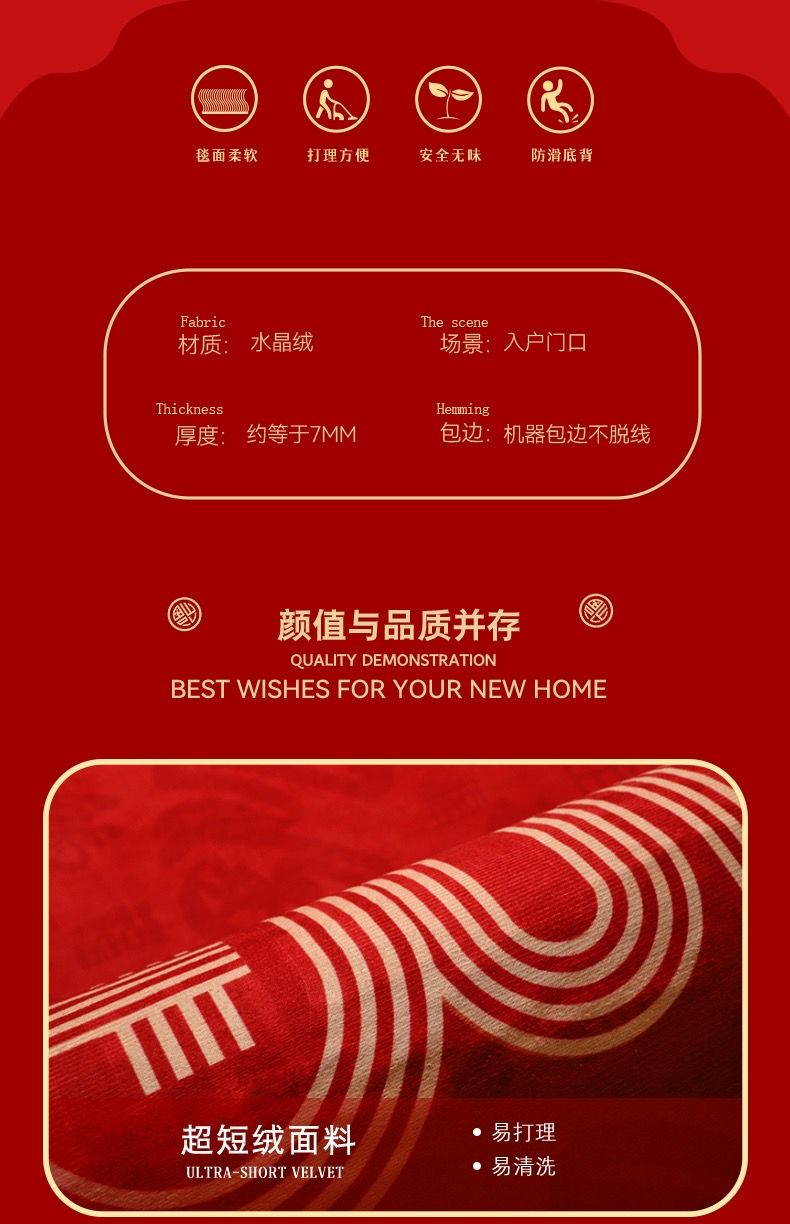 入户地垫红色喜庆门口进门玄关脚垫结婚乔迁地垫新年门垫防滑耐磨