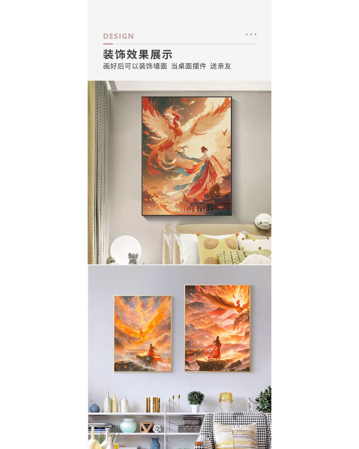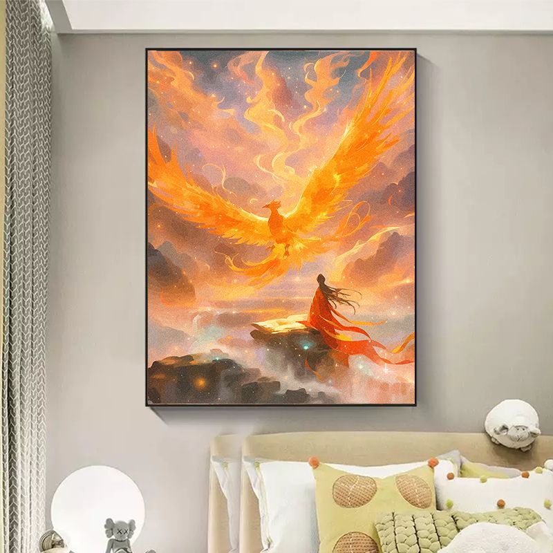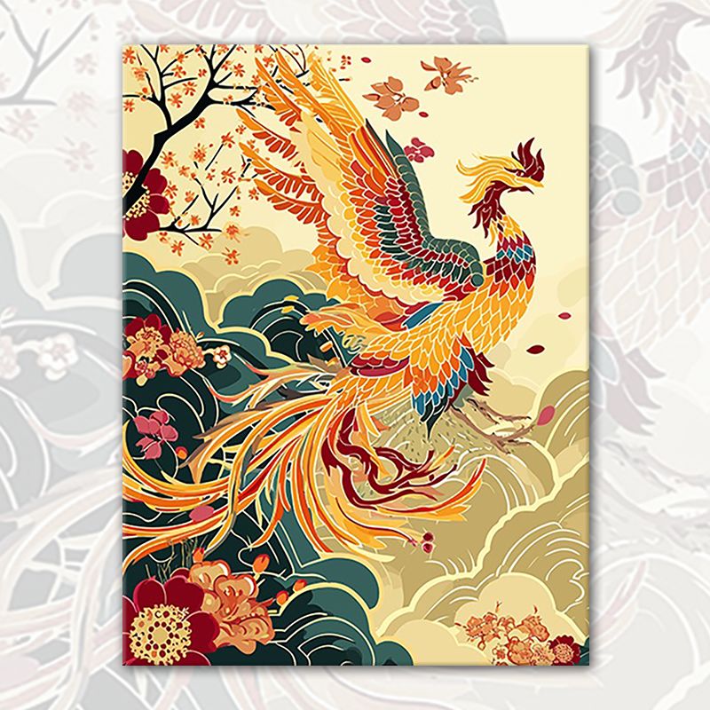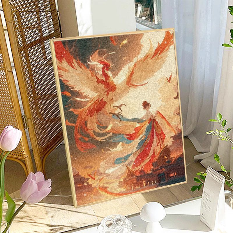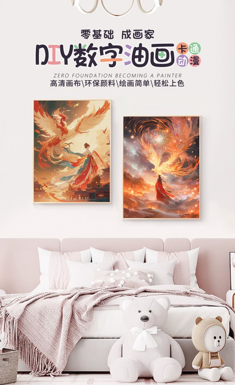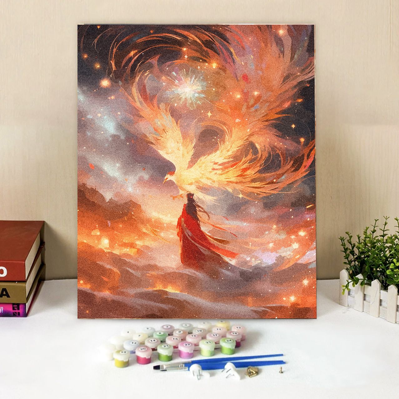 凤凰于飞数字油画diy填色画画解压手工填充油彩丙烯手绘2024新款