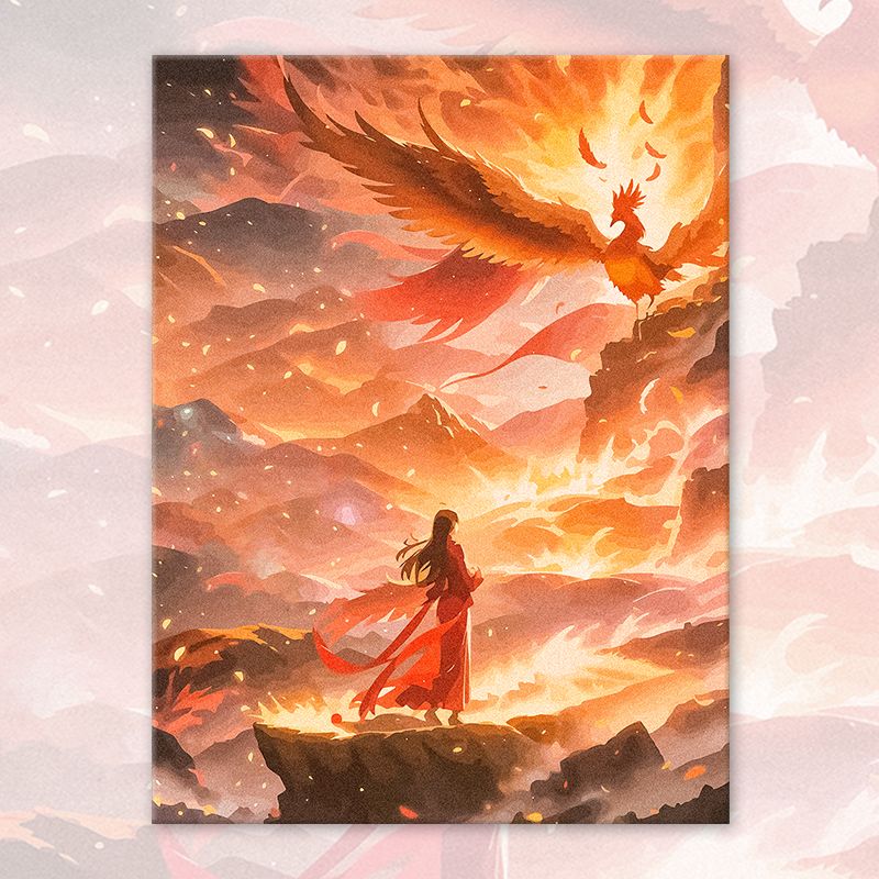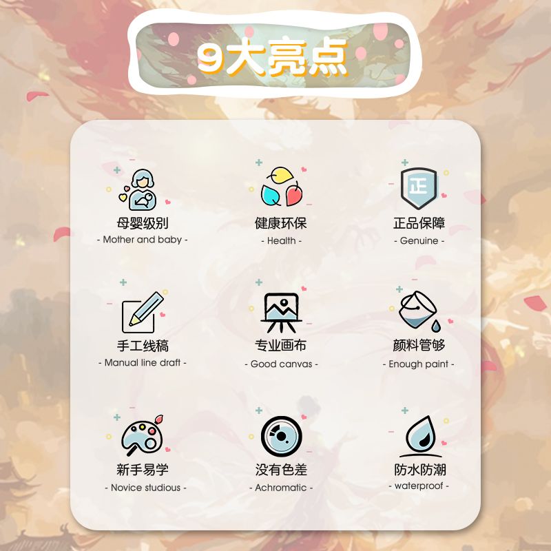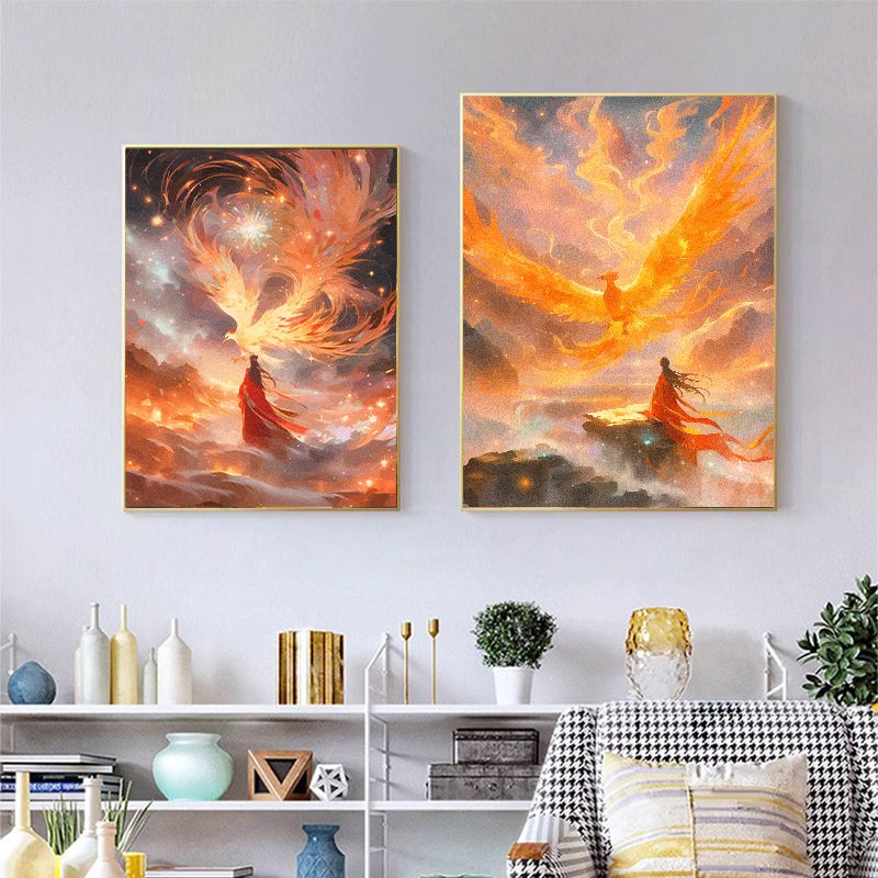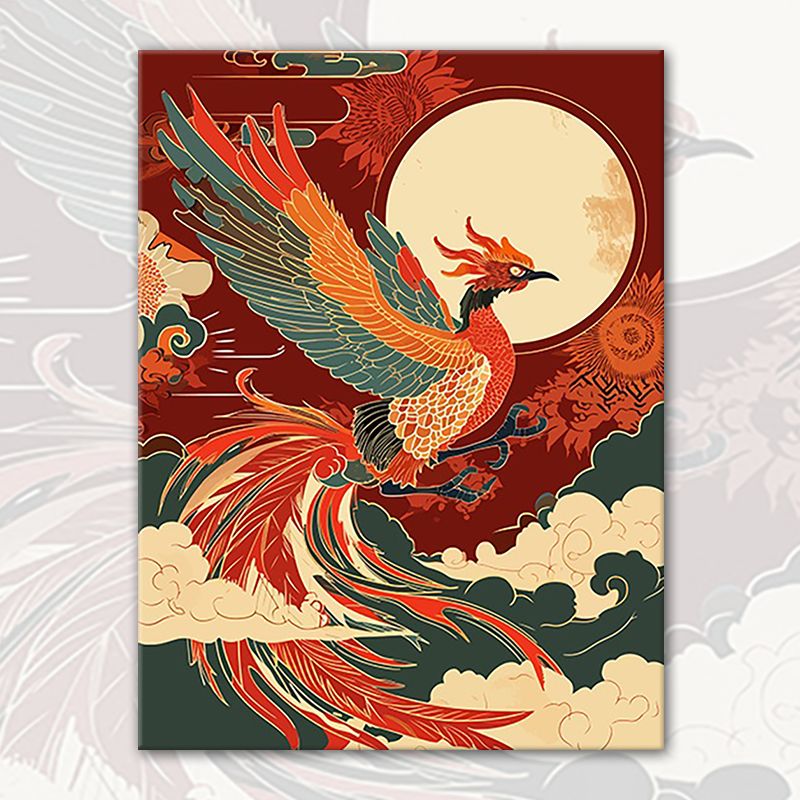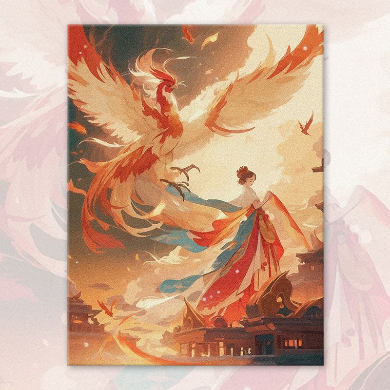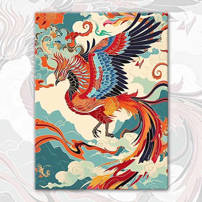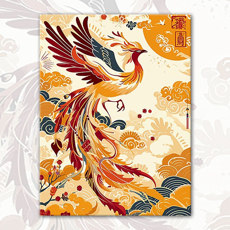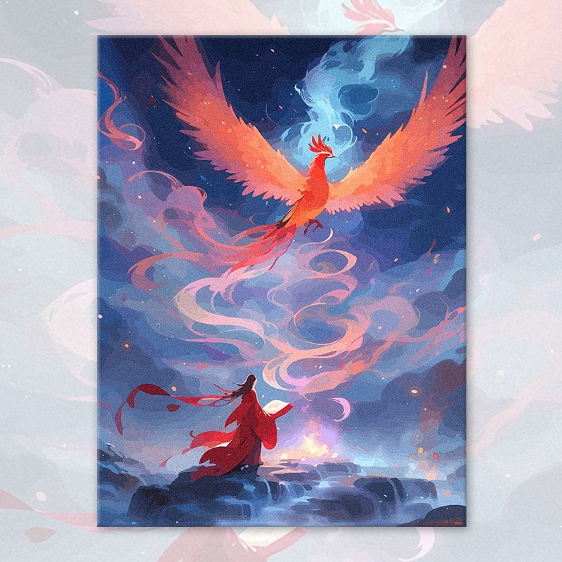 凤凰于飞数字油画diy填色画画解压手工填充油彩丙烯手绘2024新款
