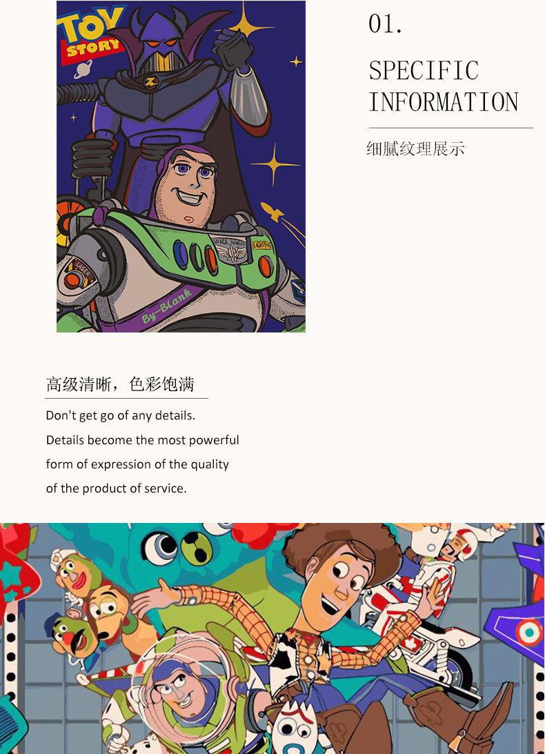 数字油画diy玩具总动员巴斯光年卡通动漫儿童手绘涂色填充装饰画