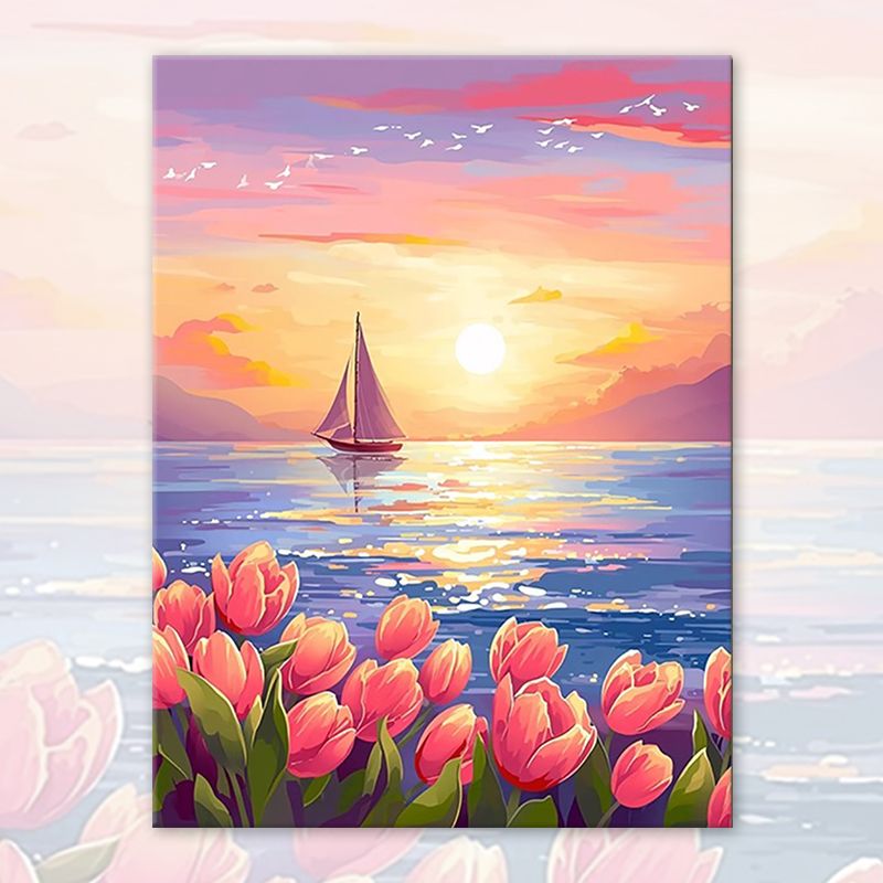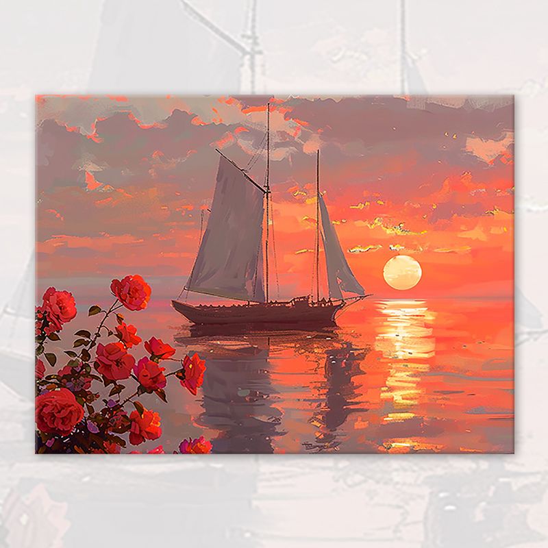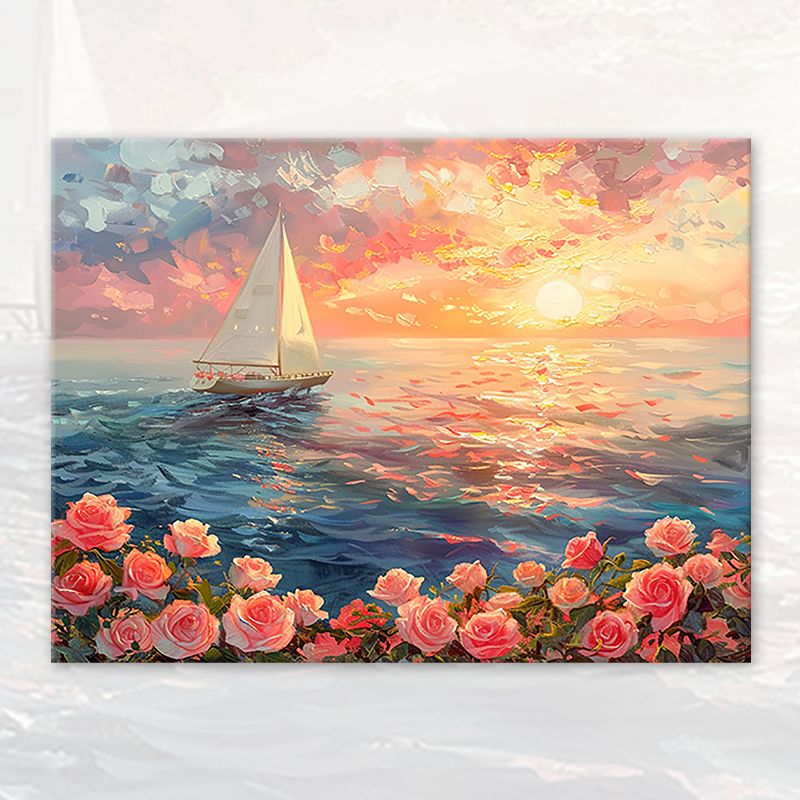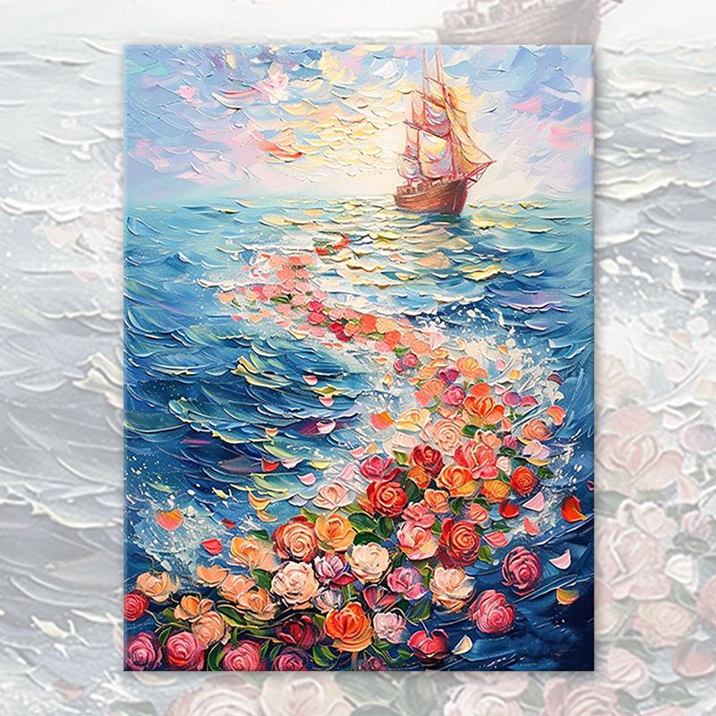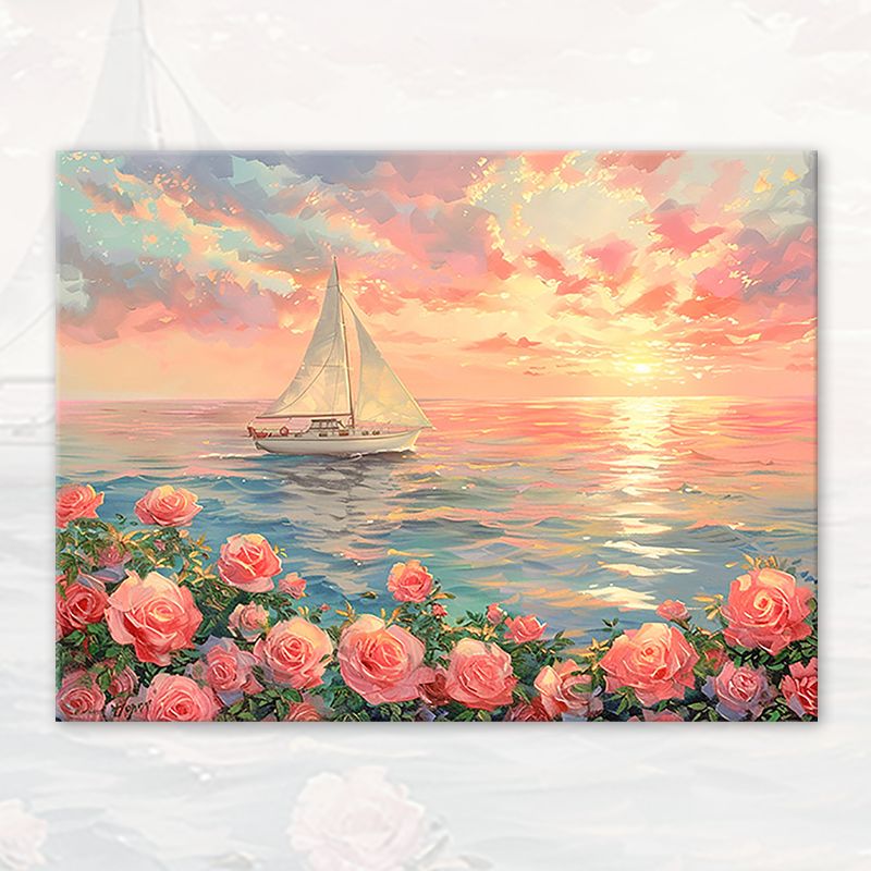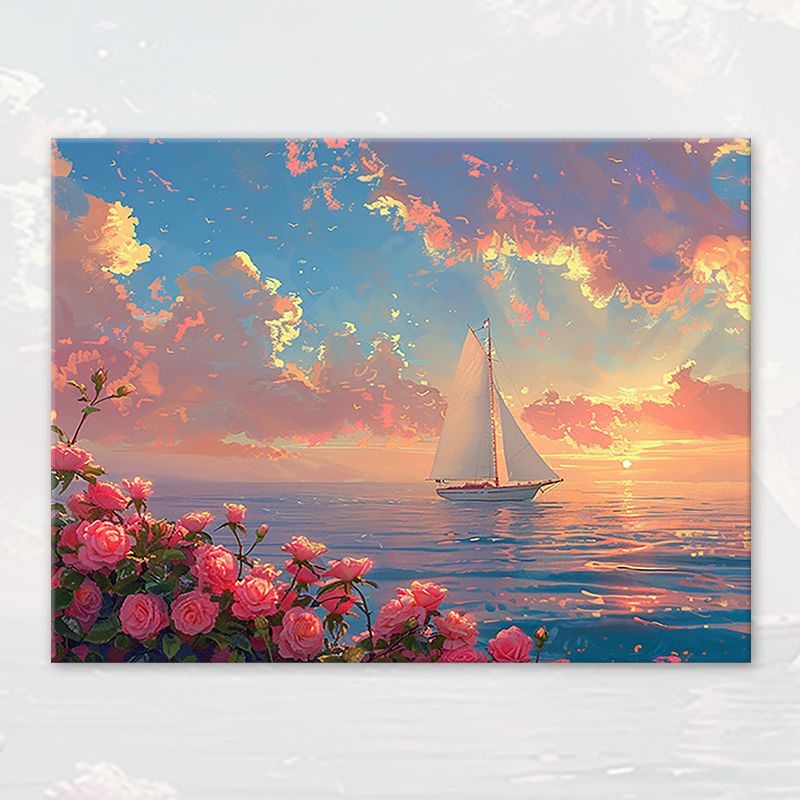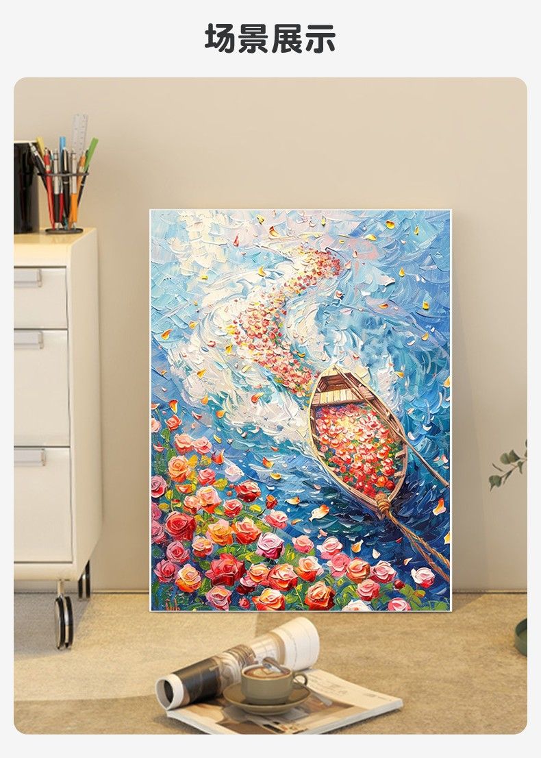 帆船花开数字油画2024新款diy手工填充丙烯画手绘涂色填色油彩画