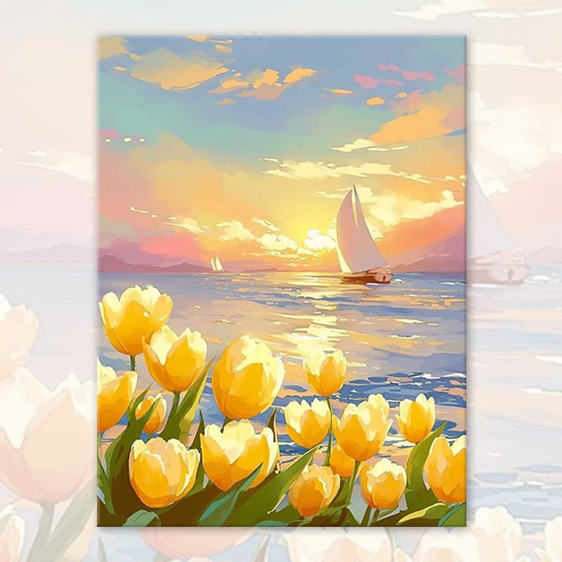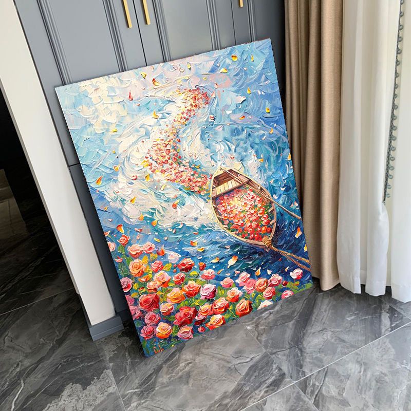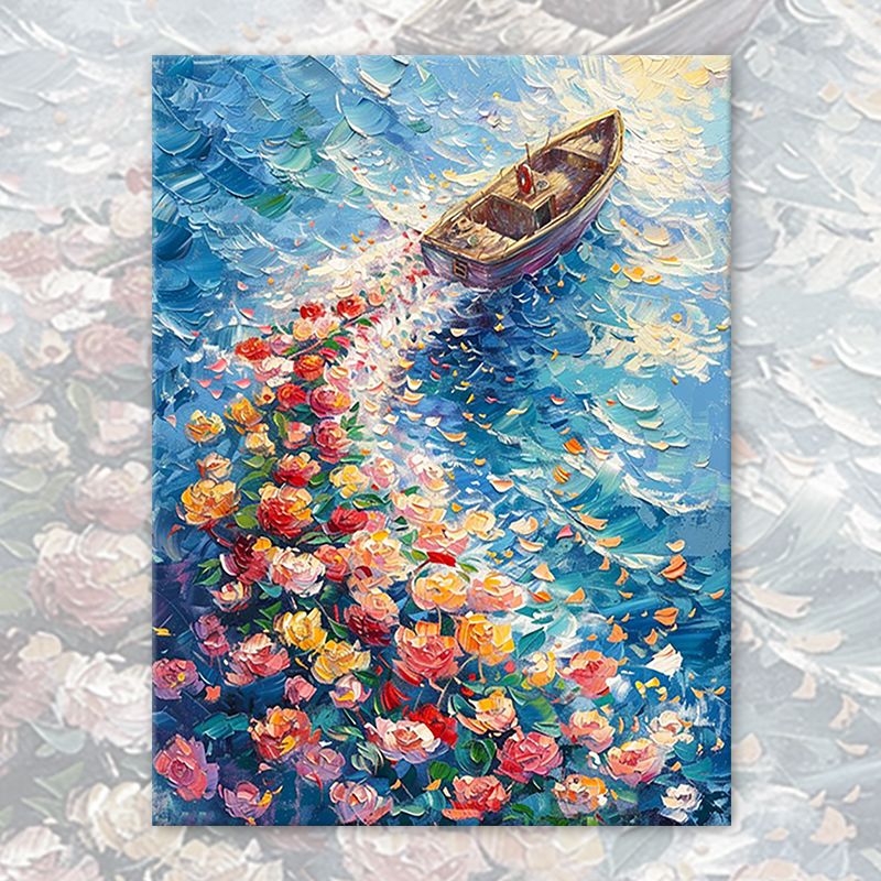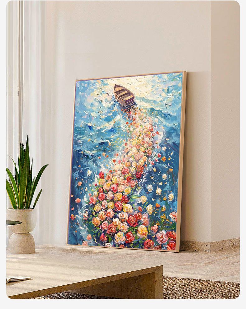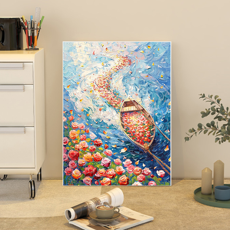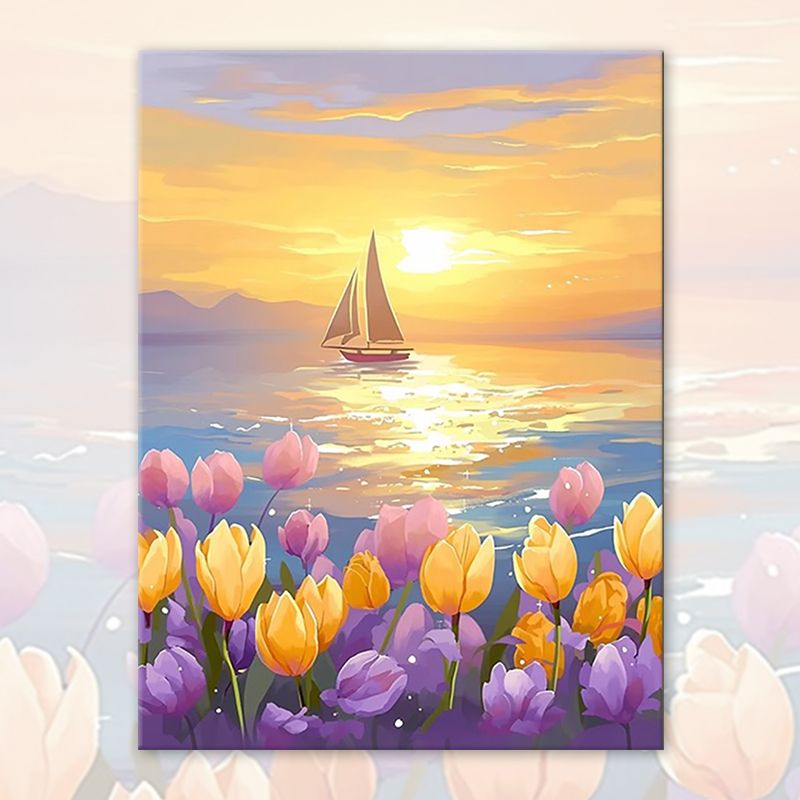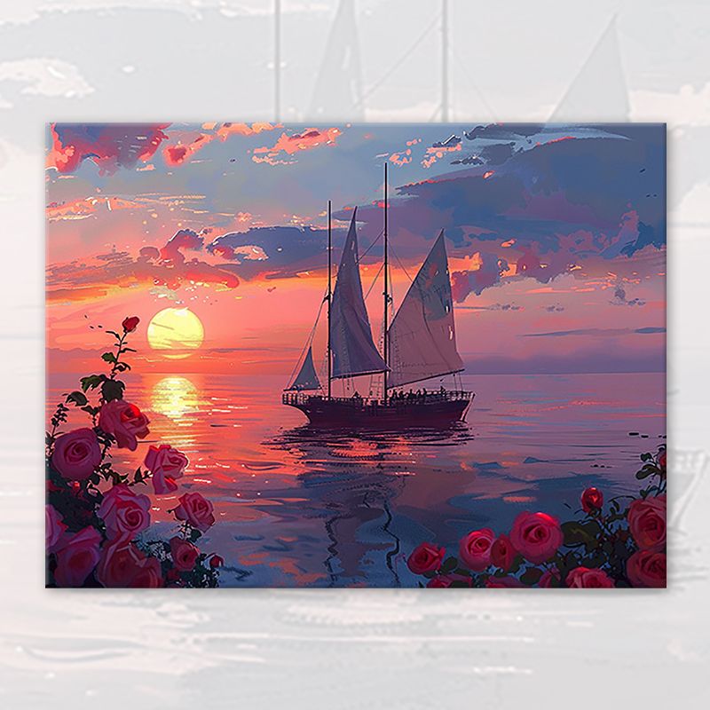 帆船花开数字油画2024新款diy手工填充丙烯画手绘涂色填色油彩画