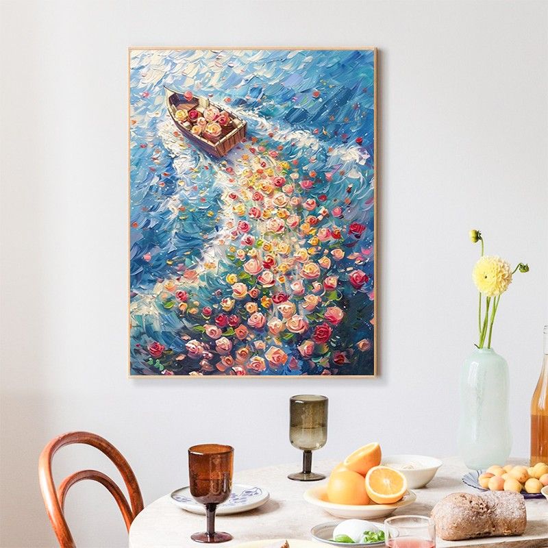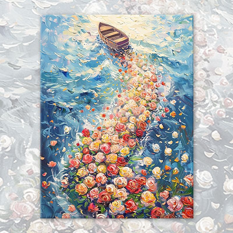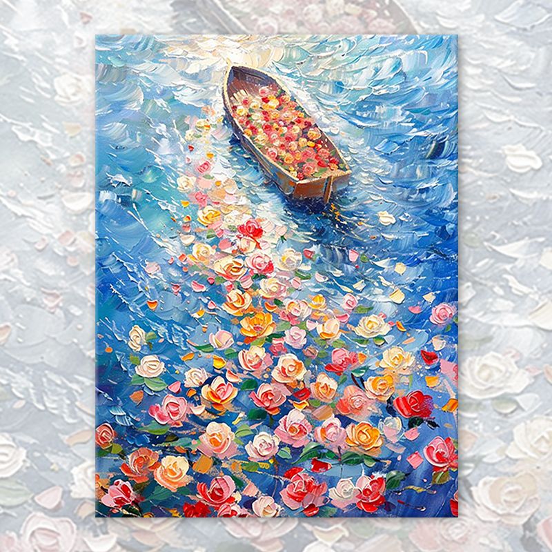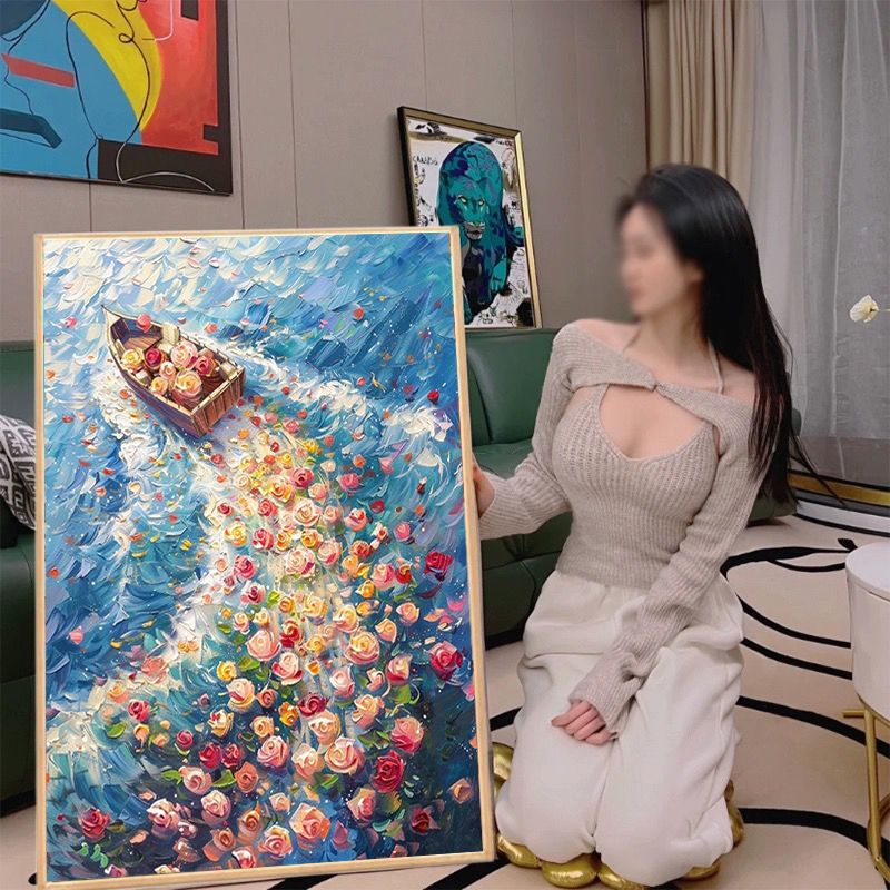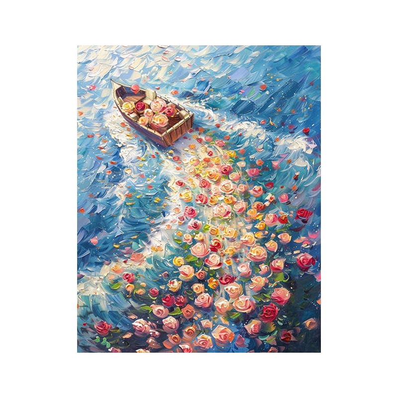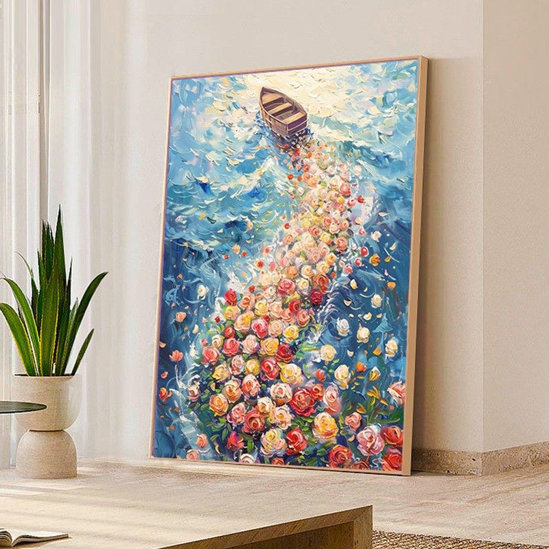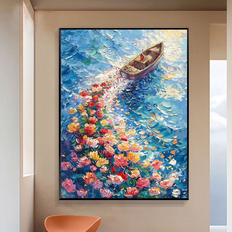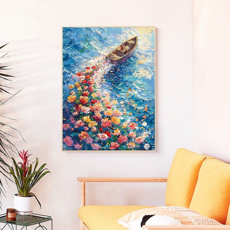 帆船花开数字油画2024新款diy手工填充丙烯画手绘涂色填色油彩画