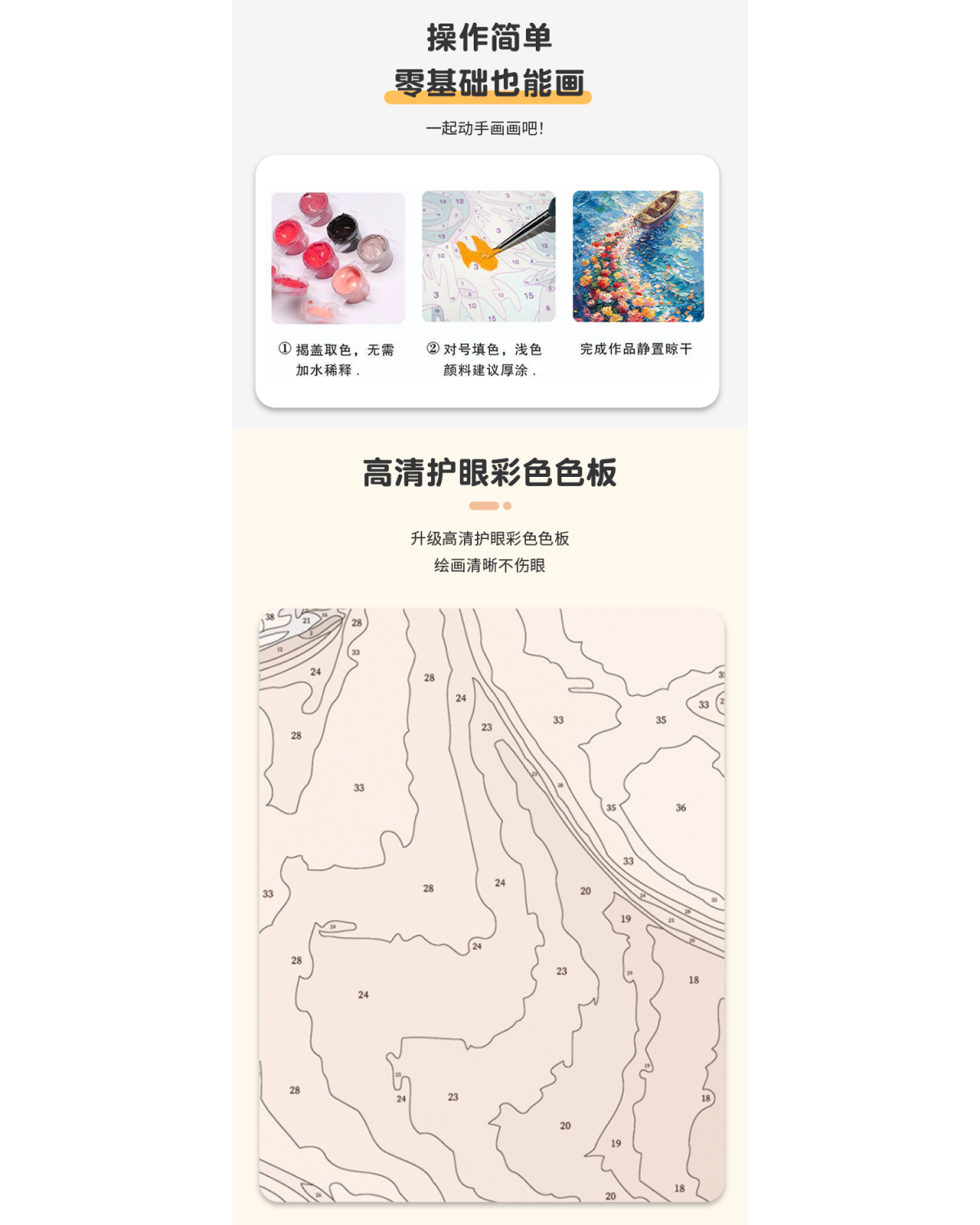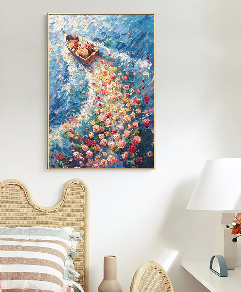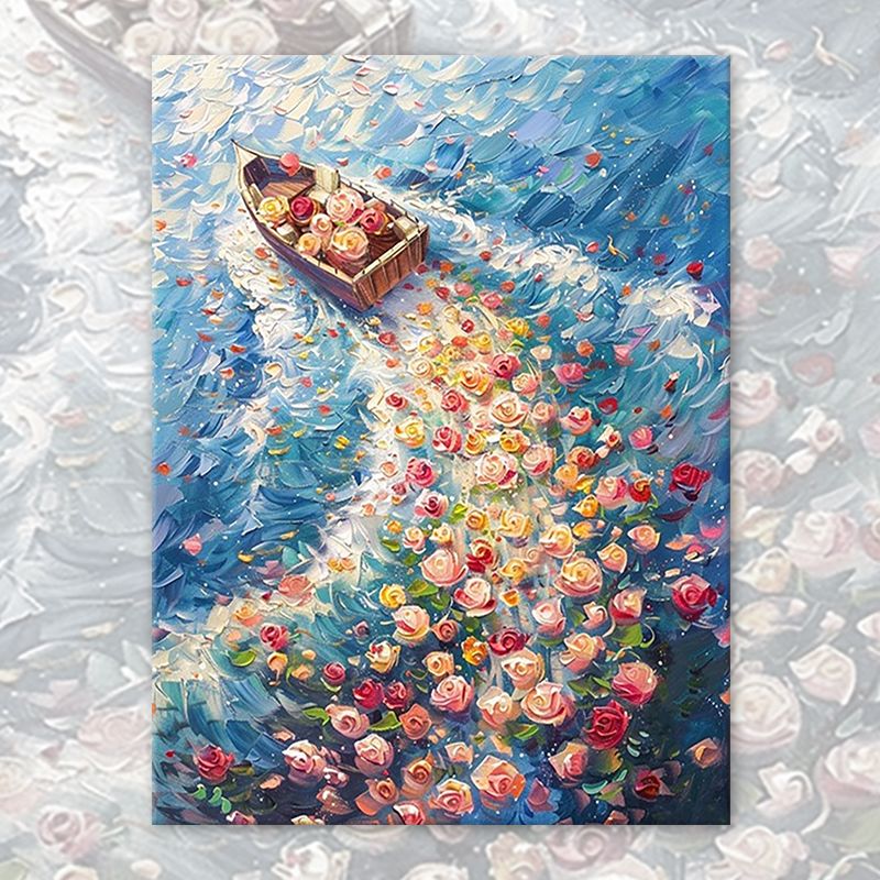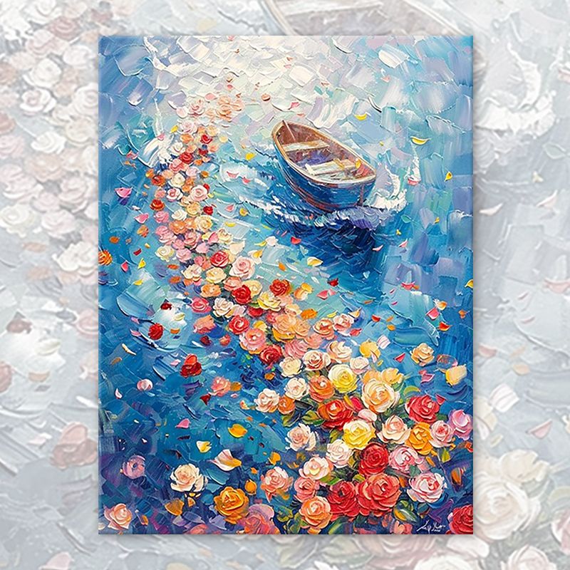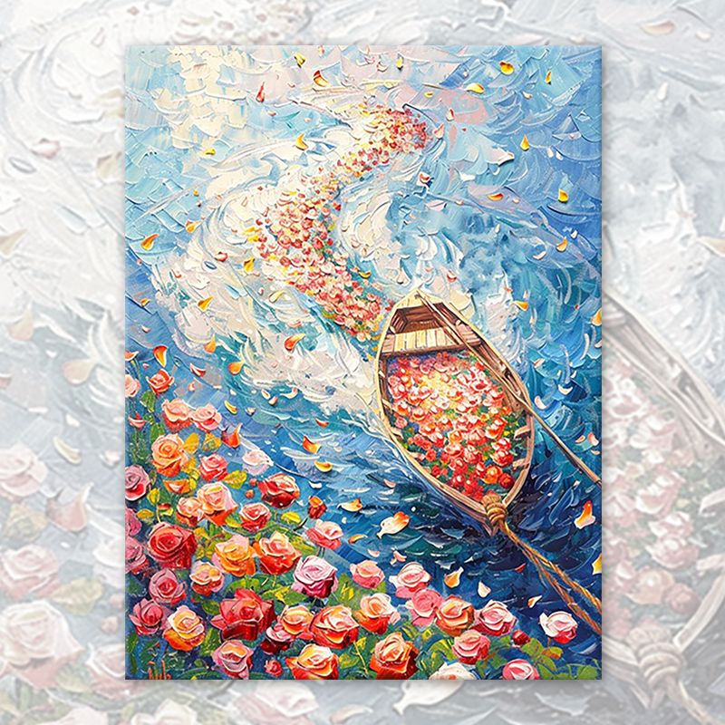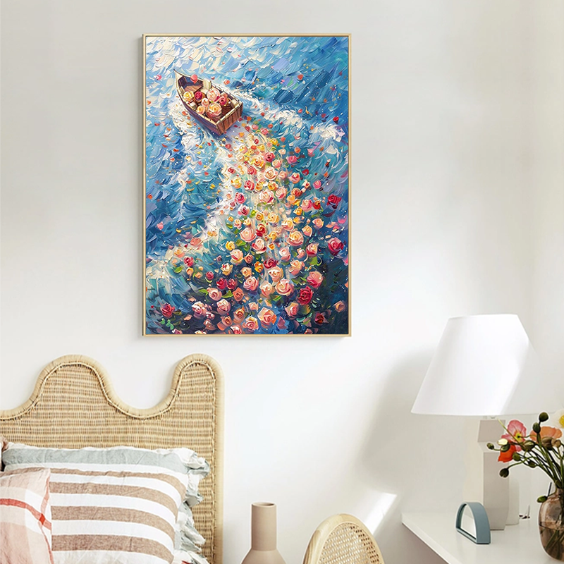 帆船花开数字油画2024新款diy手工填充丙烯画手绘涂色填色油彩画