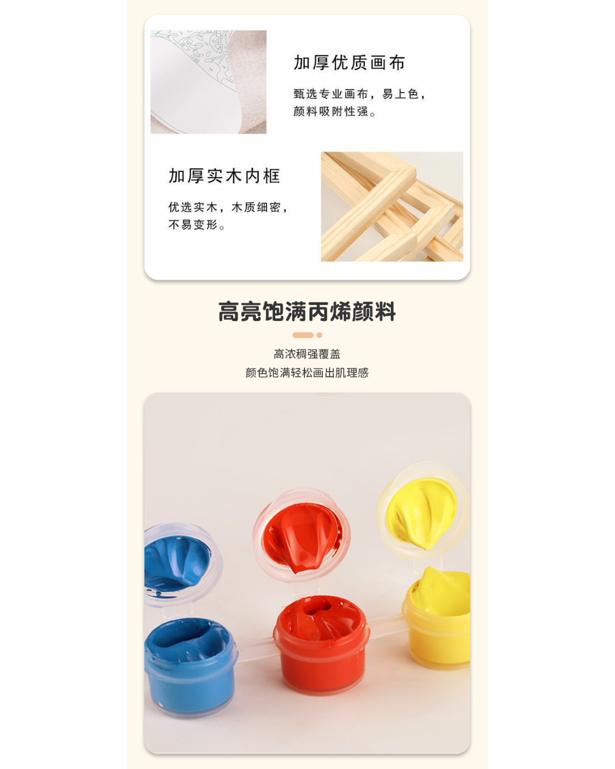 | size 59.9 * cm stretch well inner frame + brush paint(尺寸59.9*74.9厘米绷好内框+画笔颜料) | USD $26.62 | 99999 piece available |
