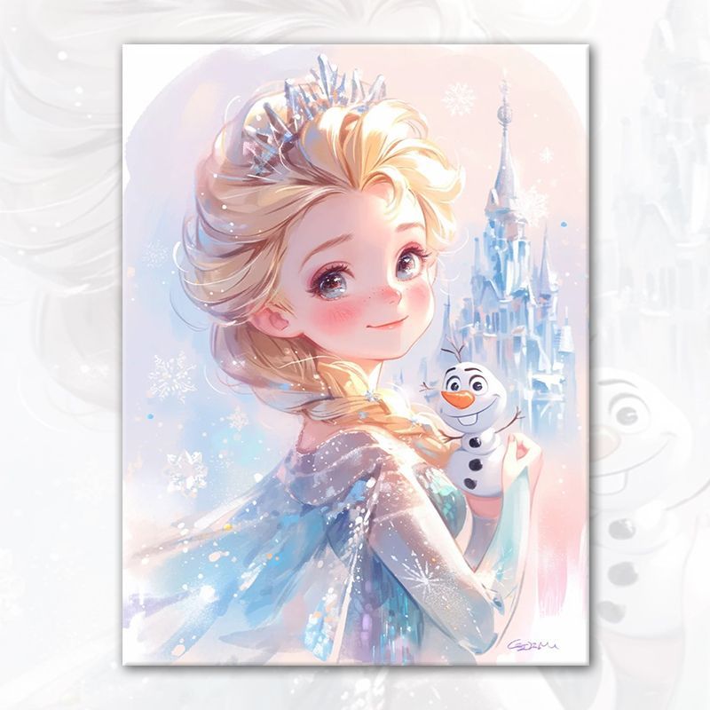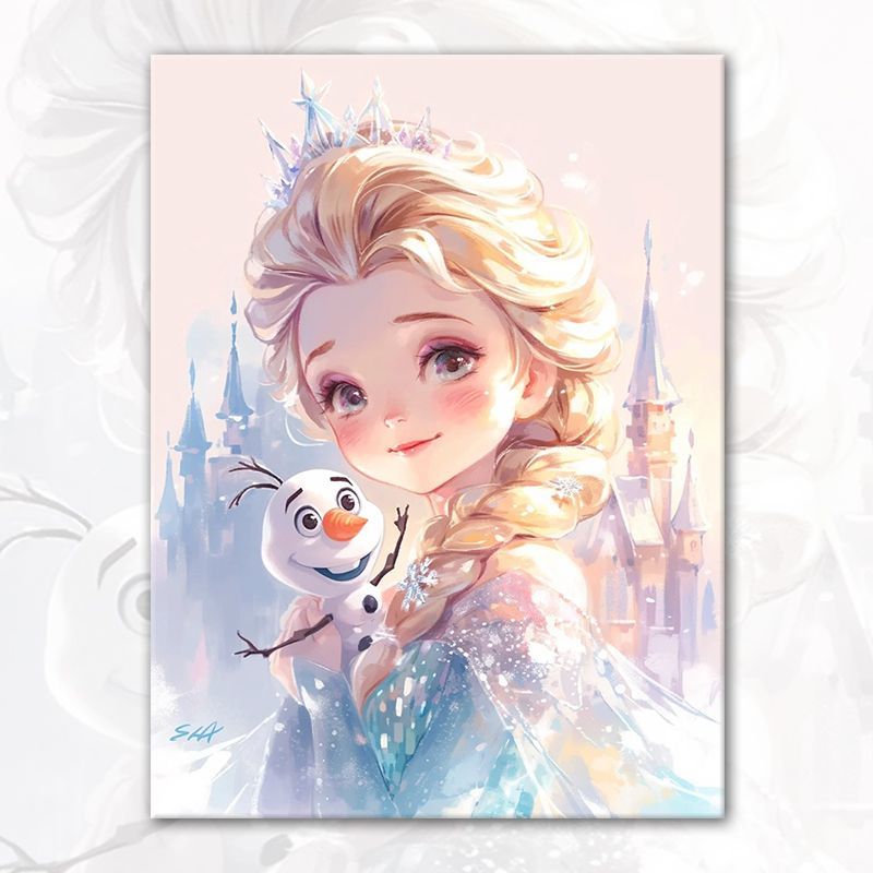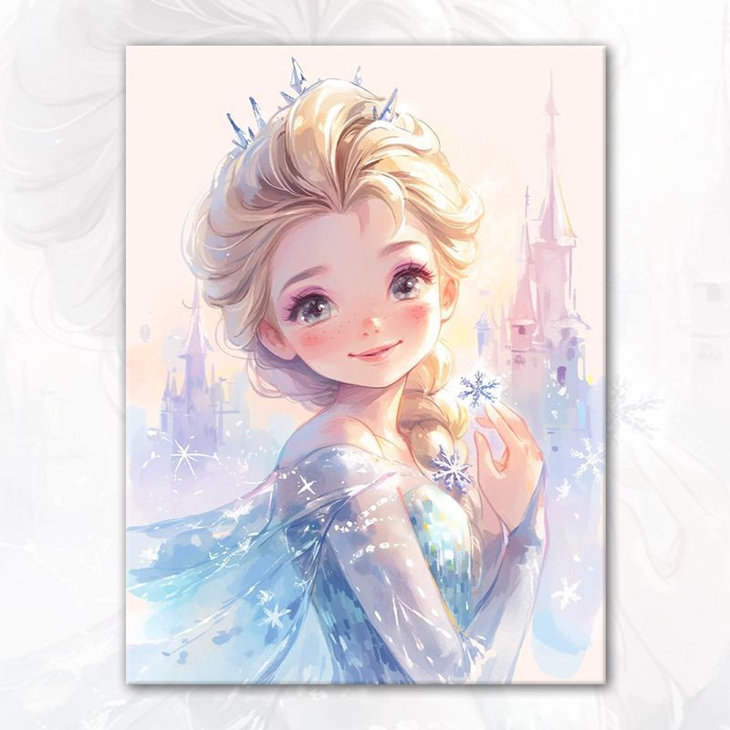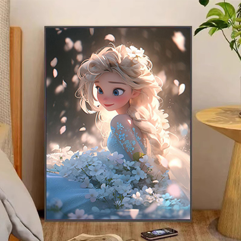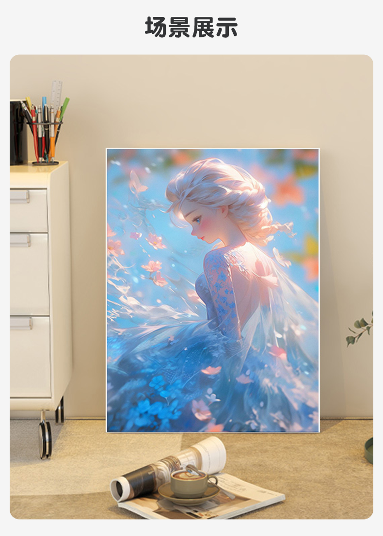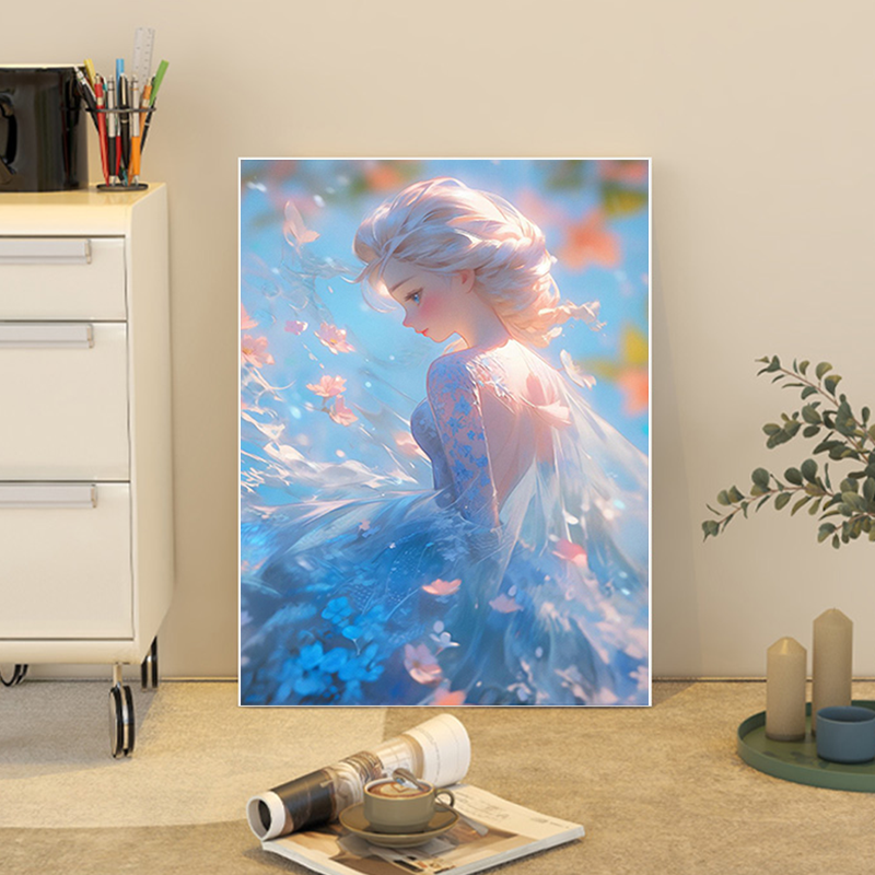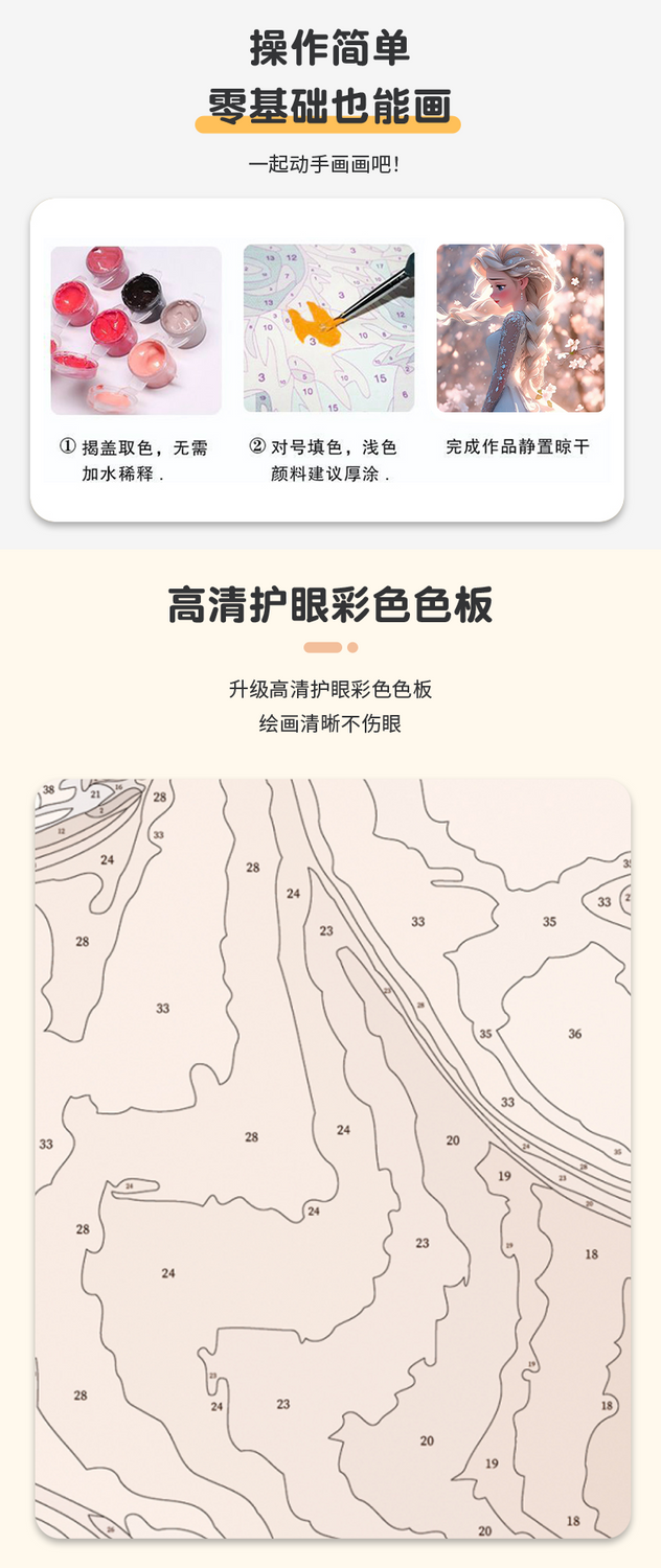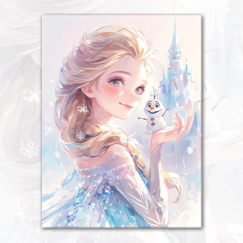 diy数字油画 冰雪奇缘儿童手工卡通动漫填色丙烯油彩画爱莎公主