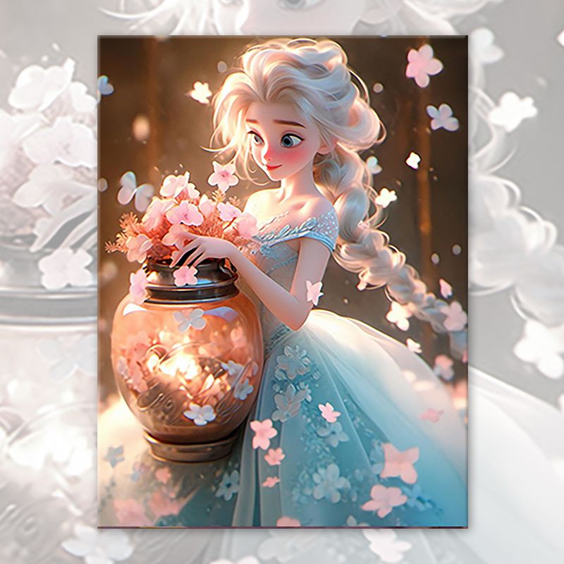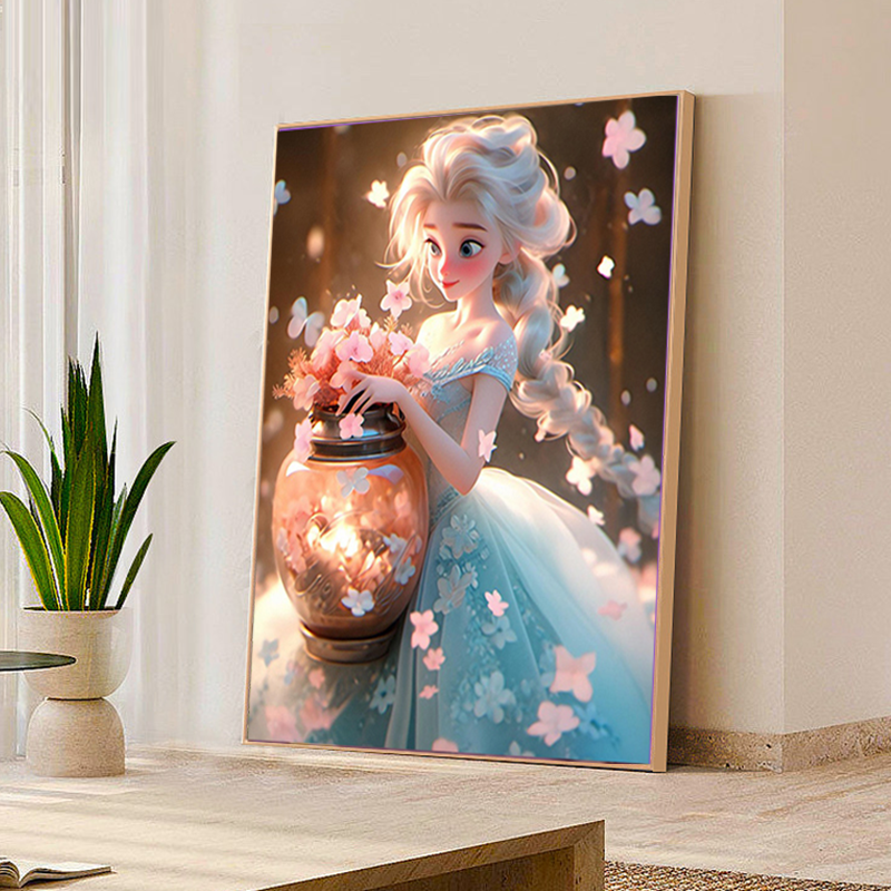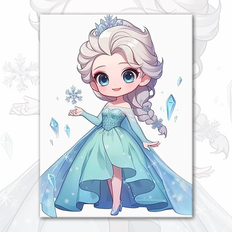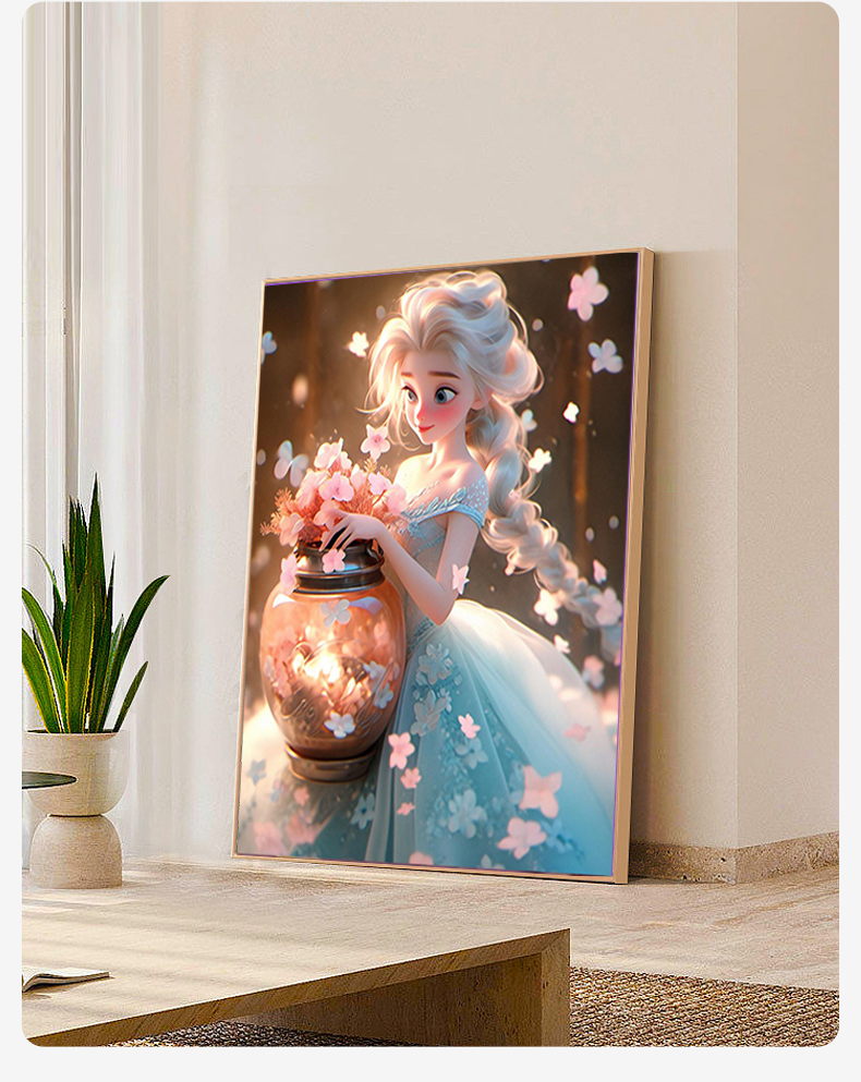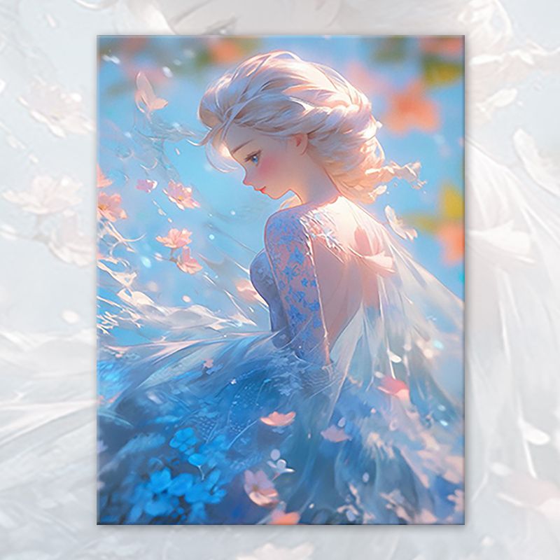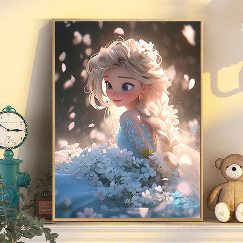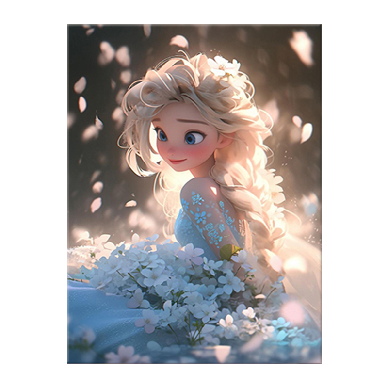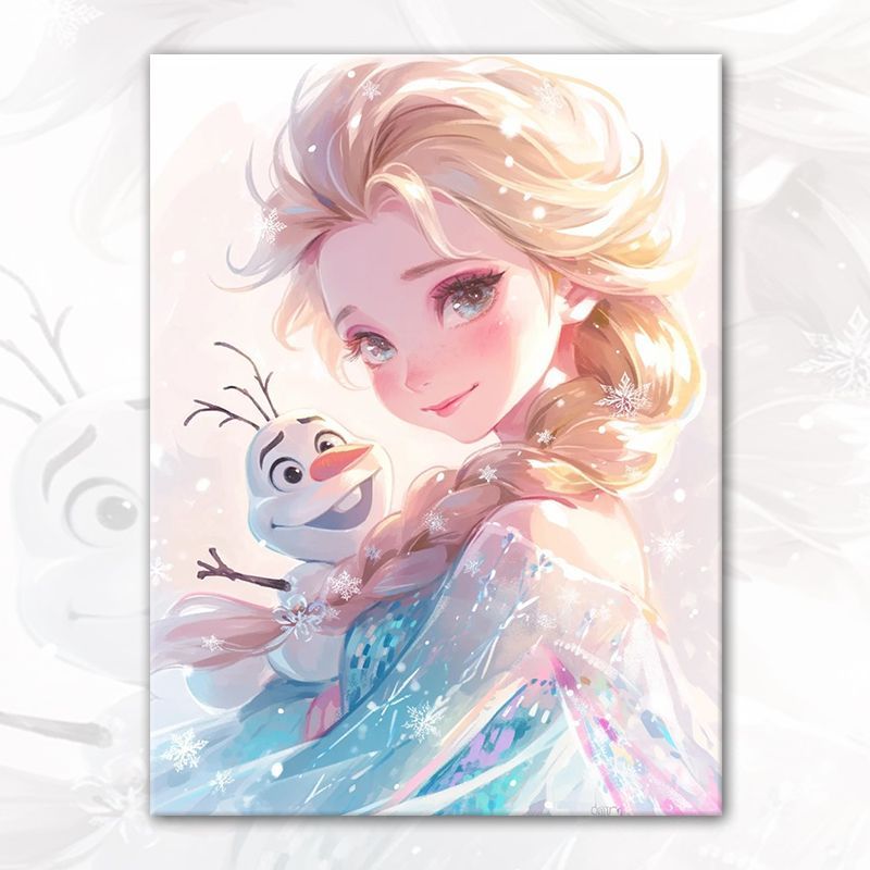 diy数字油画 冰雪奇缘儿童手工卡通动漫填色丙烯油彩画爱莎公主