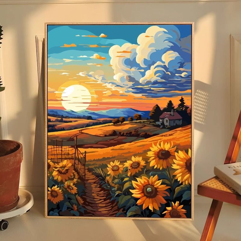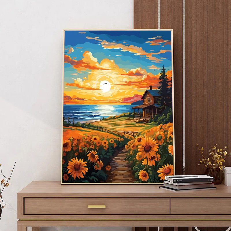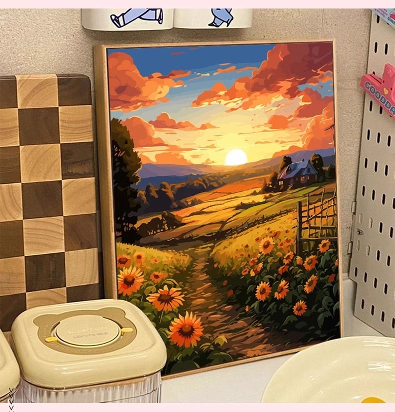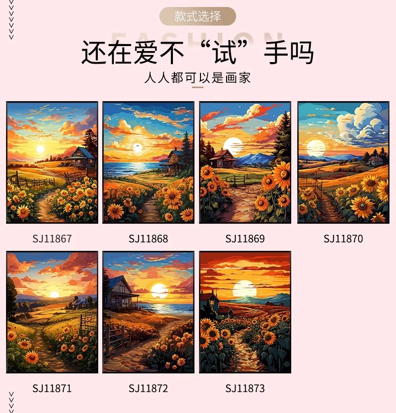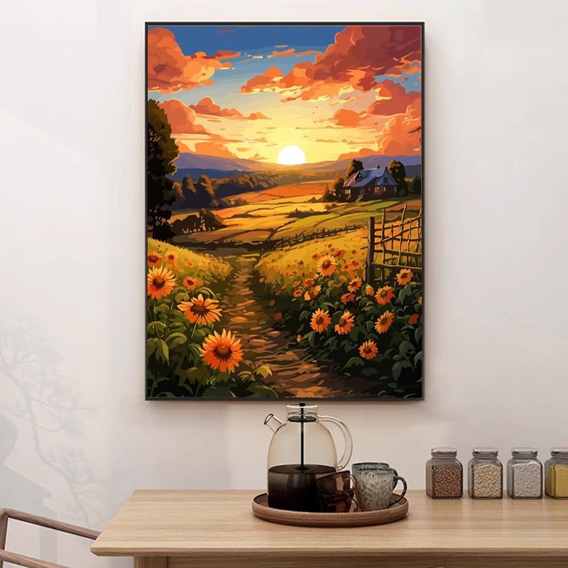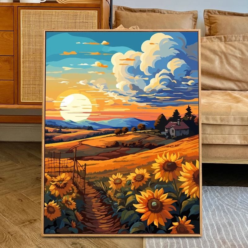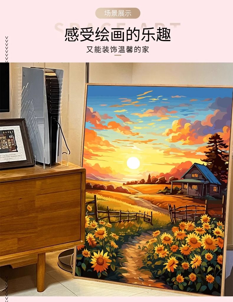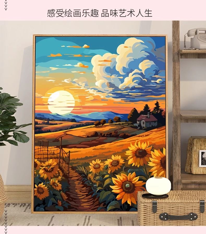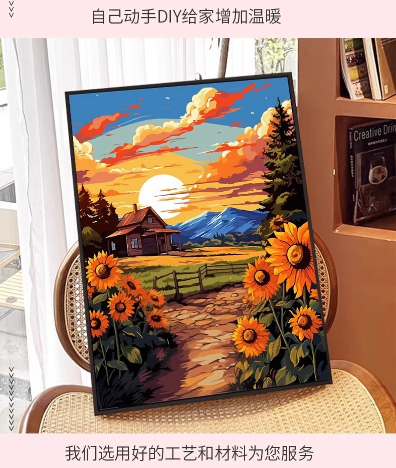 向日葵风景diy数字油画油彩丙烯装饰挂画画填充填色手工手绘高级
