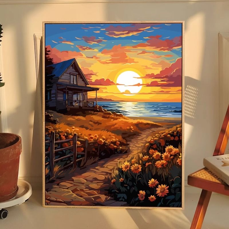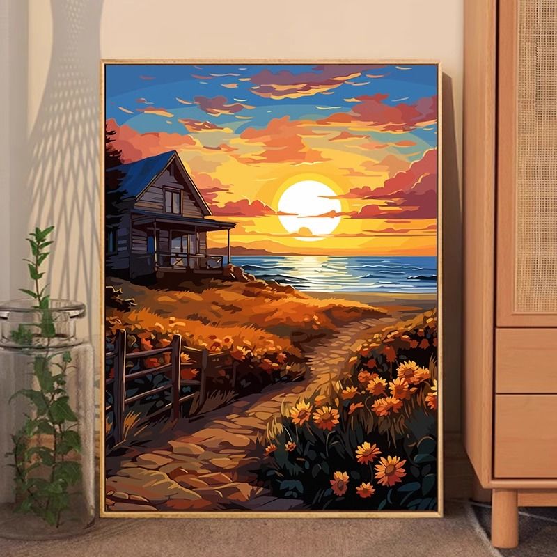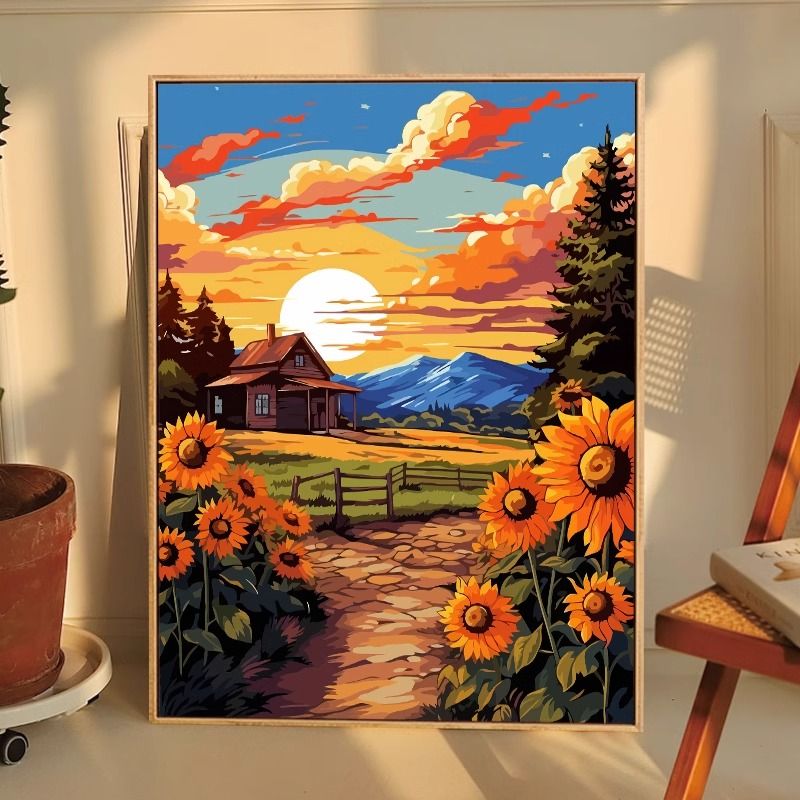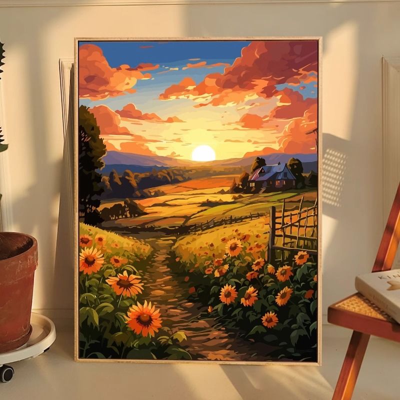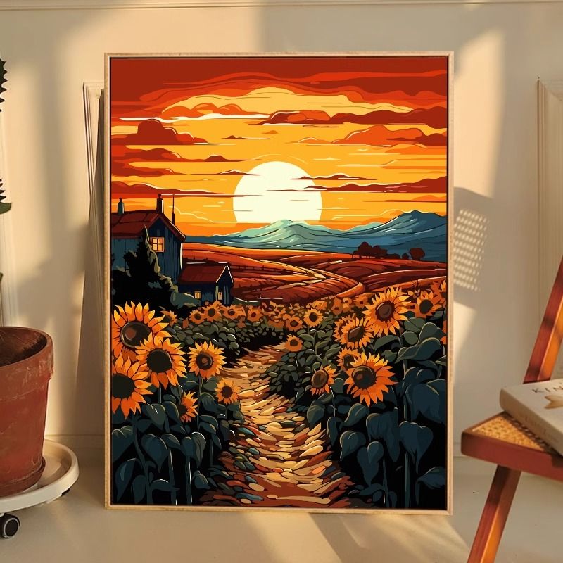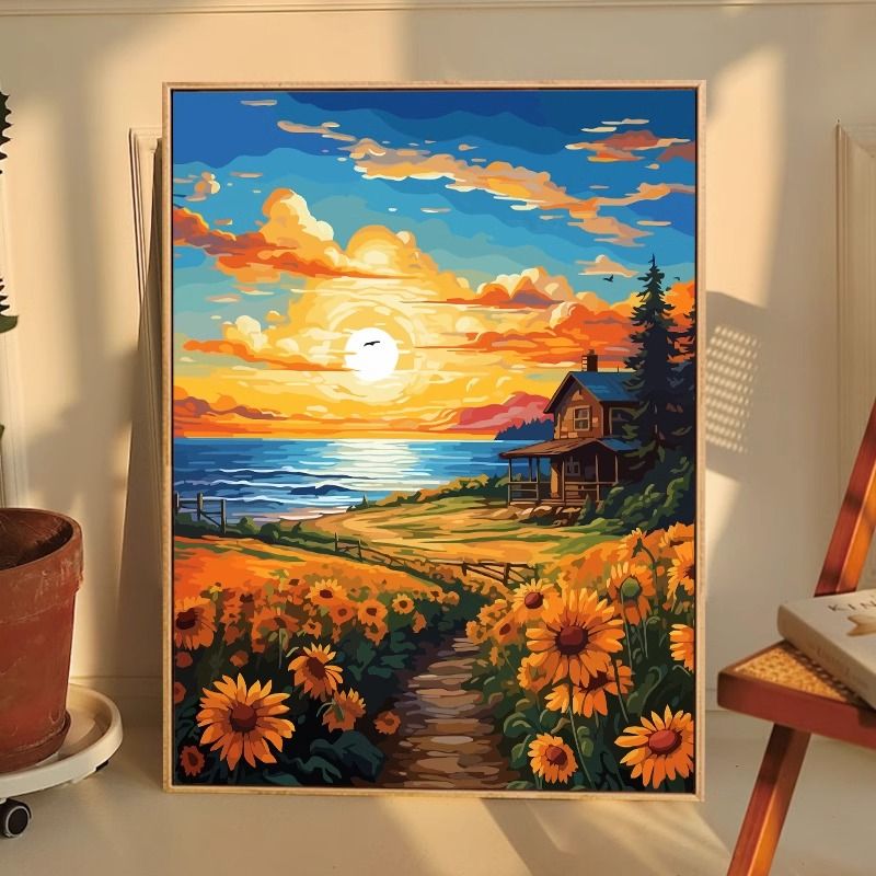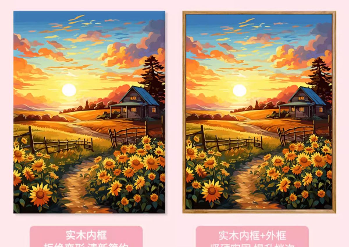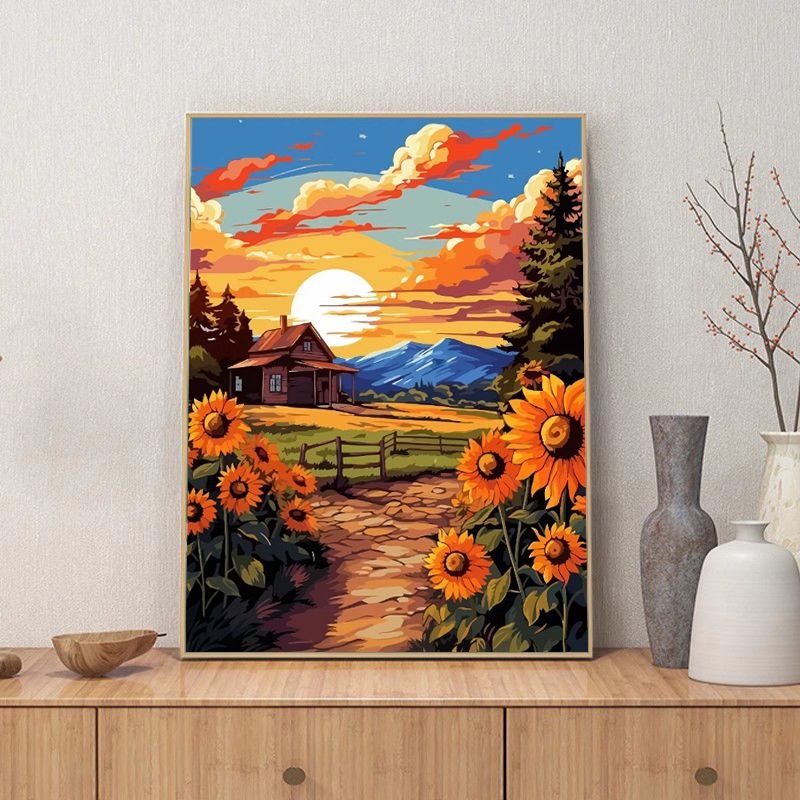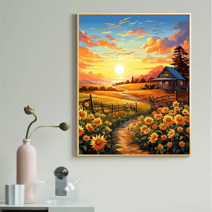 向日葵风景diy数字油画油彩丙烯装饰挂画画填充填色手工手绘高级
