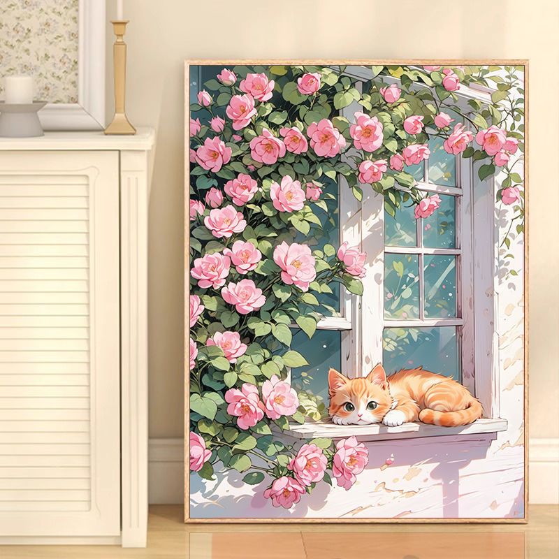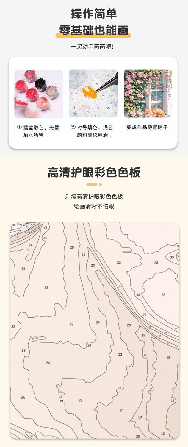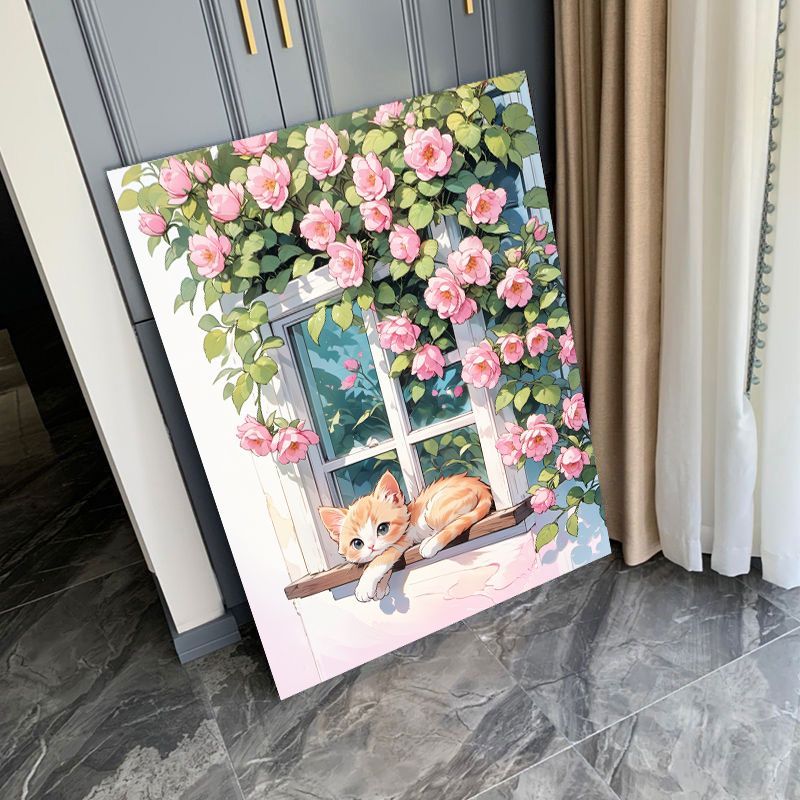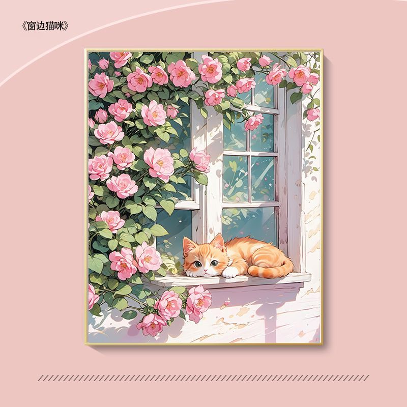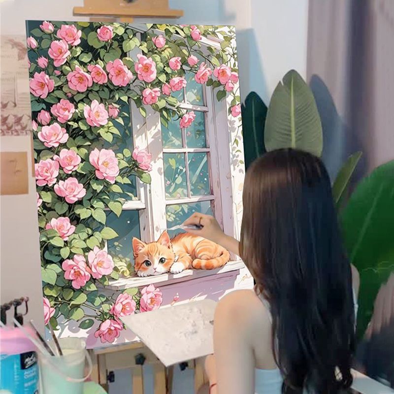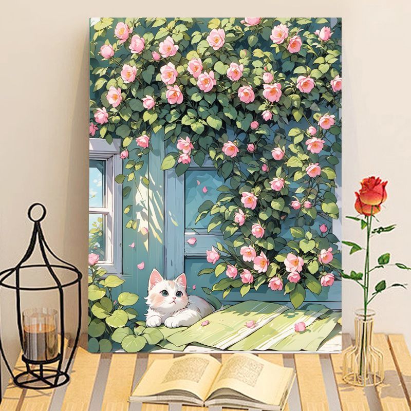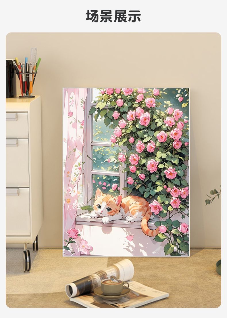 午后蔷薇diy数字油画2024新款填充手绘丙烯画手工涂色填色油彩画