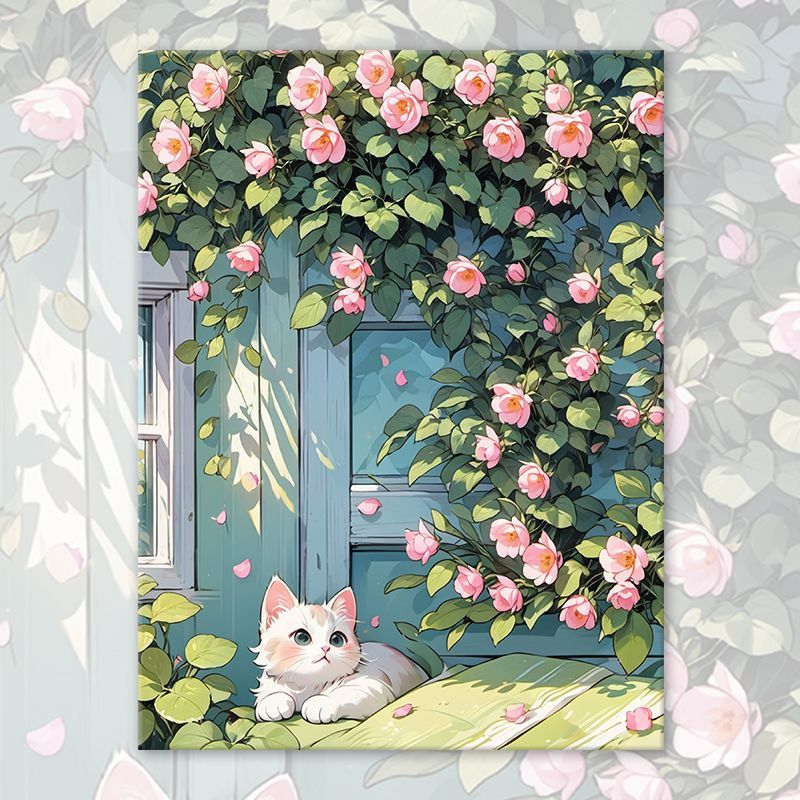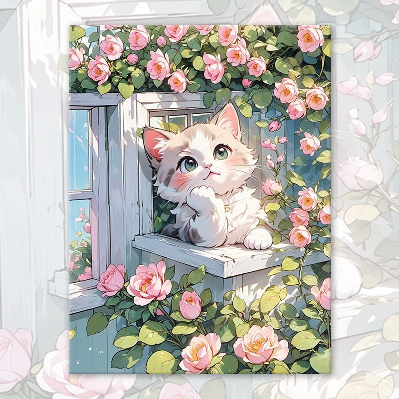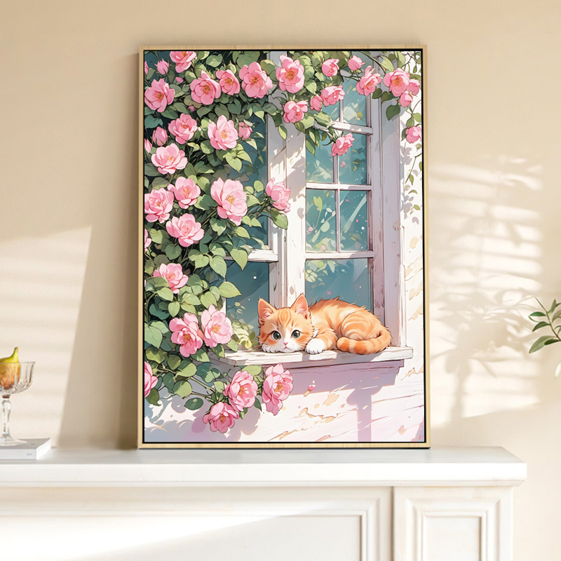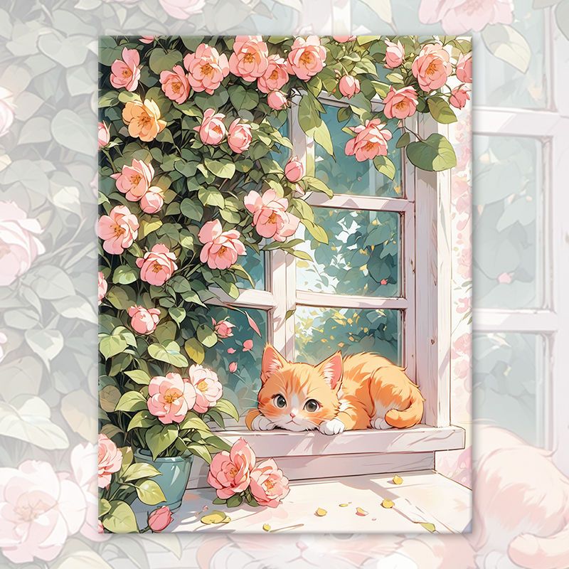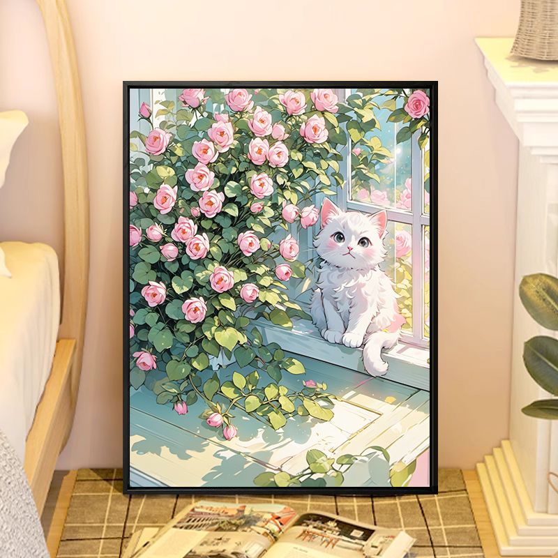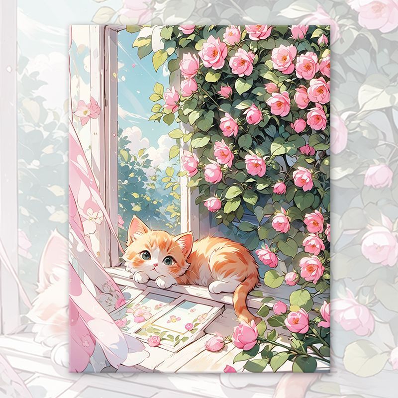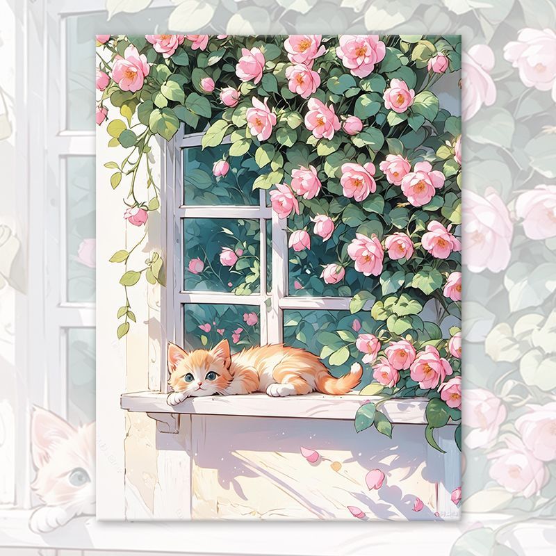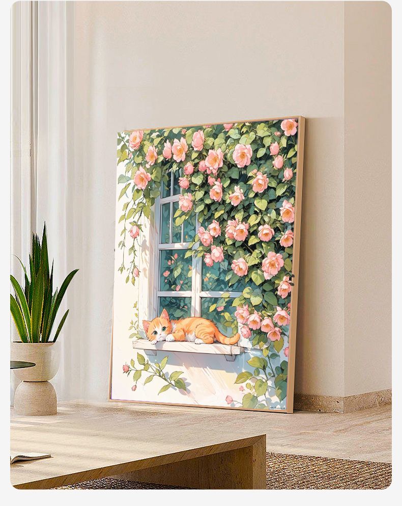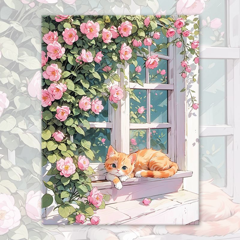 午后蔷薇diy数字油画2024新款填充手绘丙烯画手工涂色填色油彩画