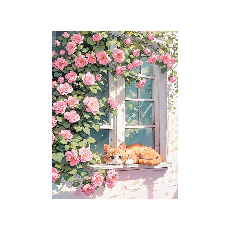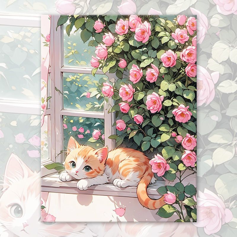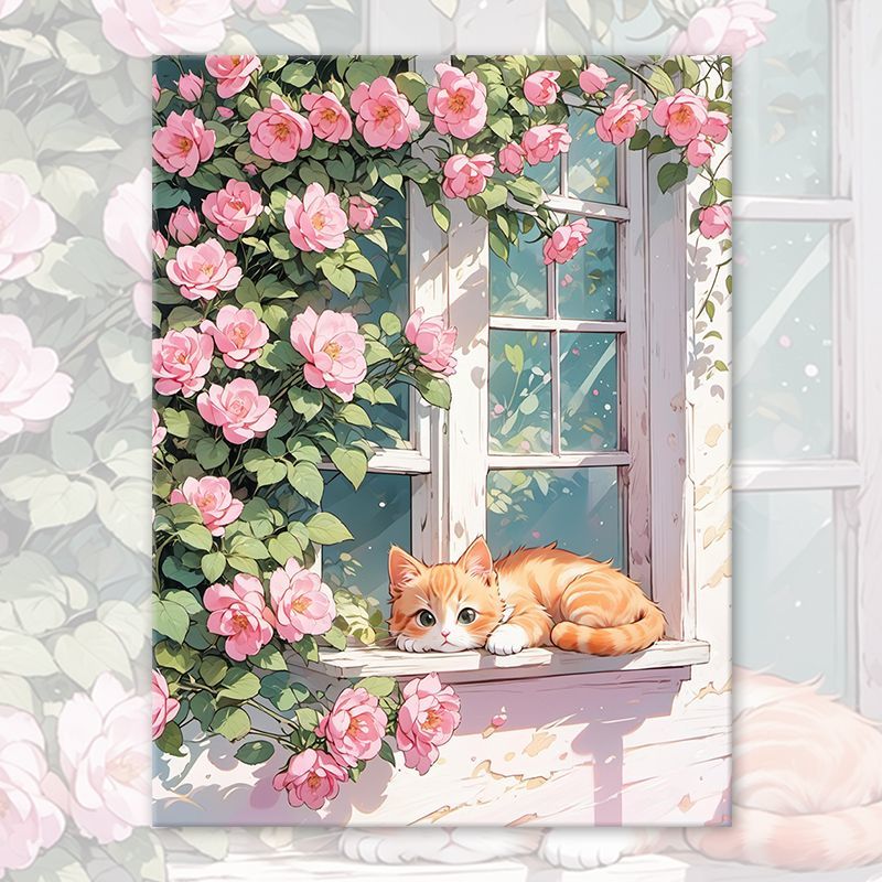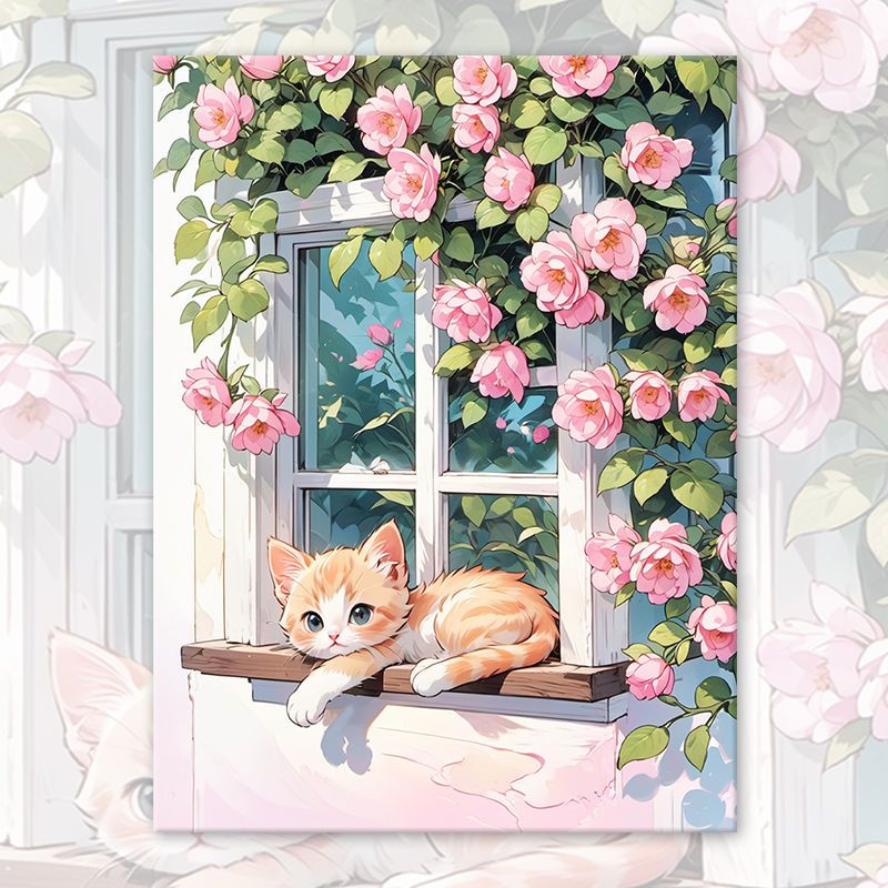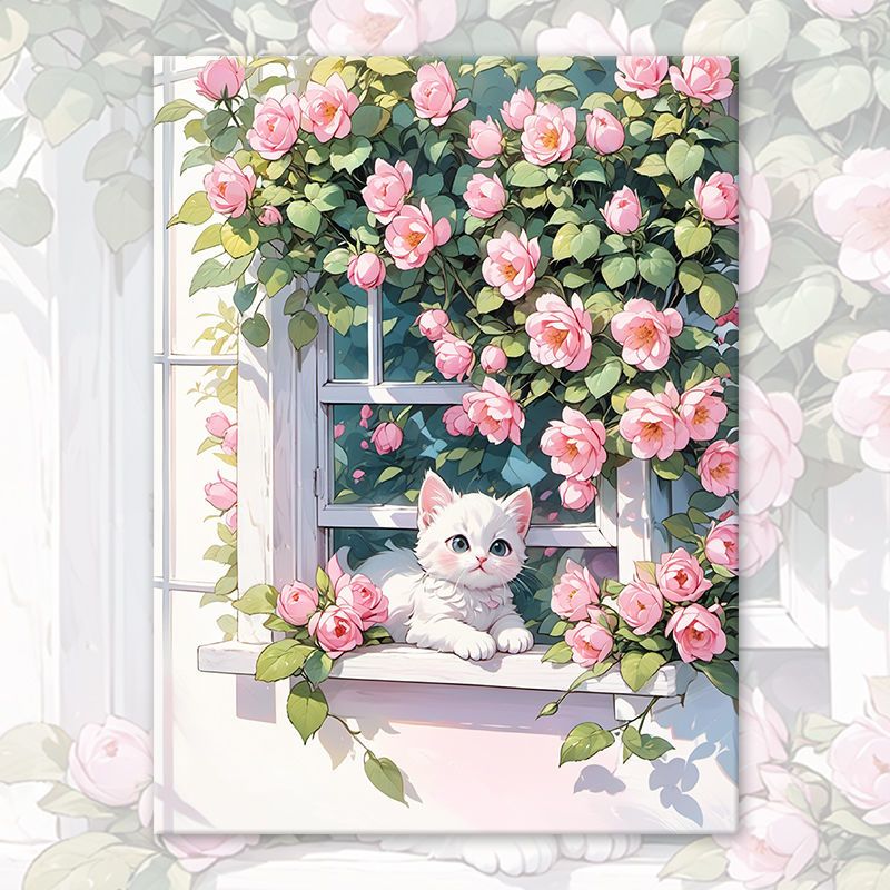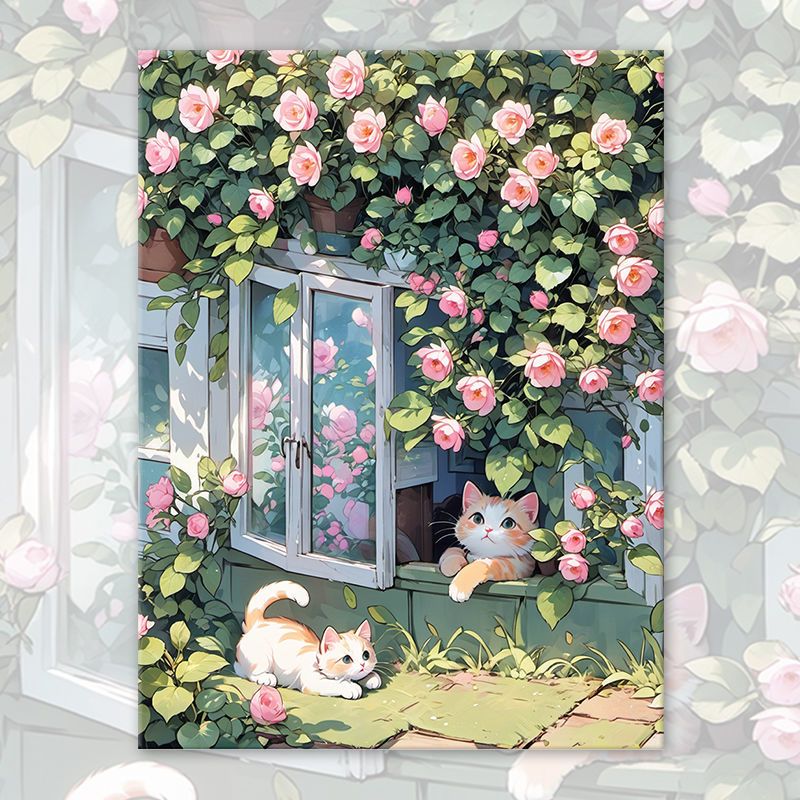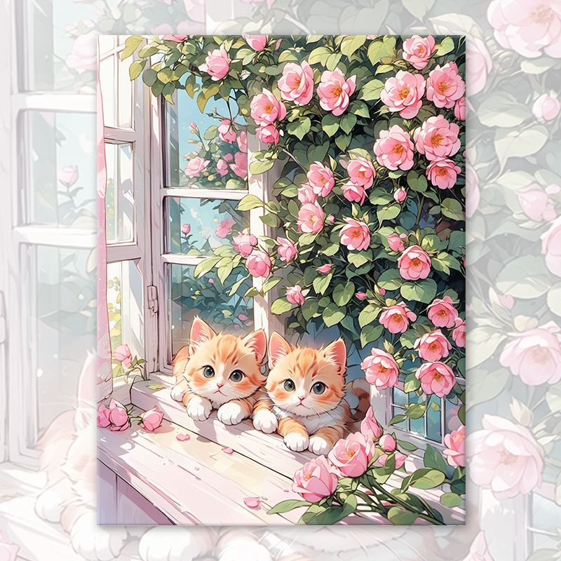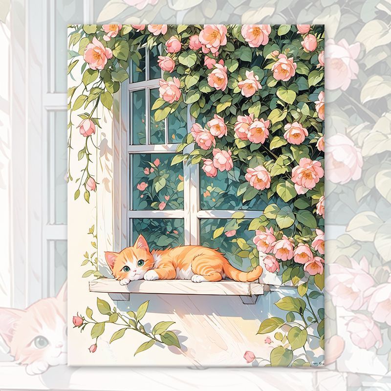 午后蔷薇diy数字油画2024新款填充手绘丙烯画手工涂色填色油彩画