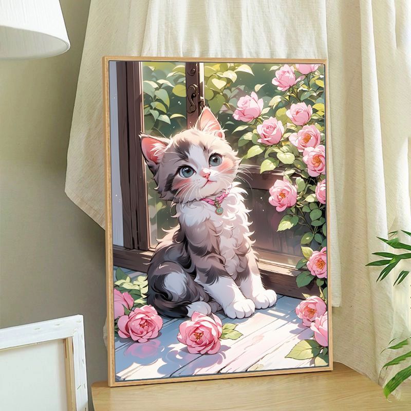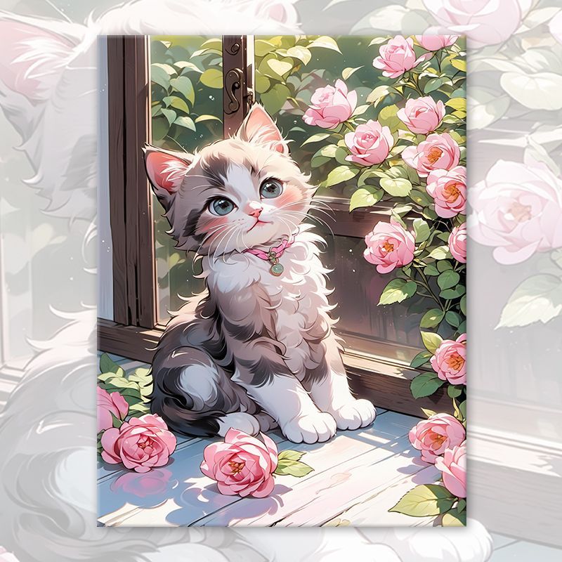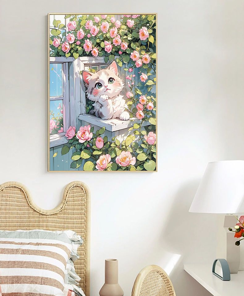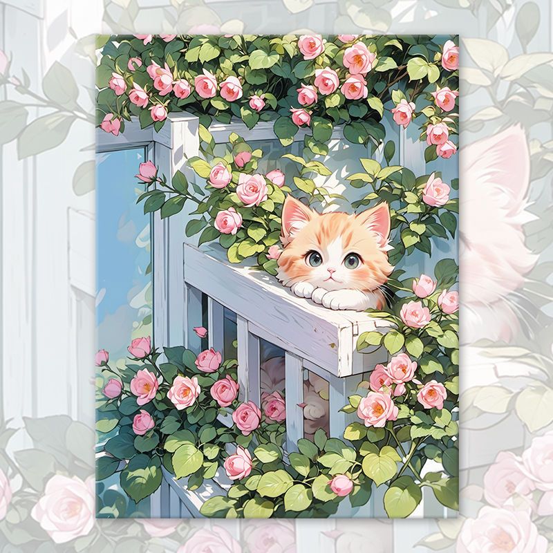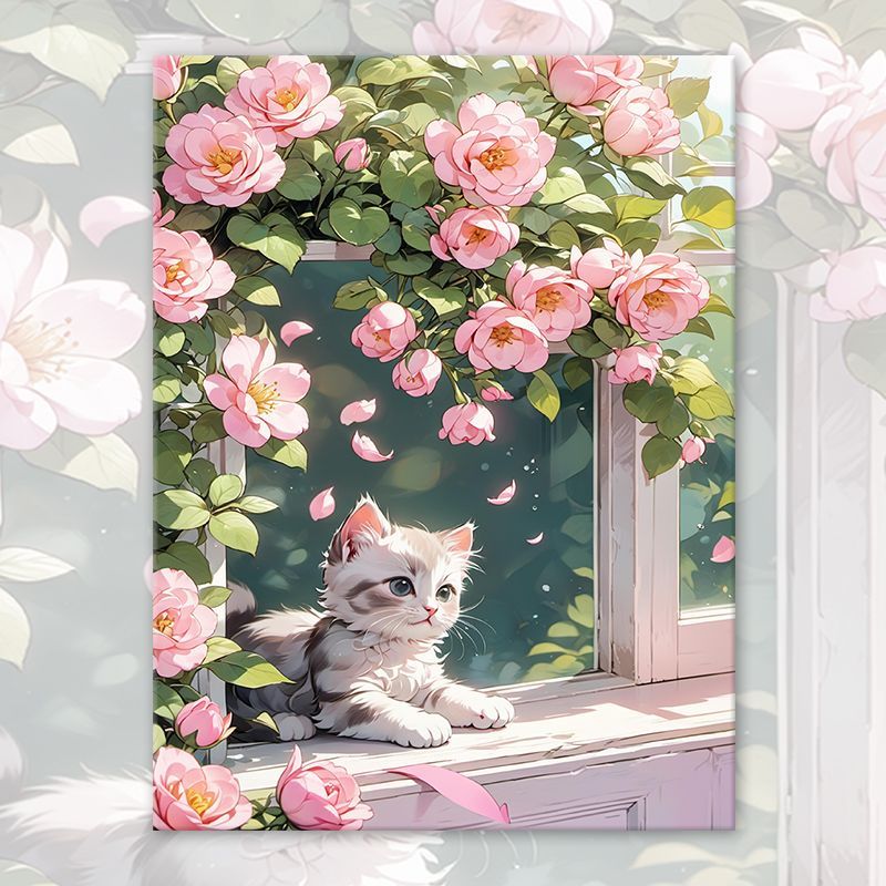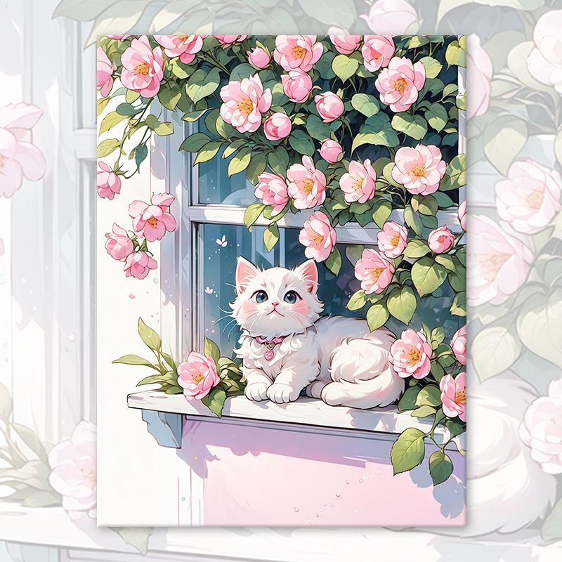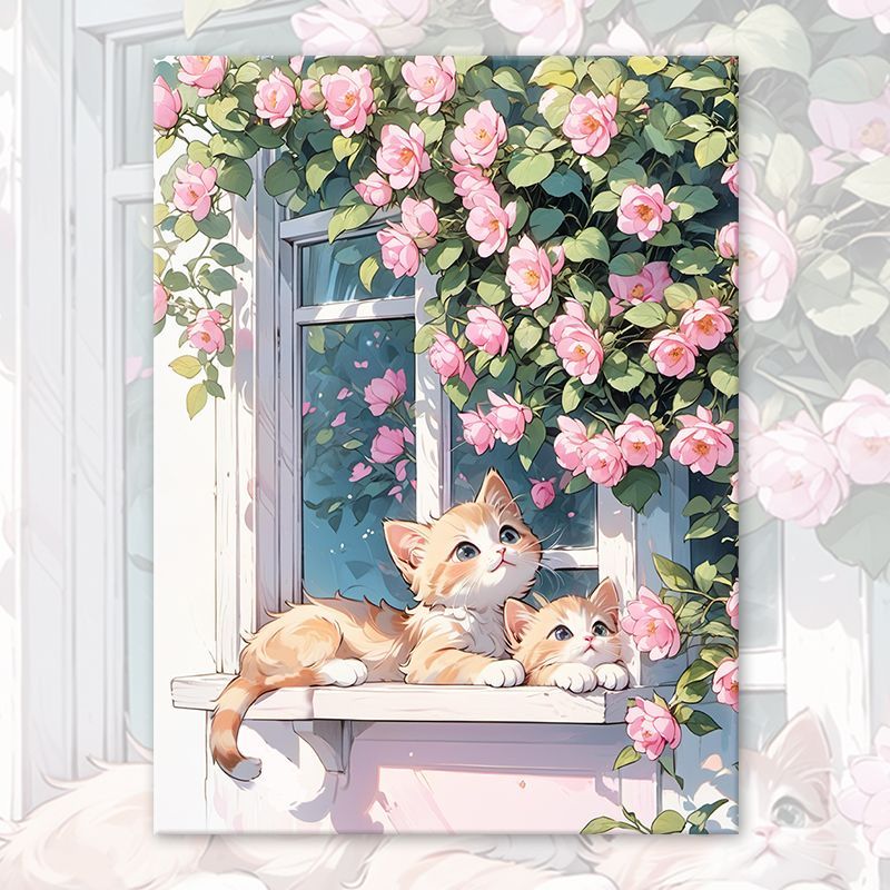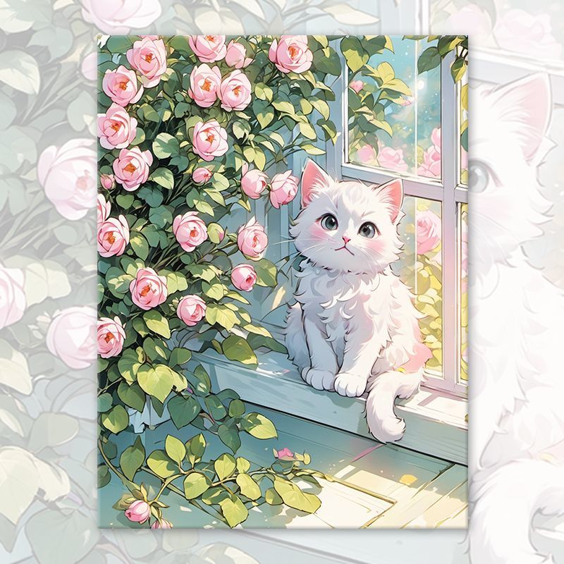 午后蔷薇diy数字油画2024新款填充手绘丙烯画手工涂色填色油彩画