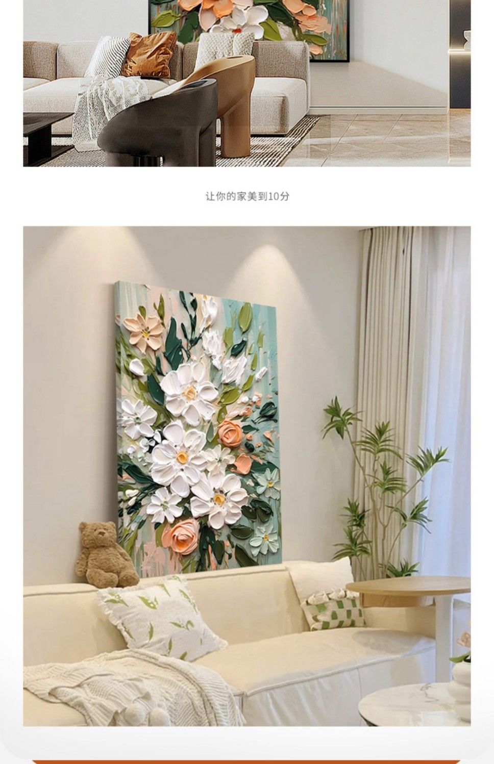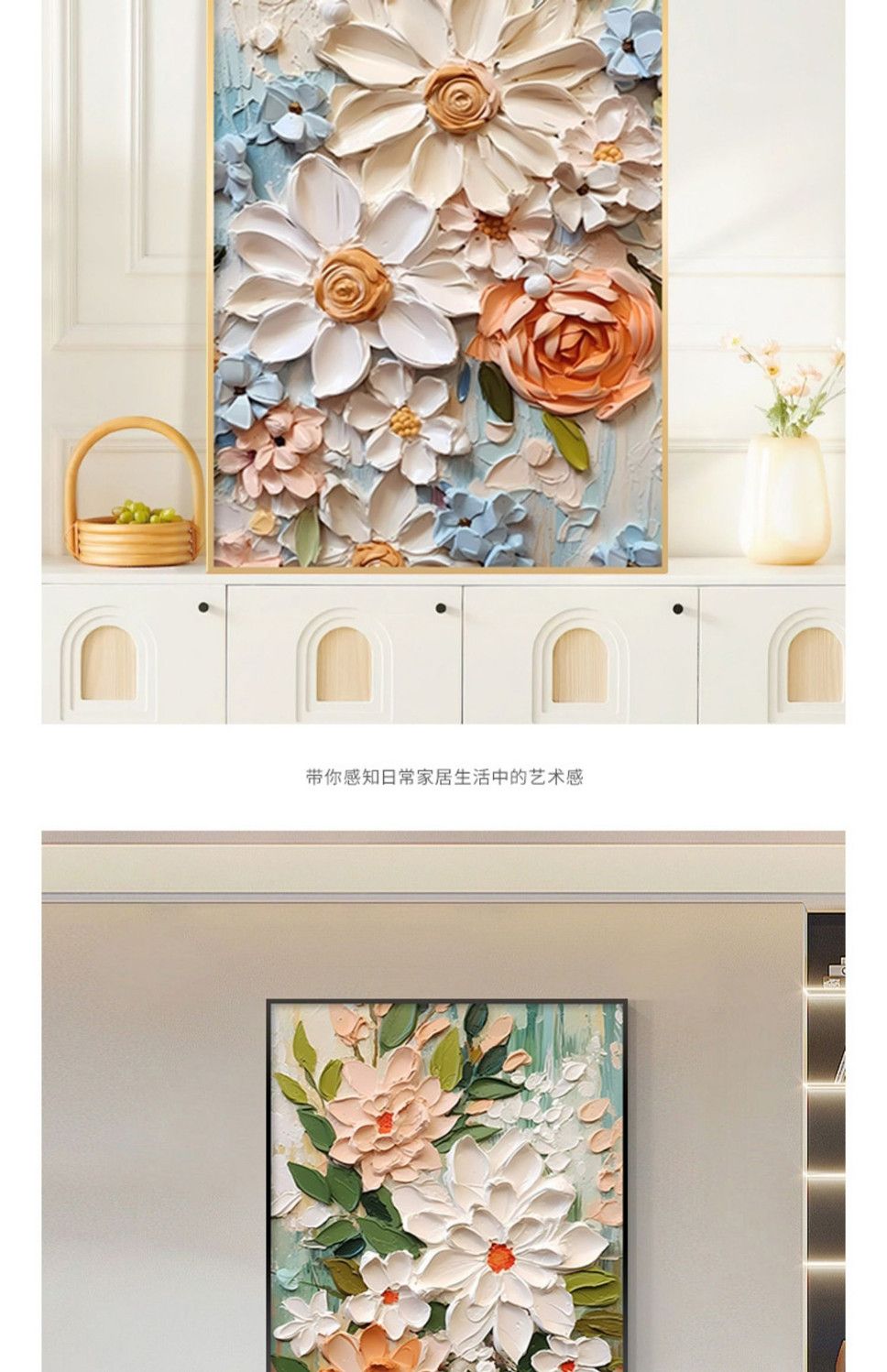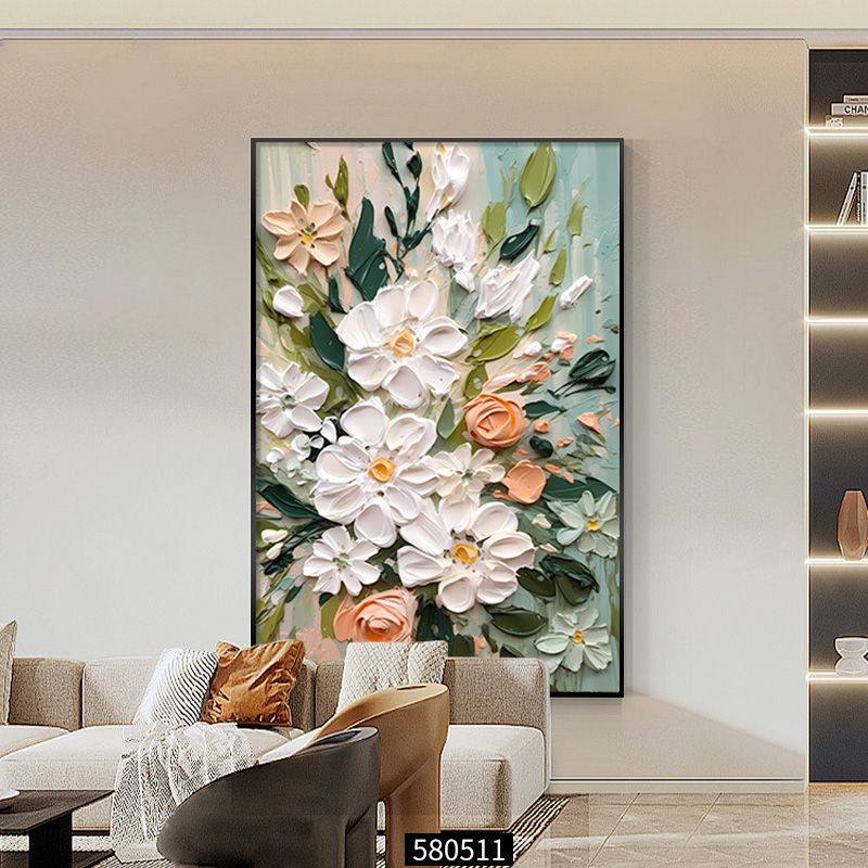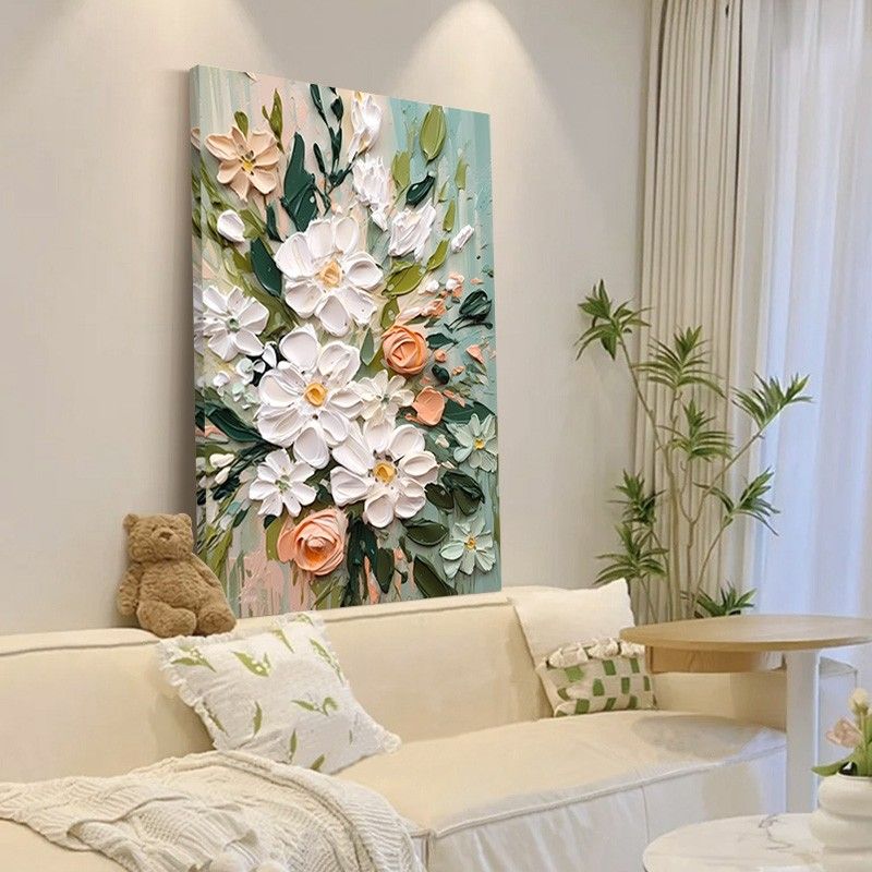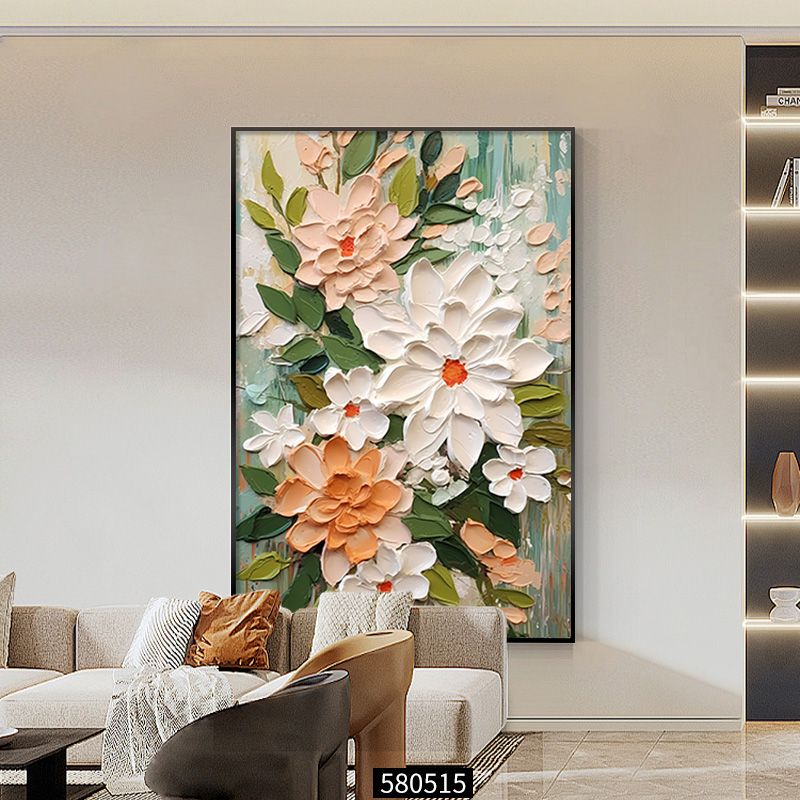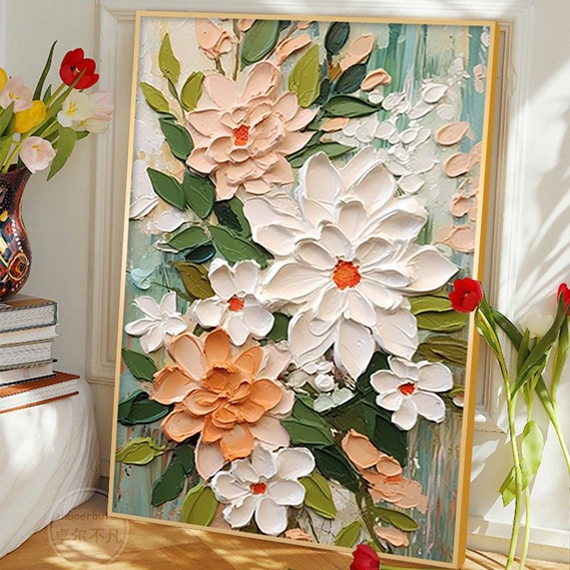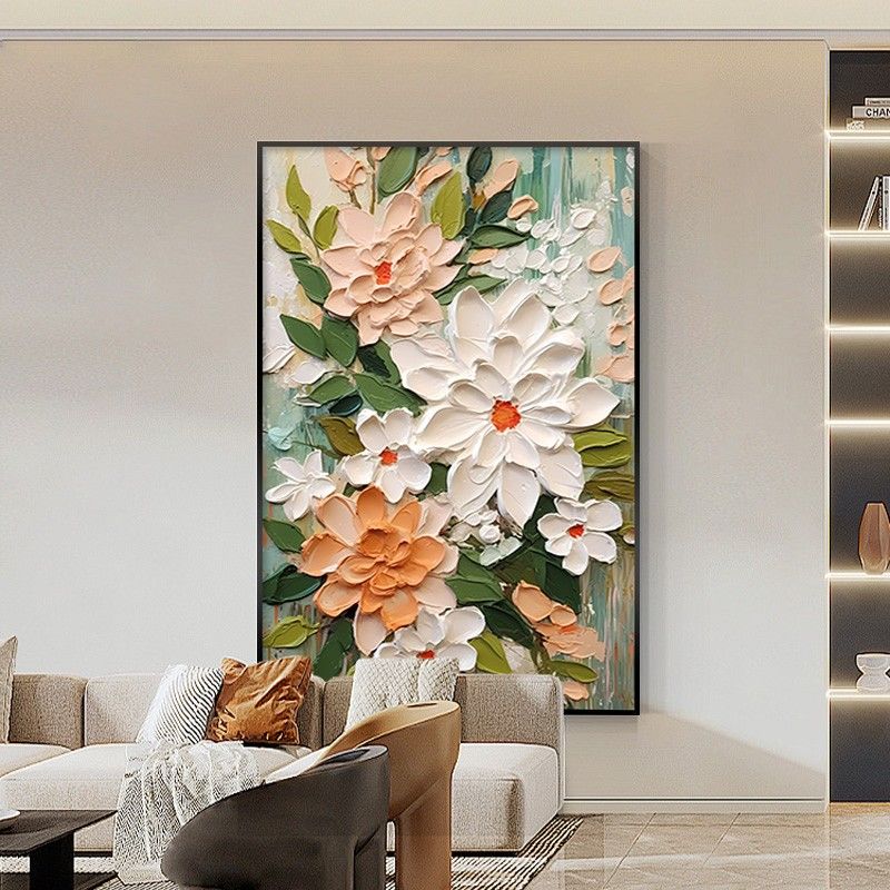 大芬村油画落地画奶油风客厅装饰画花卉玄关挂画沙发后背景墙壁画