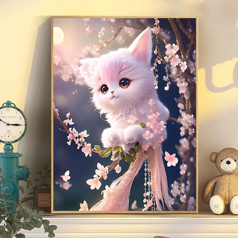 数字油画diy可爱猫咪小老虎填色画画新款手工绘画生日礼物装饰画
