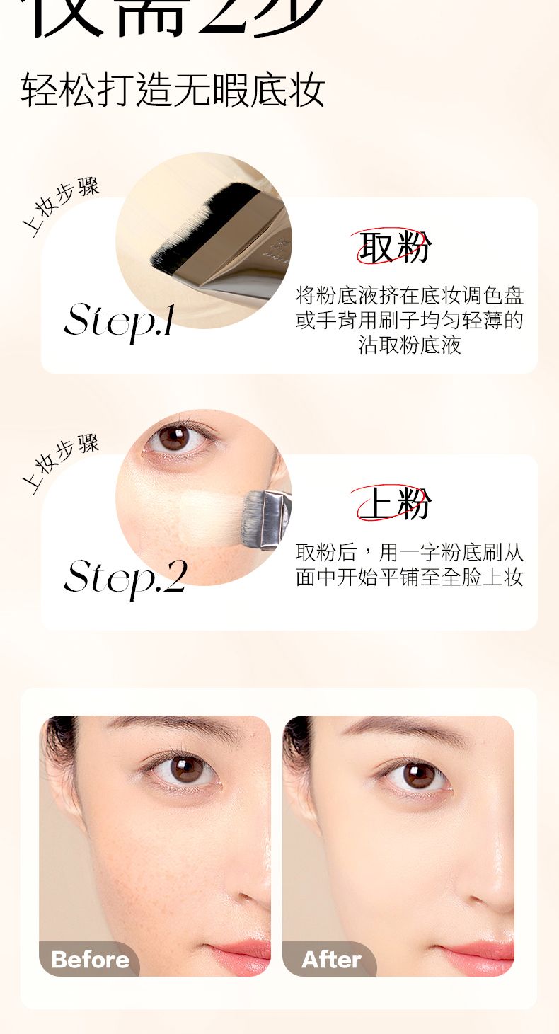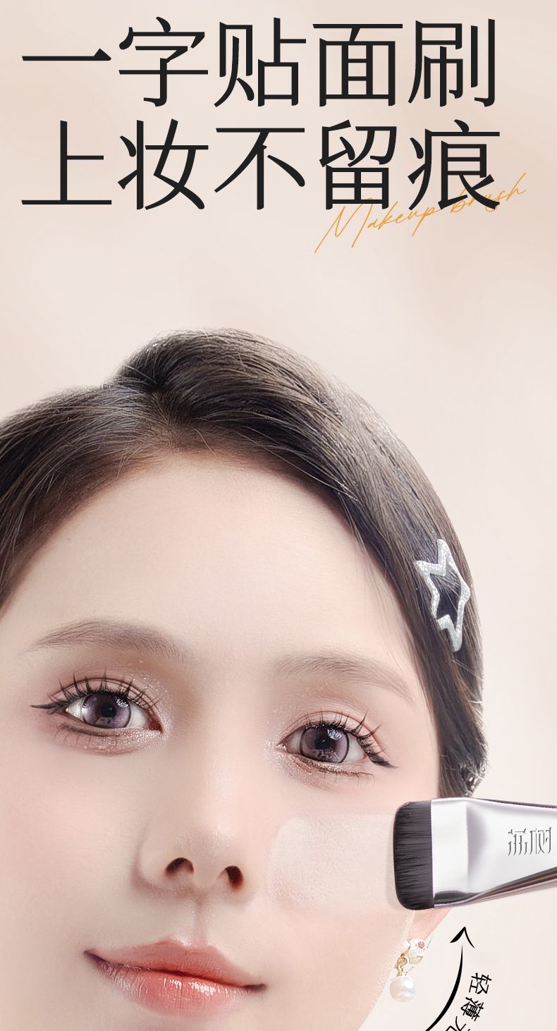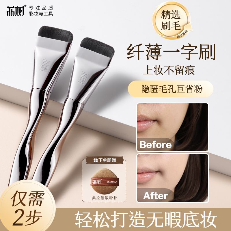 荔树无痕一字化妆刷粉底刷扁头粉底刷bb霜刷不吃粉初学者化妆刷