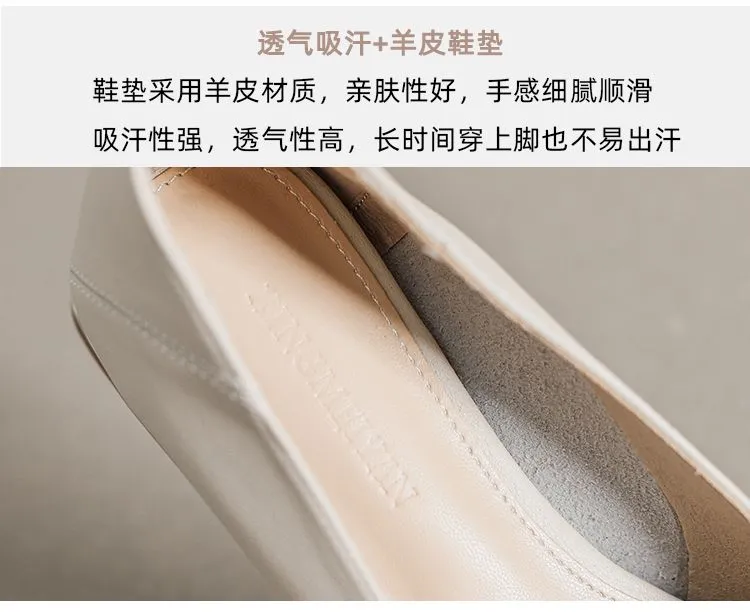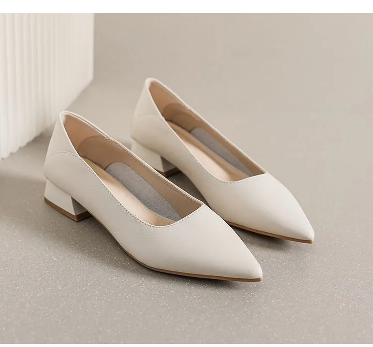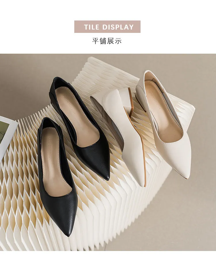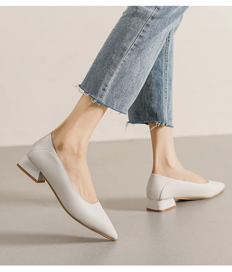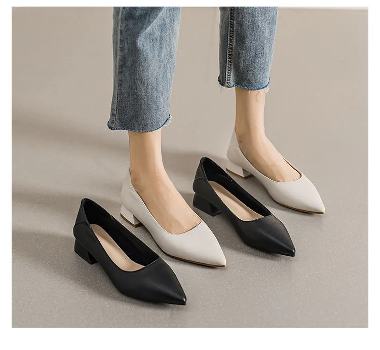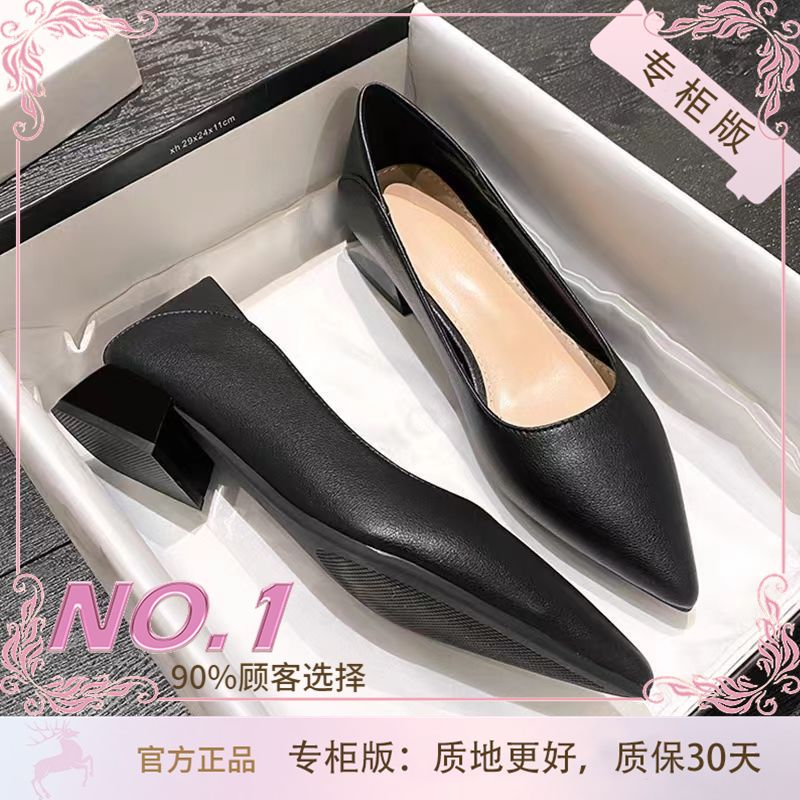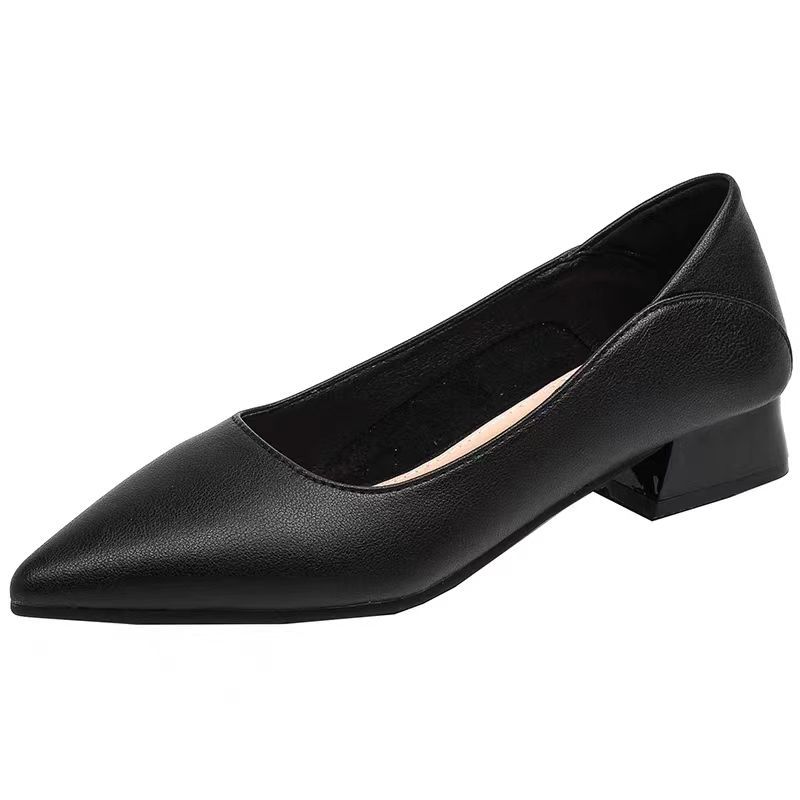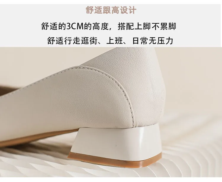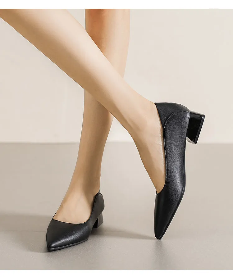 法式尖头浅口两穿单鞋女2023新款软皮粗跟上班不累脚一脚蹬工作鞋