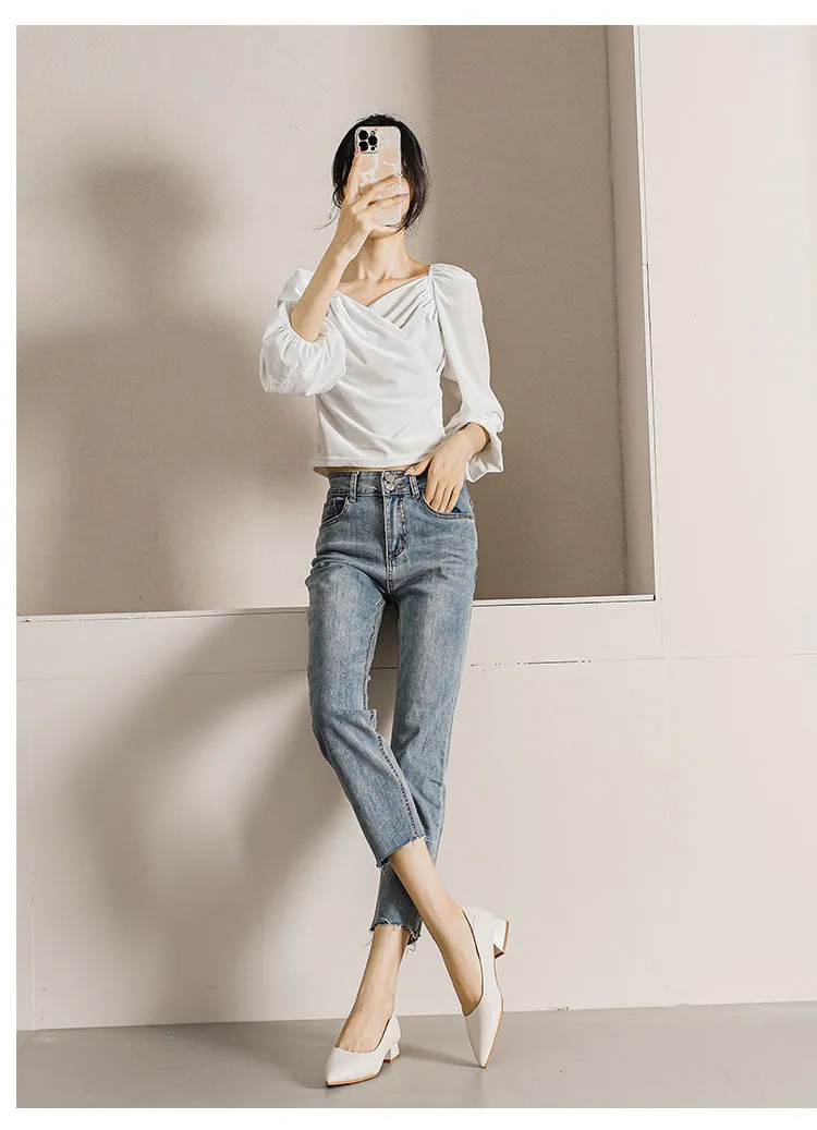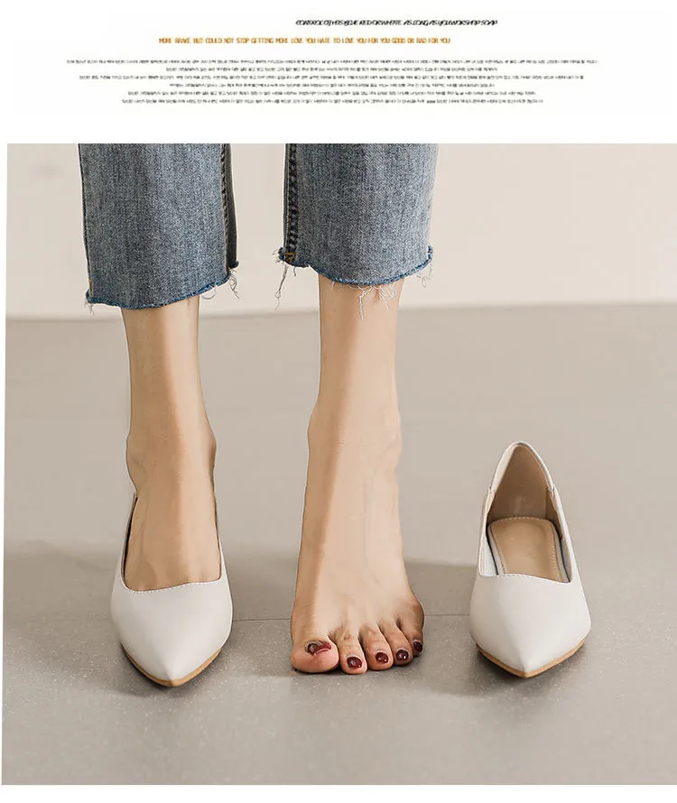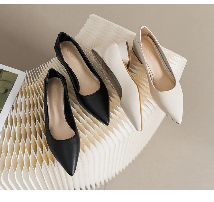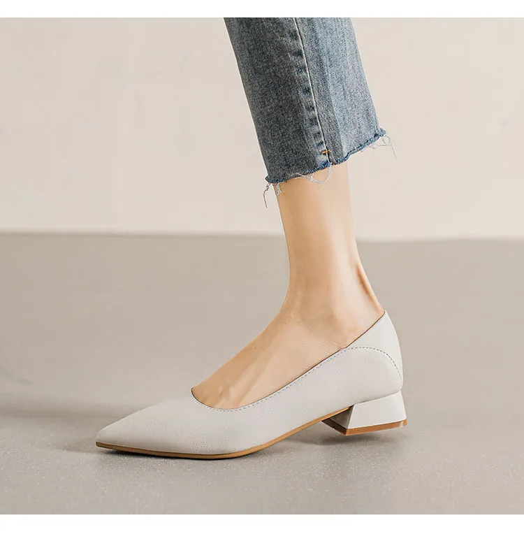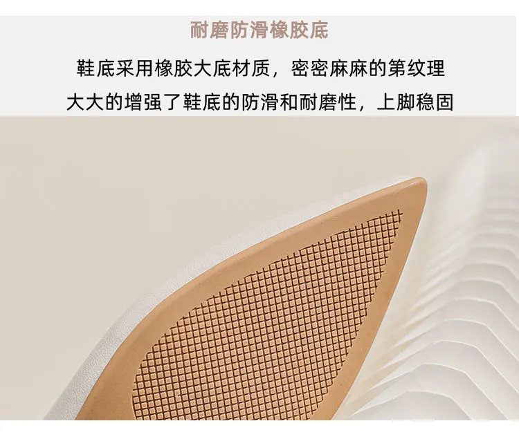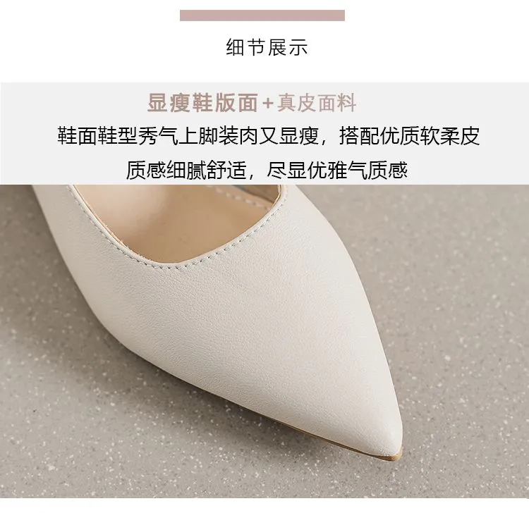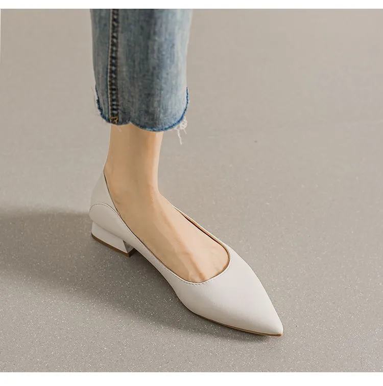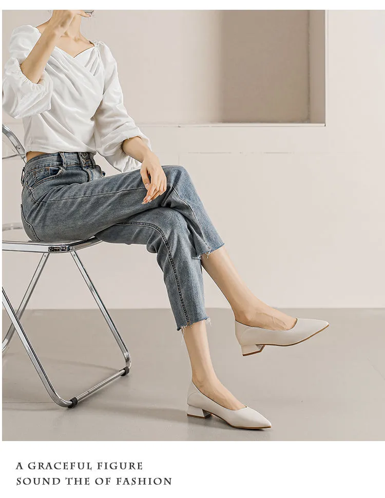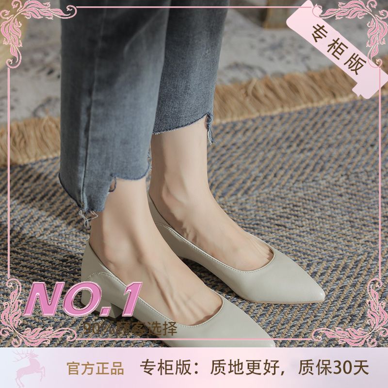 法式尖头浅口两穿单鞋女2023新款软皮粗跟上班不累脚一脚蹬工作鞋