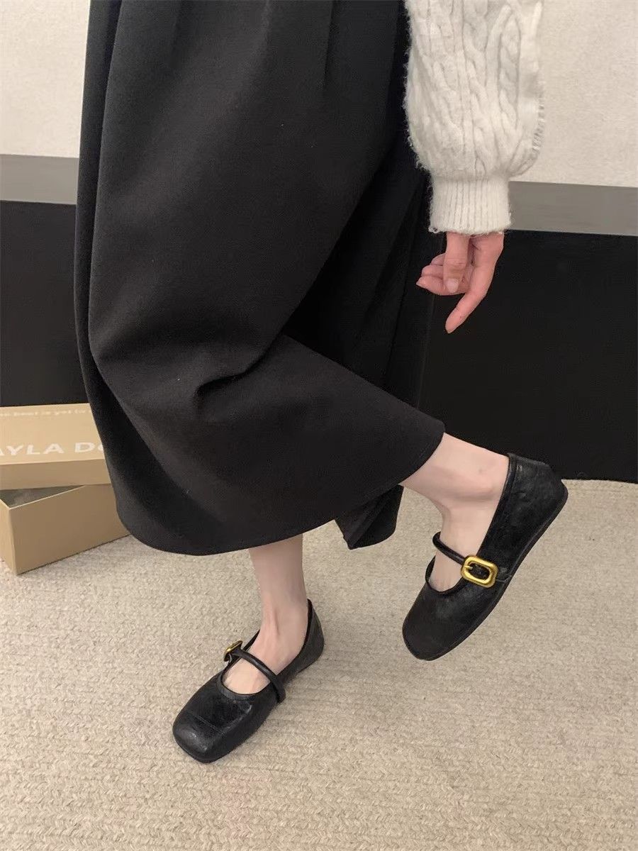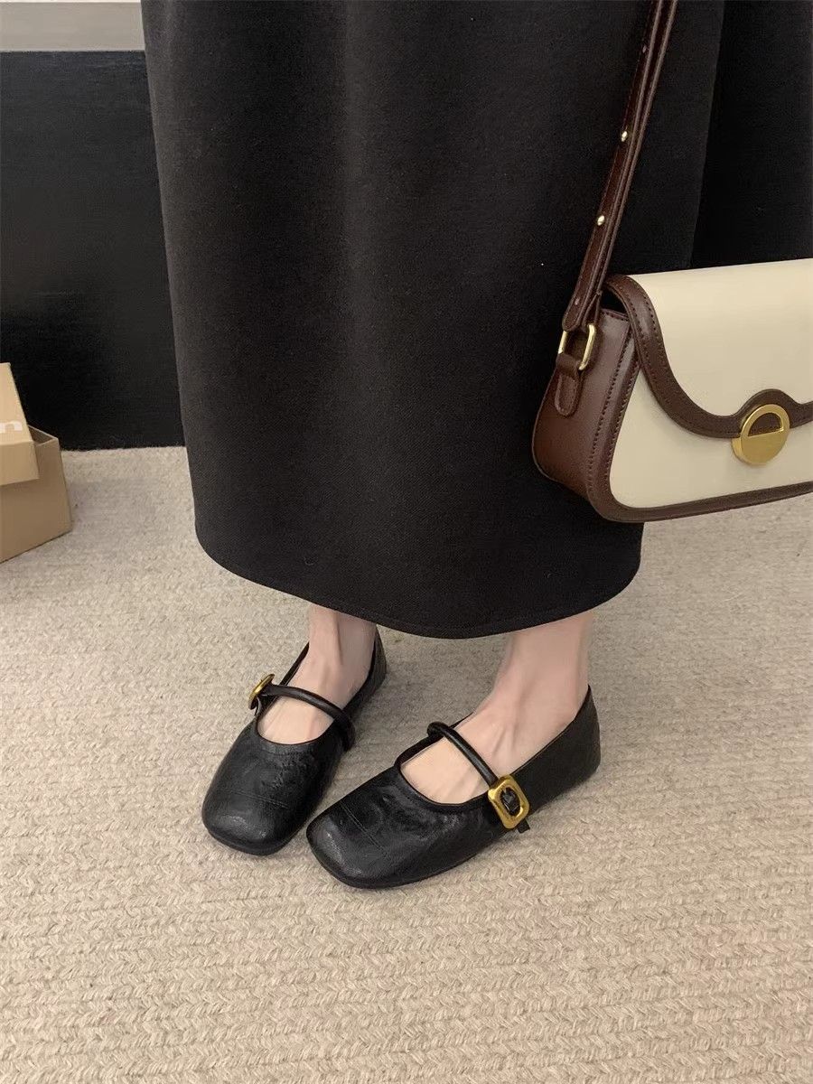 玛丽珍女2024年春夏季新款时尚气质百搭软底软面一字带配裙子单鞋