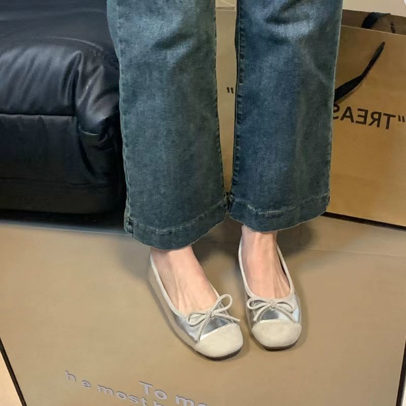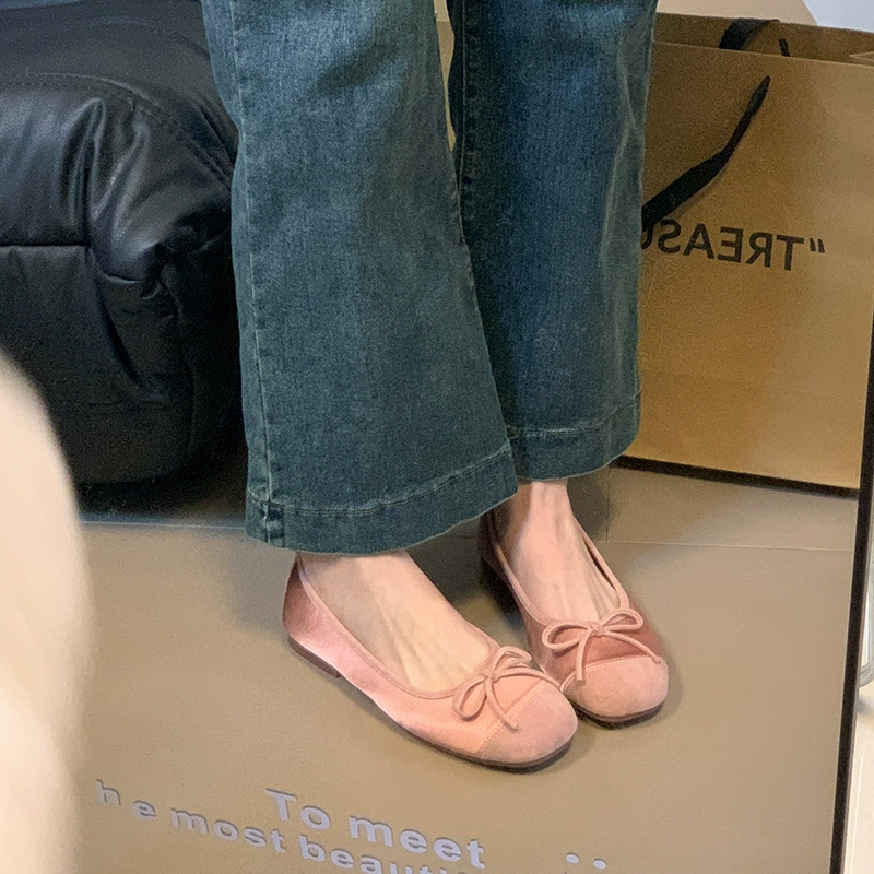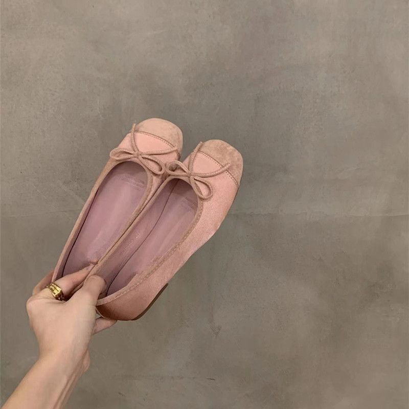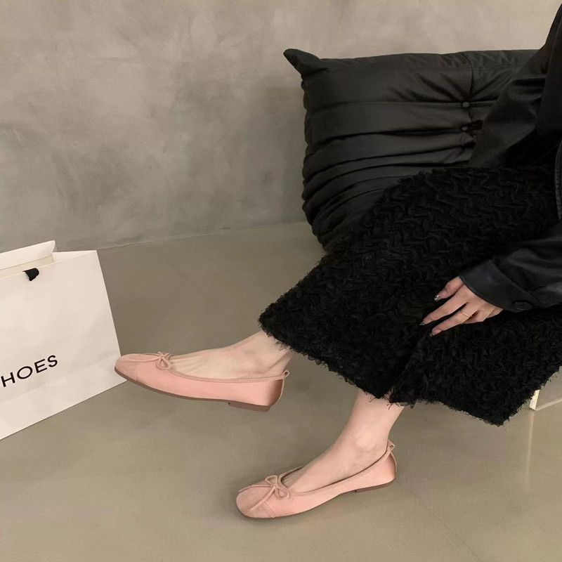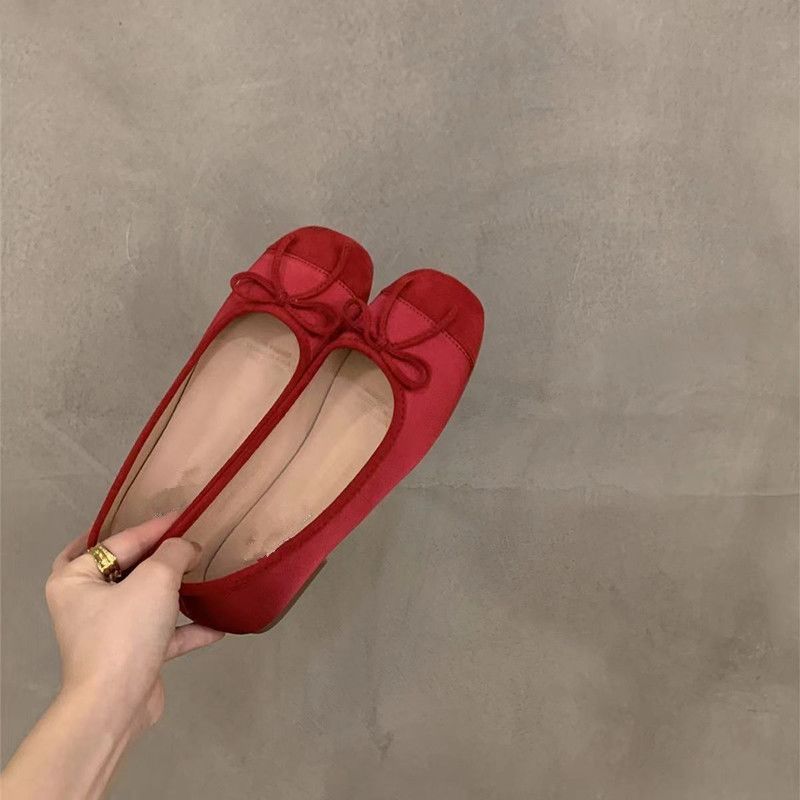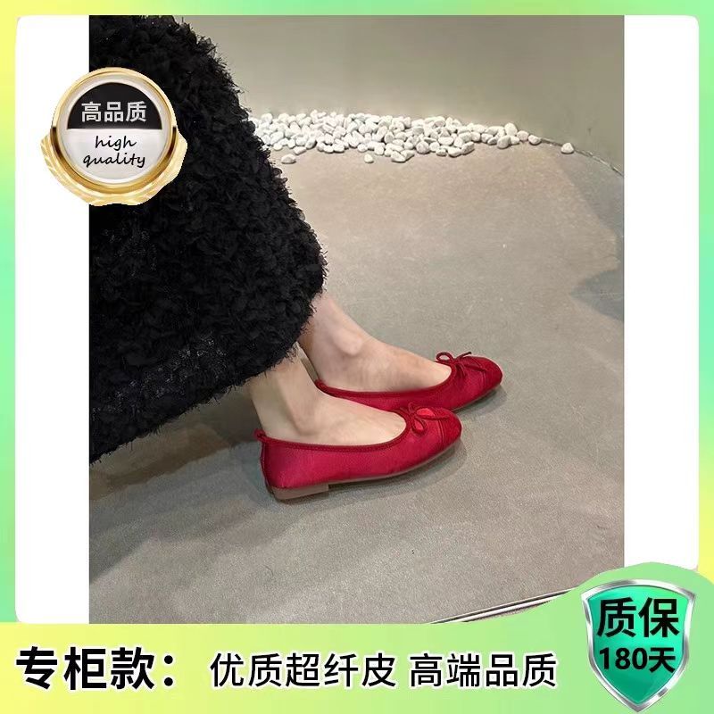 2024英伦风爆款芭蕾鞋女外穿平底红色高级晚晚法式脚蹬豆豆女单鞋