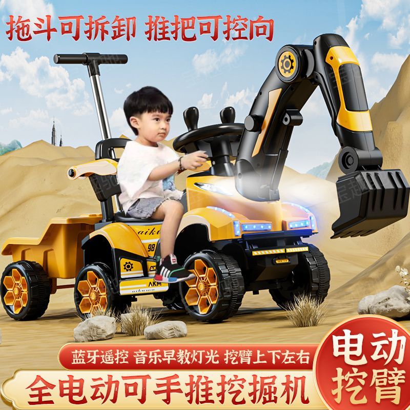 【推手可转】大号挖掘机玩具车儿童工程车电动遥控男孩宝宝挖土机