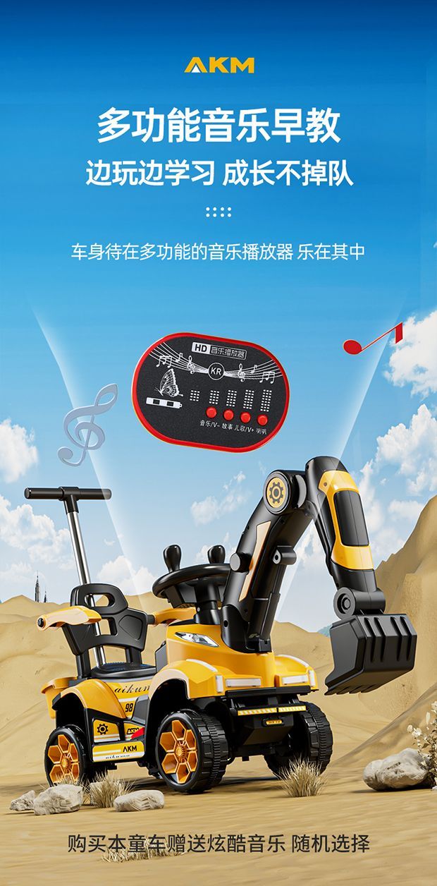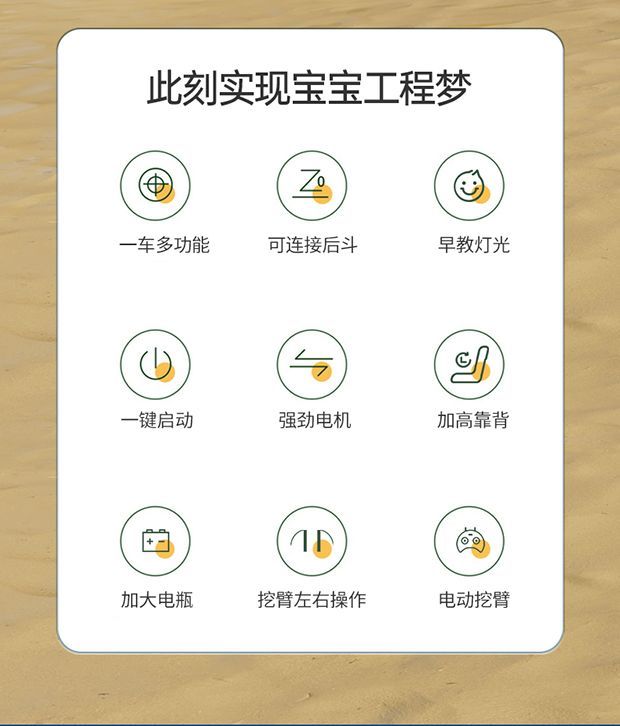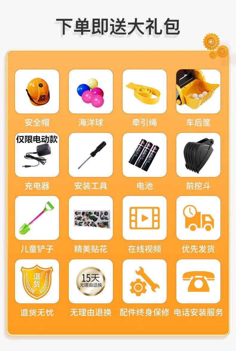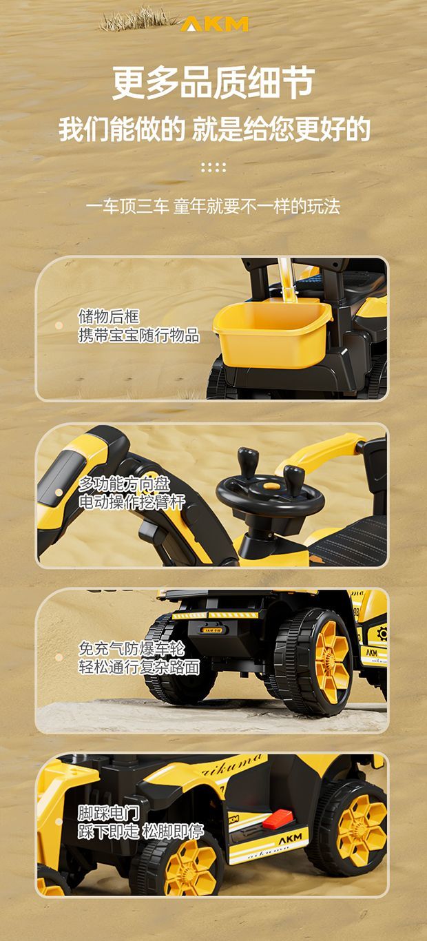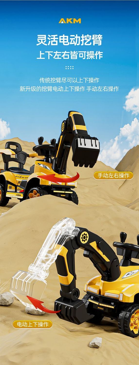 | top with electric yellow + spare battery + electric digging arm + push hand + early education(顶配电动黄+备用电瓶+电动挖臂+推手+早教) | USD $40.67 | 99999 piece available |
