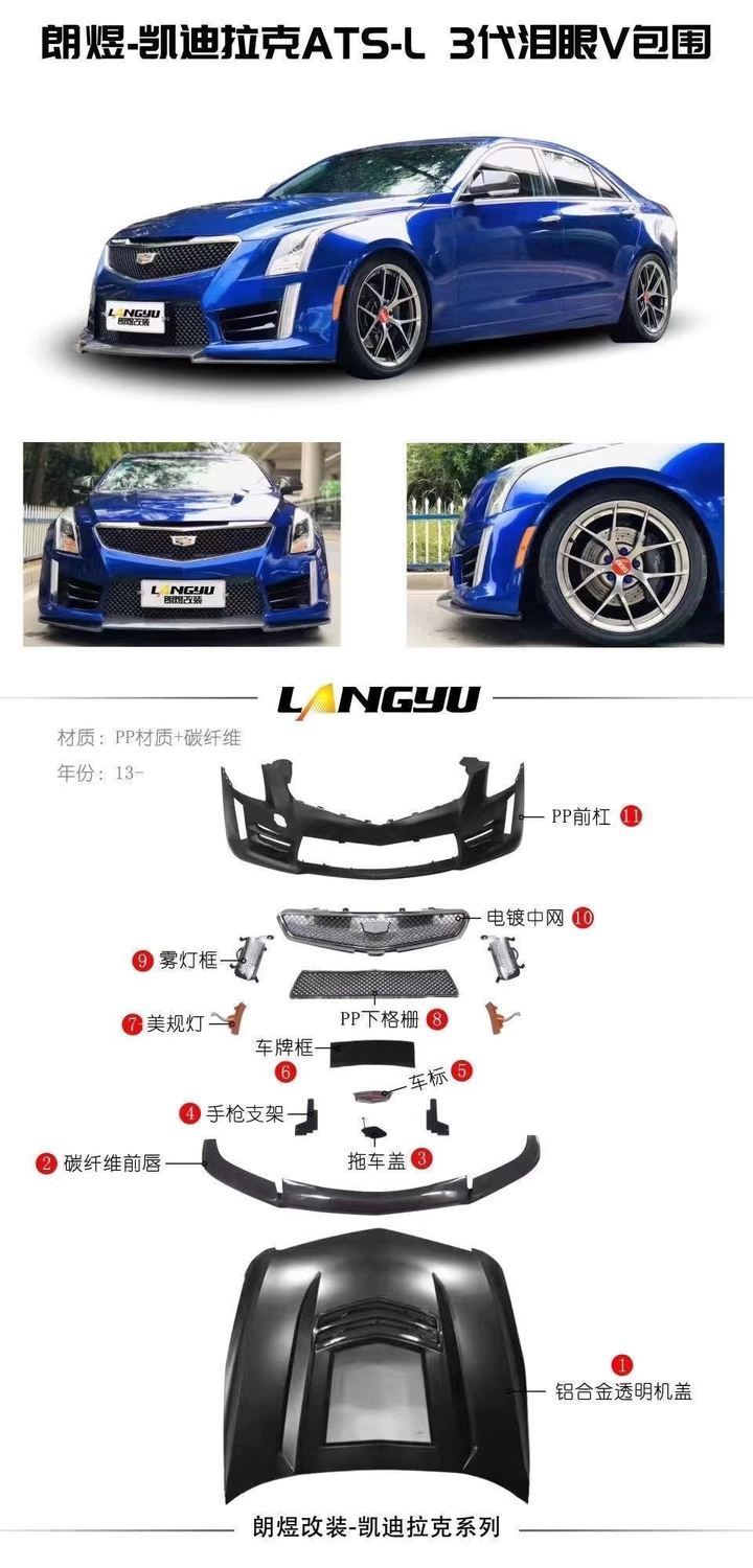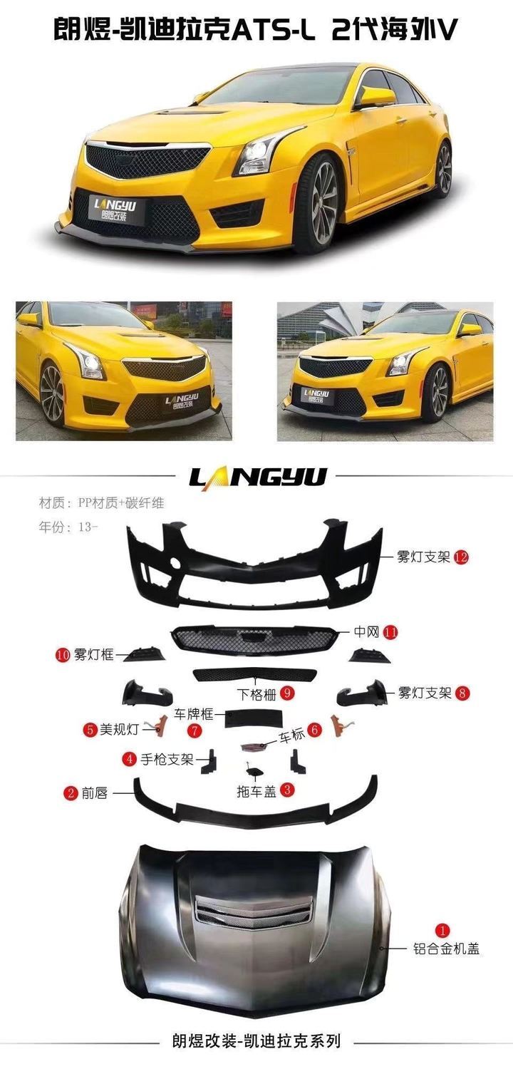 凯迪拉克ATSL改装海外版V包围 碳纤维机盖 前杠 前唇叶子板美规灯