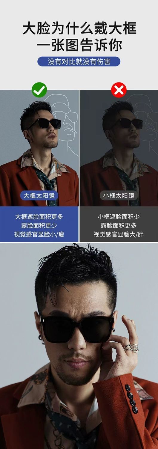 GM墨镜男士帅气ins开车专用夏季太阳眼镜偏光方框大脸显瘦网红女