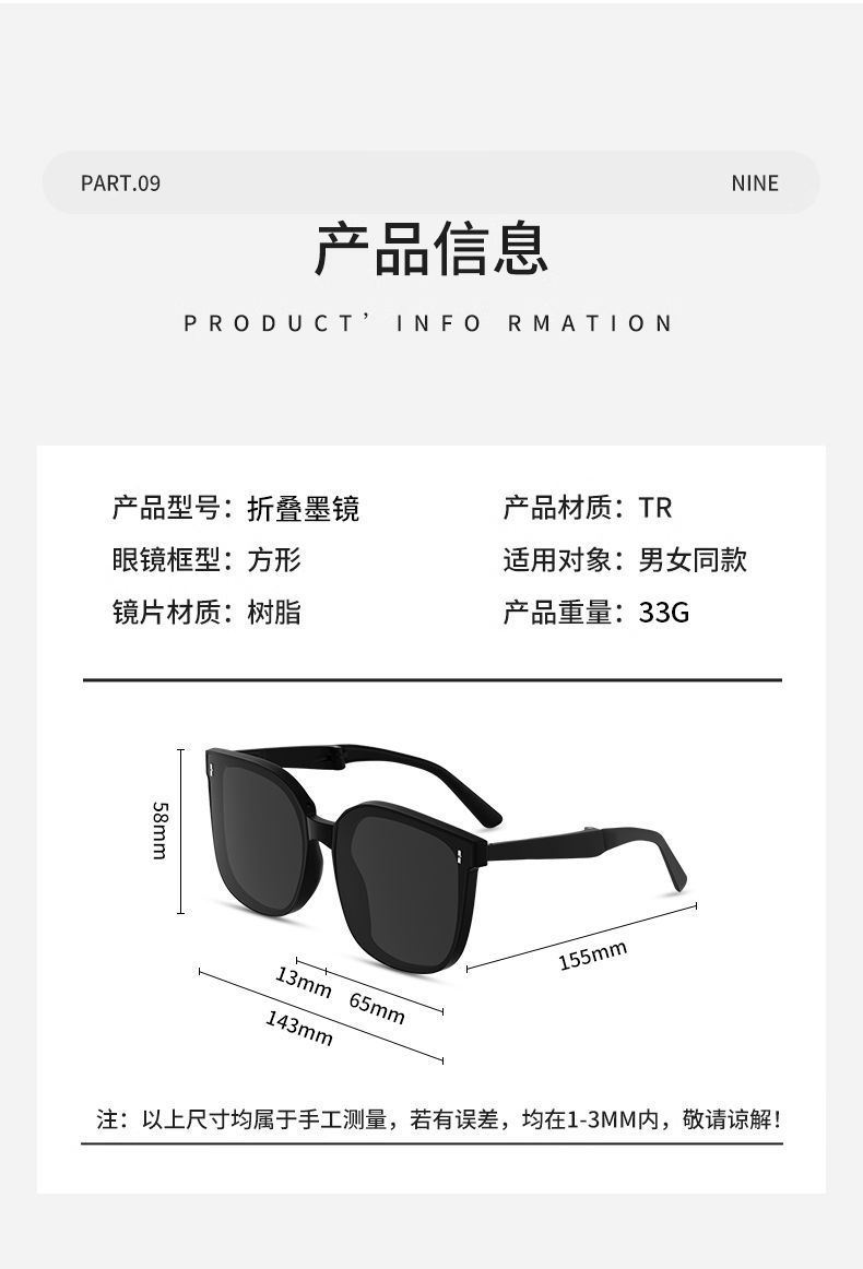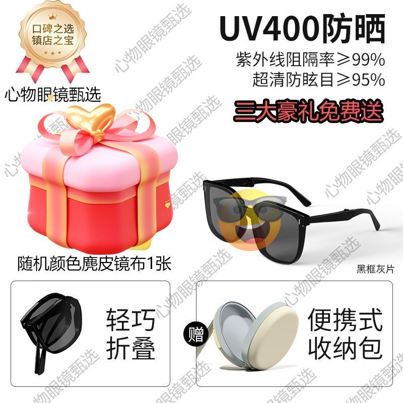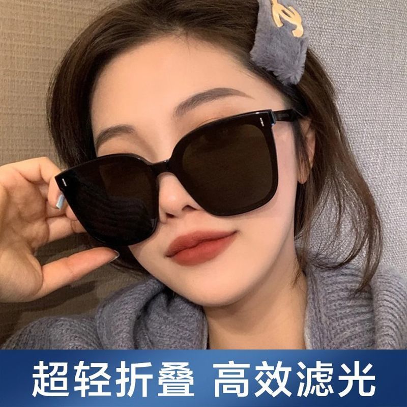 超轻可折叠墨镜女士高级感大脸显瘦防紫外线强光偏光防晒太阳眼镜