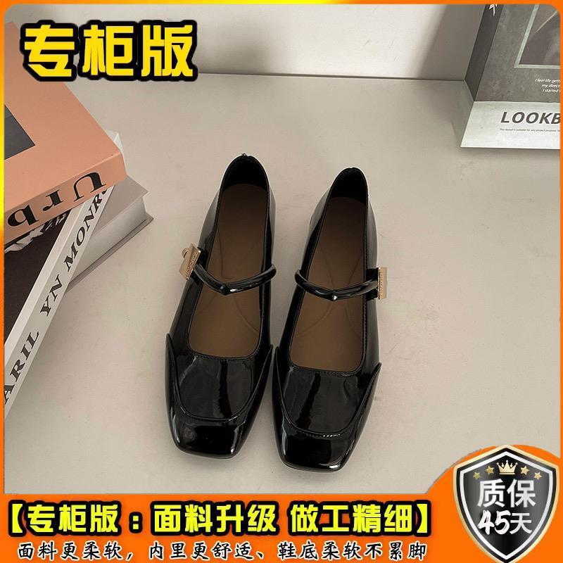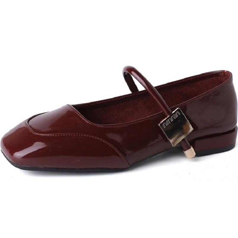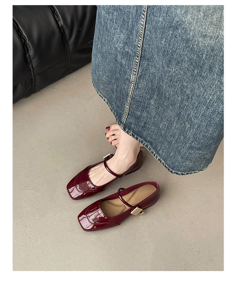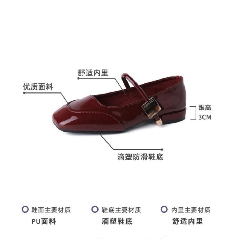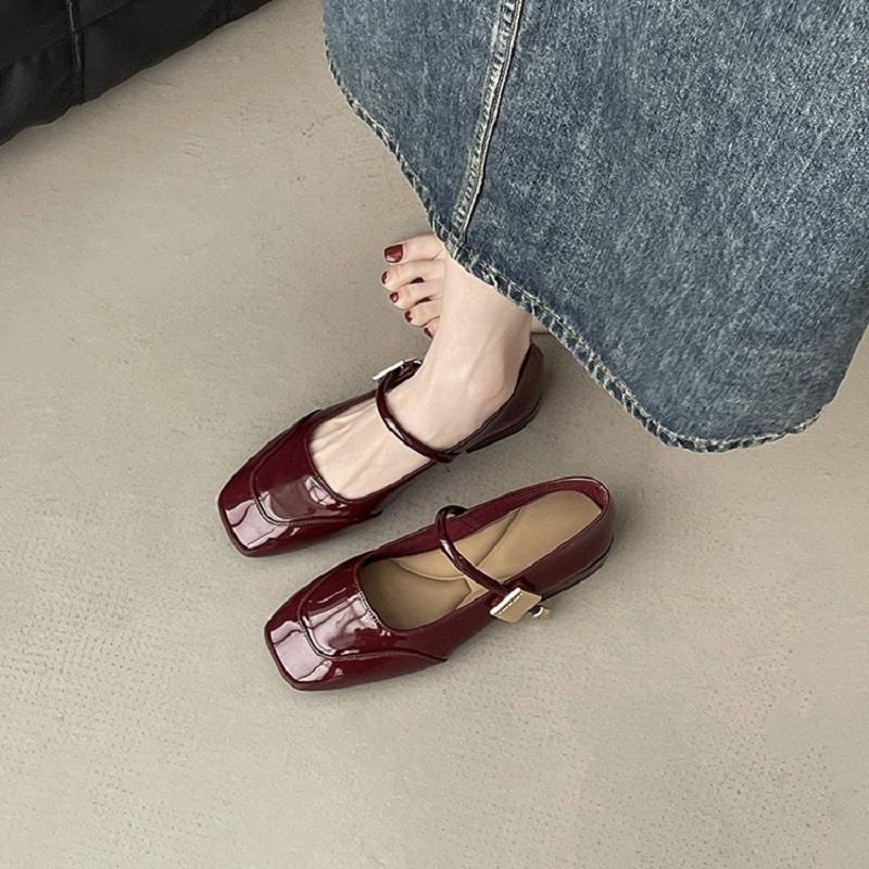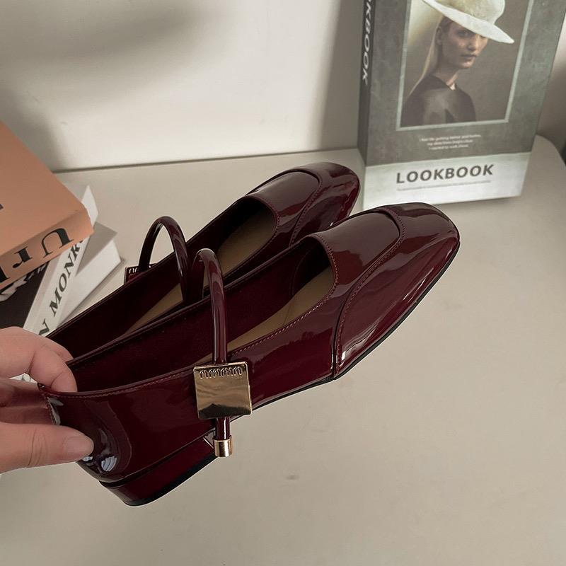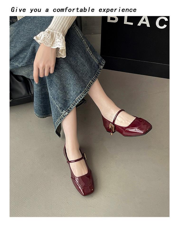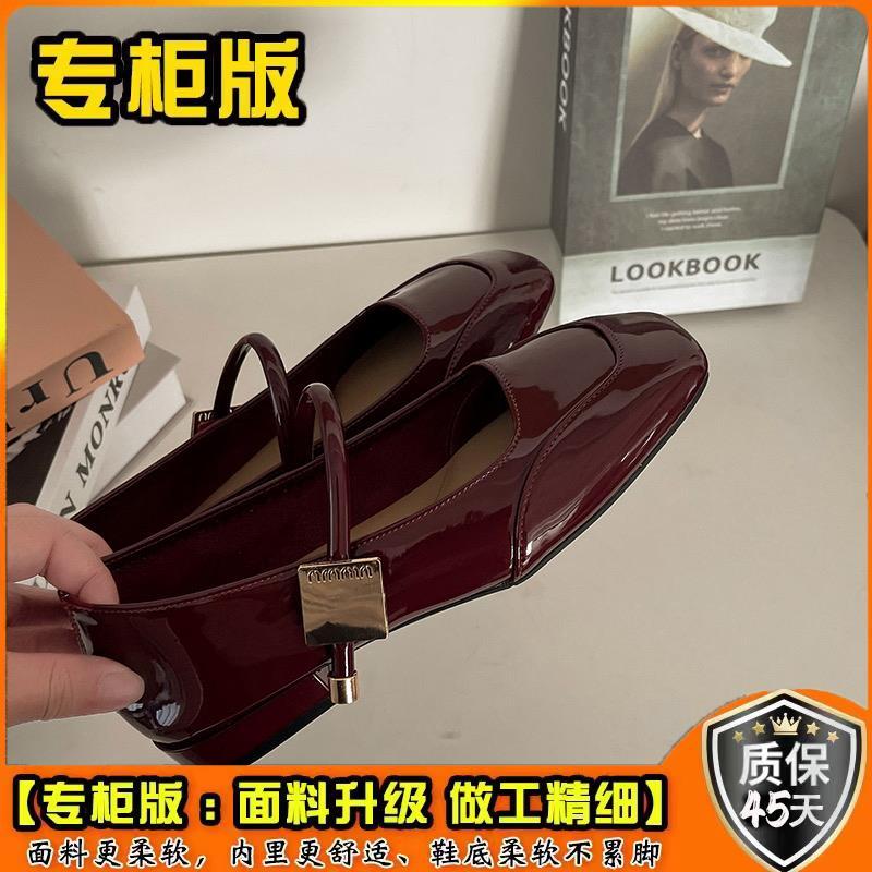 高级感浅口玛丽珍单鞋子女2024年春夏季新款方头一字扣红色小皮鞋