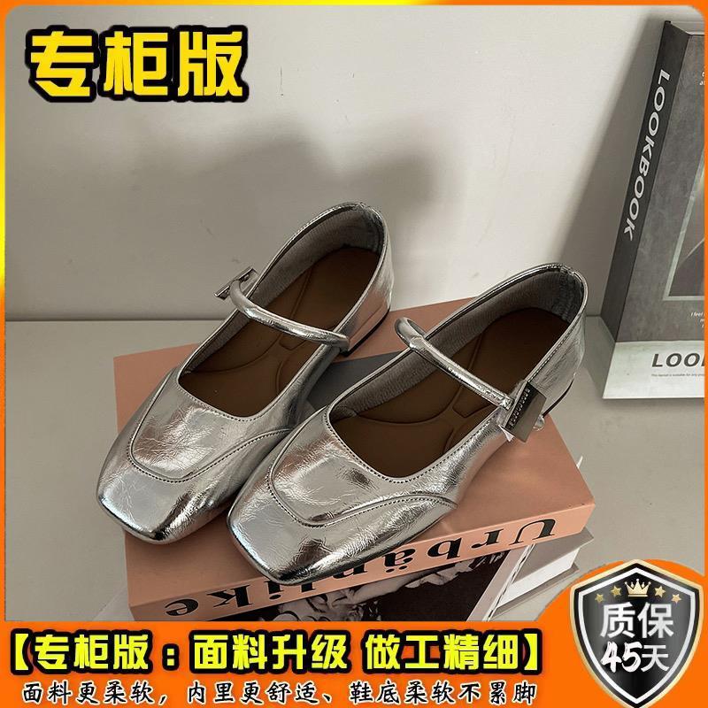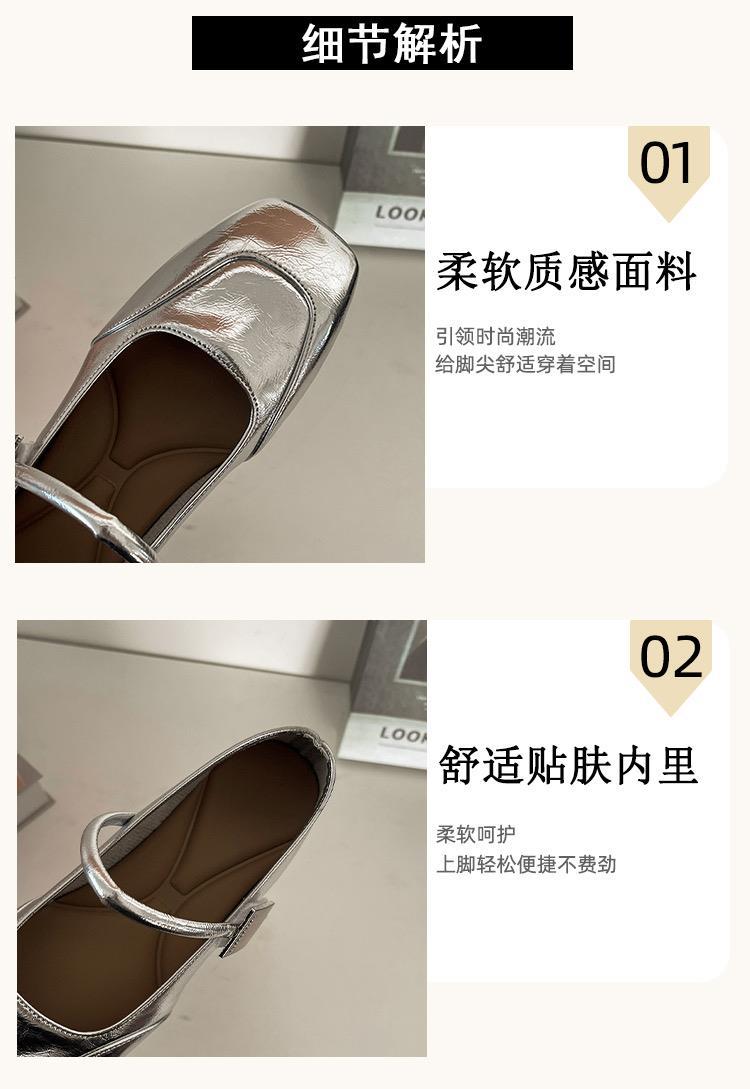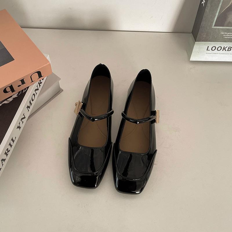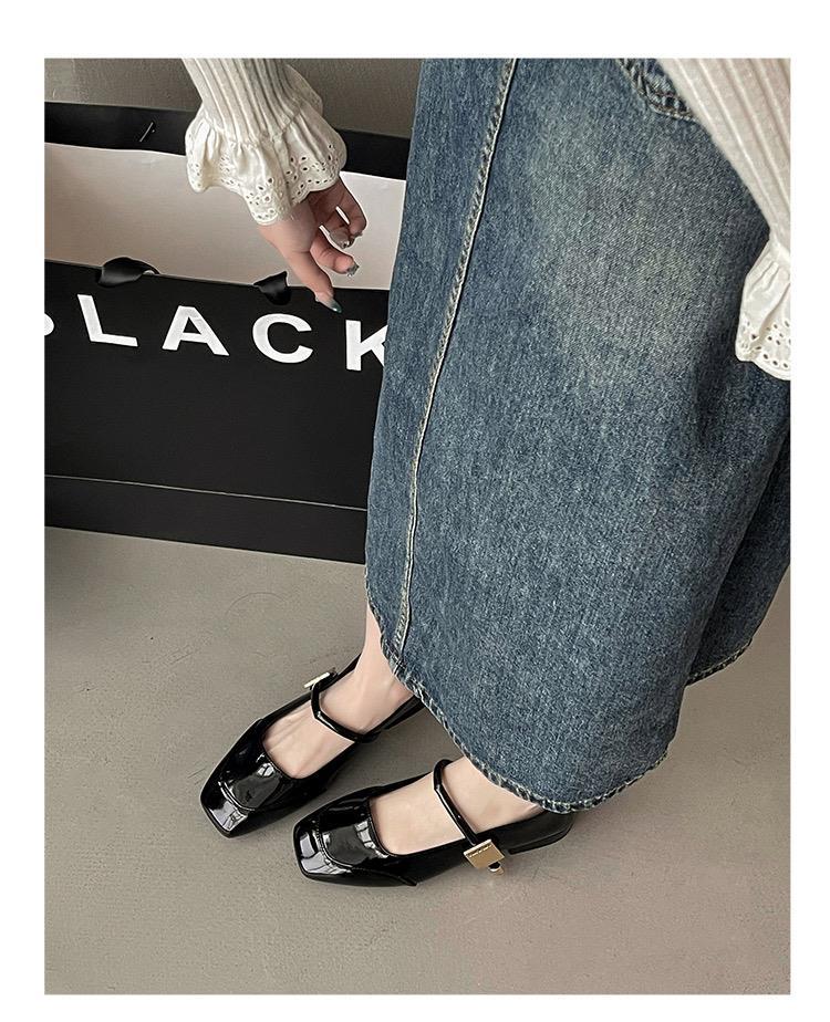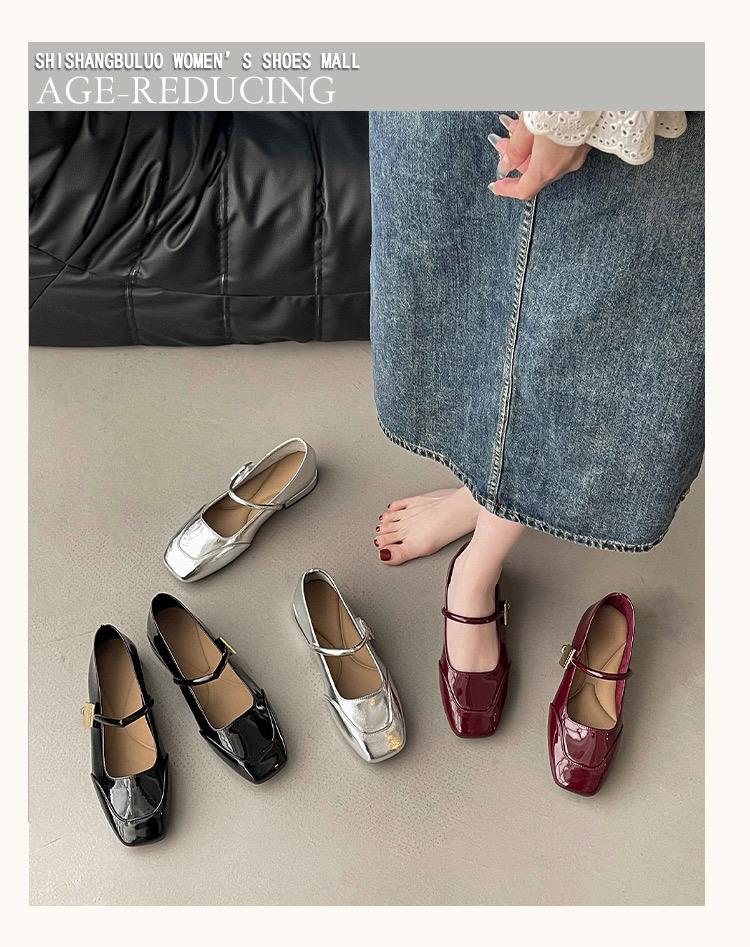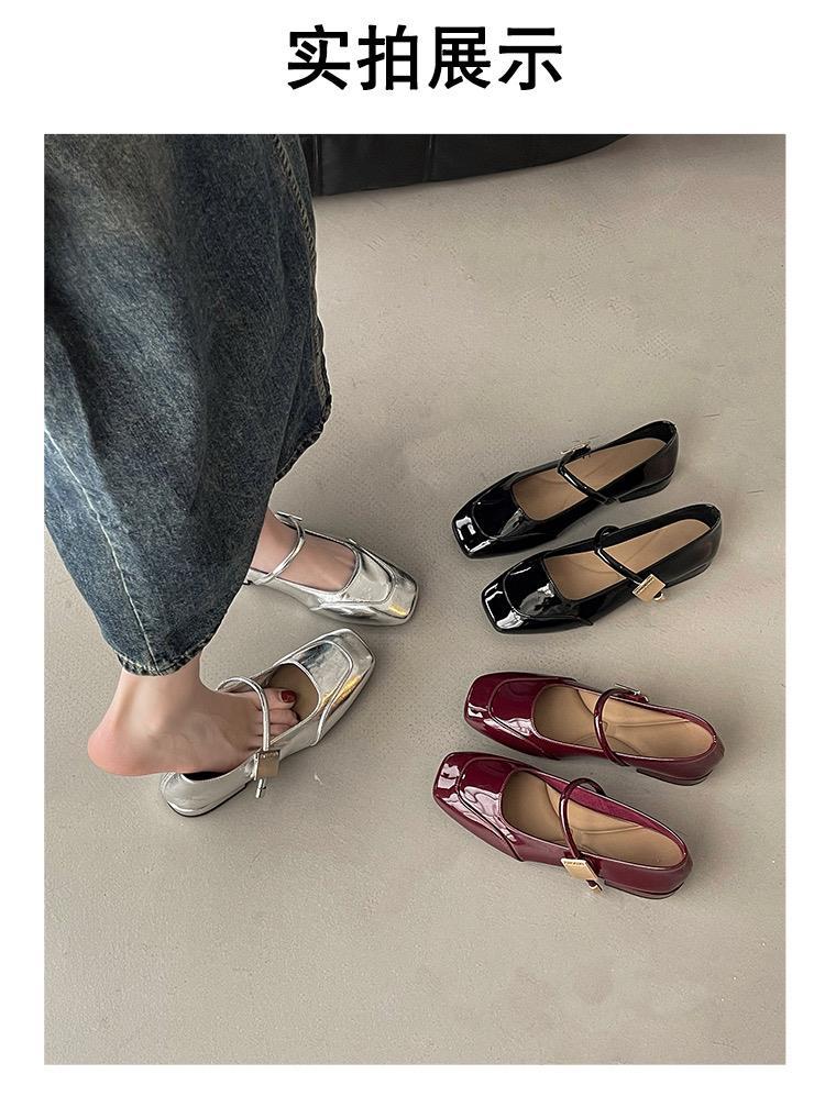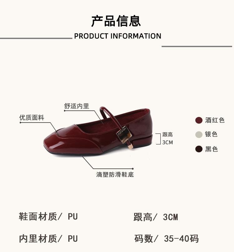 高级感浅口玛丽珍单鞋子女2024年春夏季新款方头一字扣红色小皮鞋