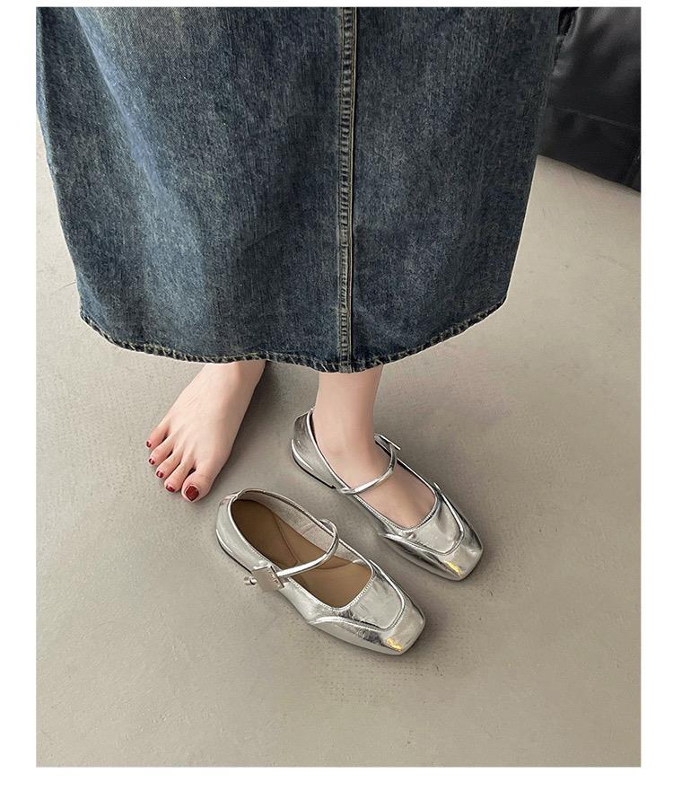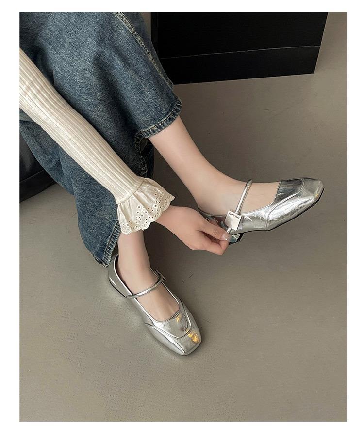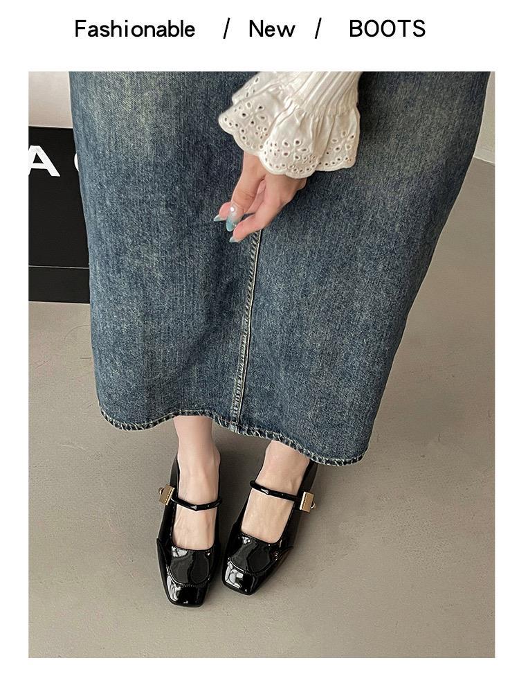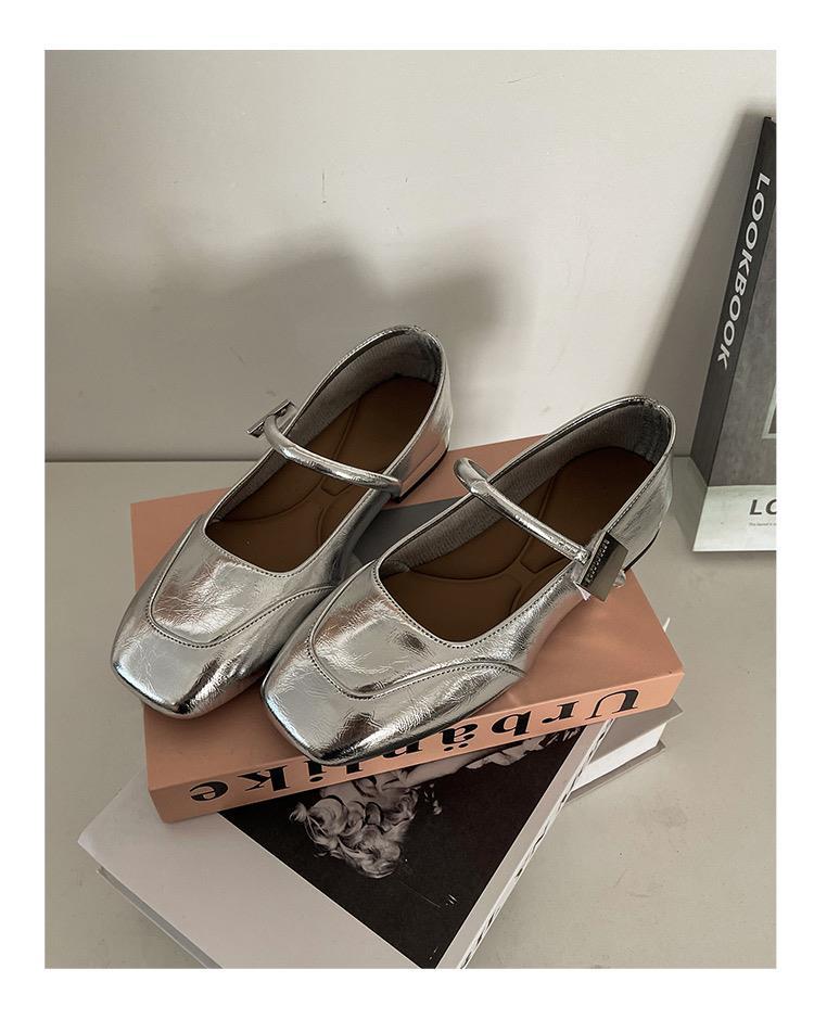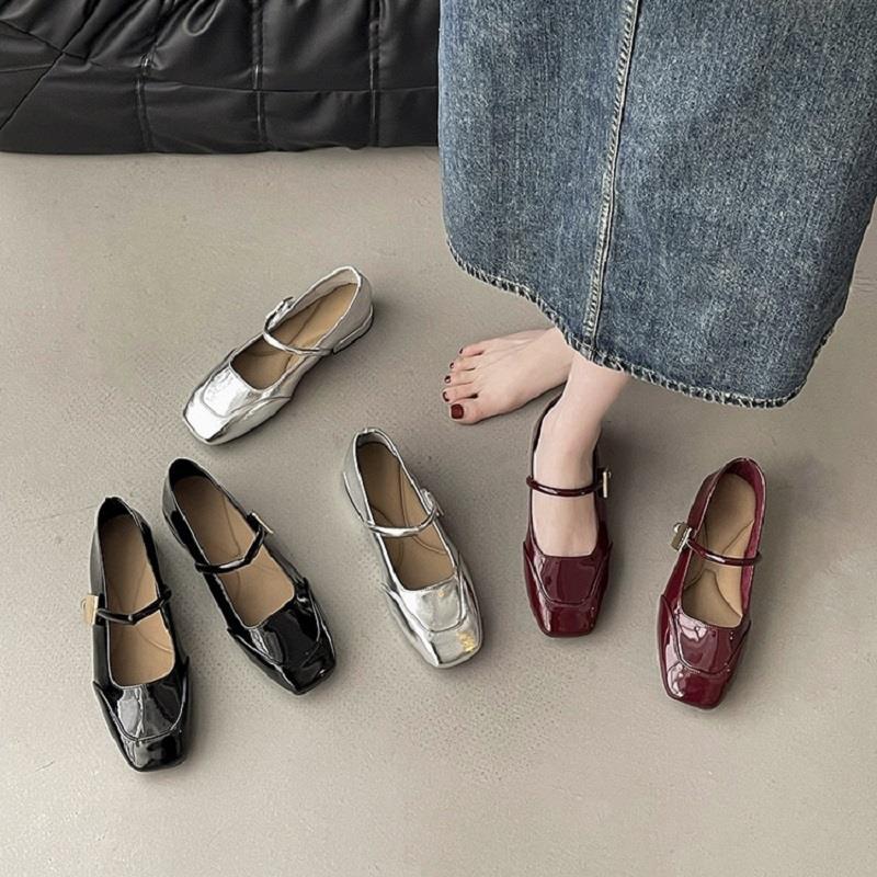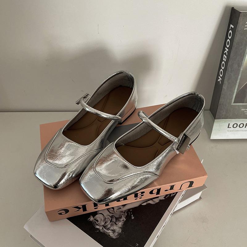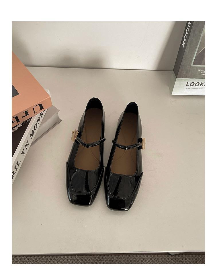 高级感浅口玛丽珍单鞋子女2024年春夏季新款方头一字扣红色小皮鞋