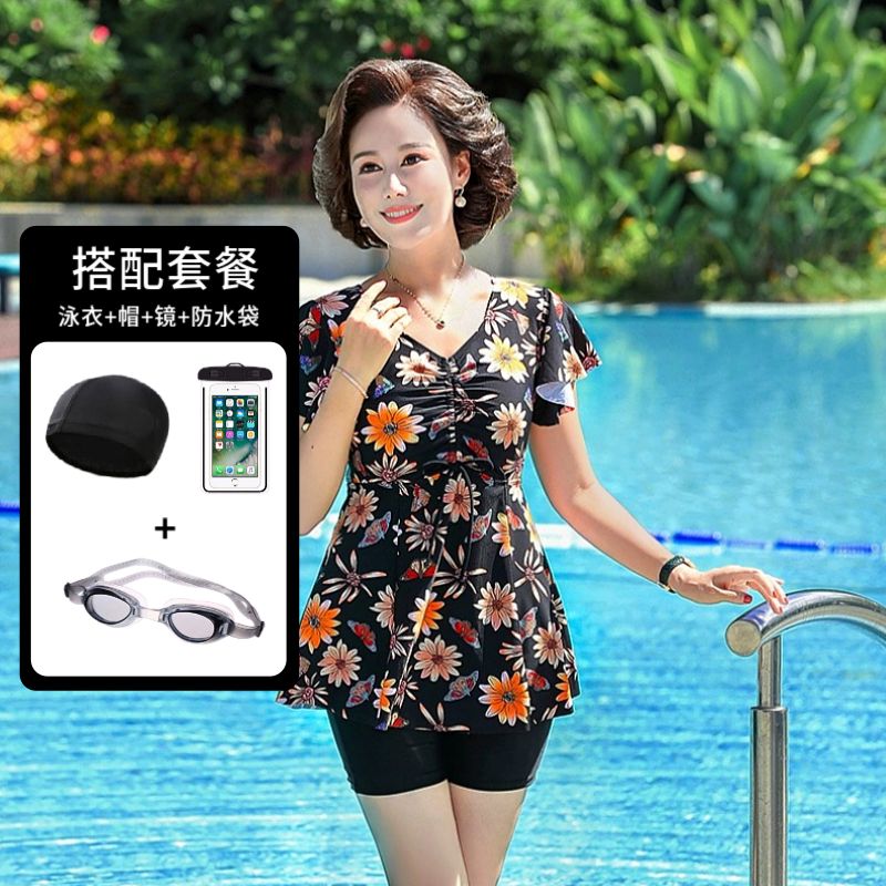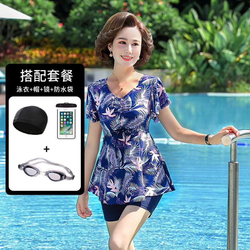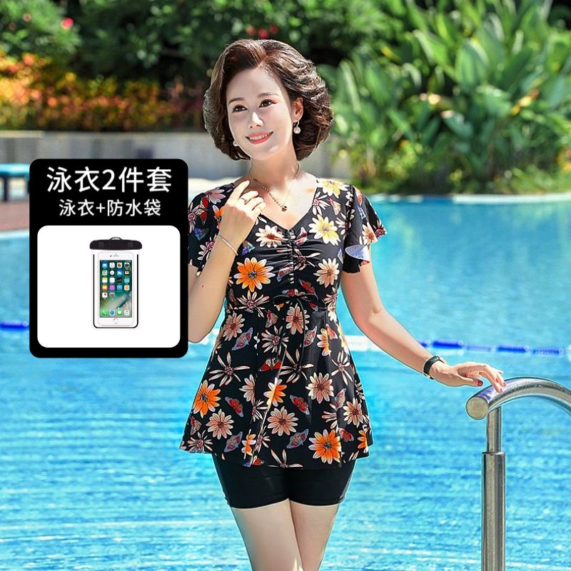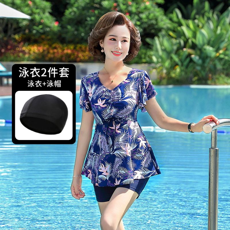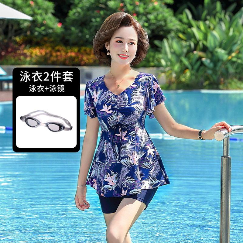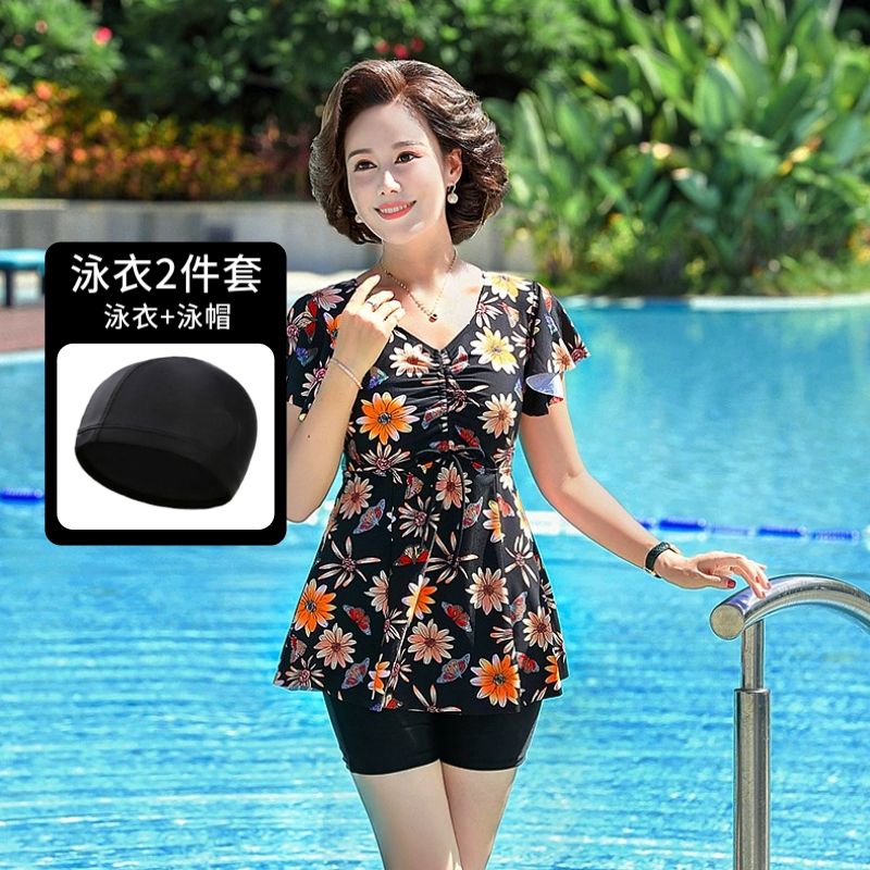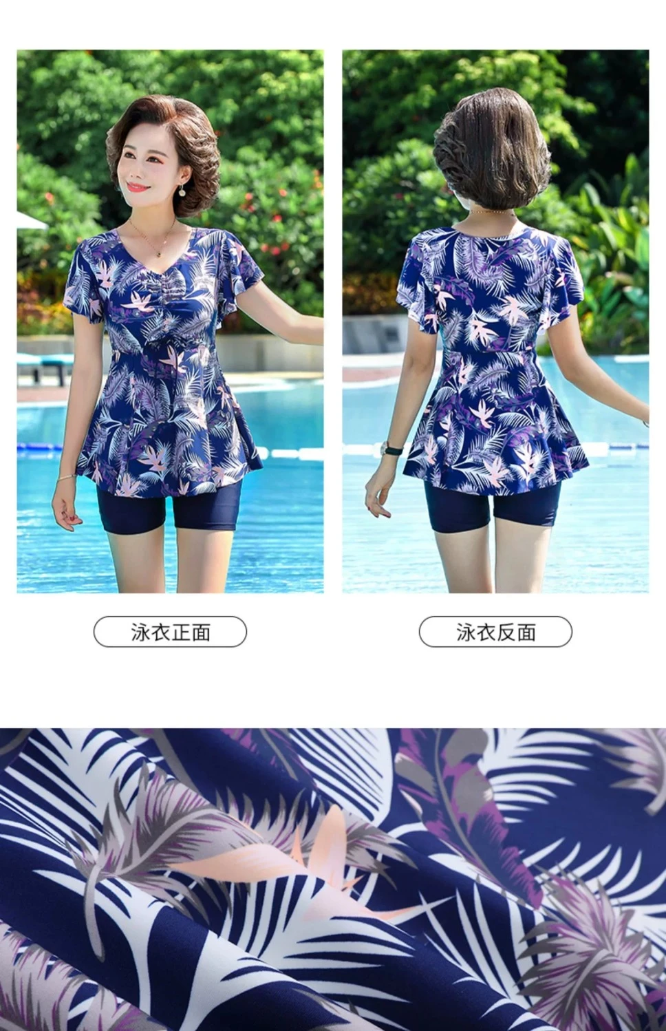 2024新款泳衣女妈妈款遮肚显瘦分体保守中老年人大码泳装泡温泉